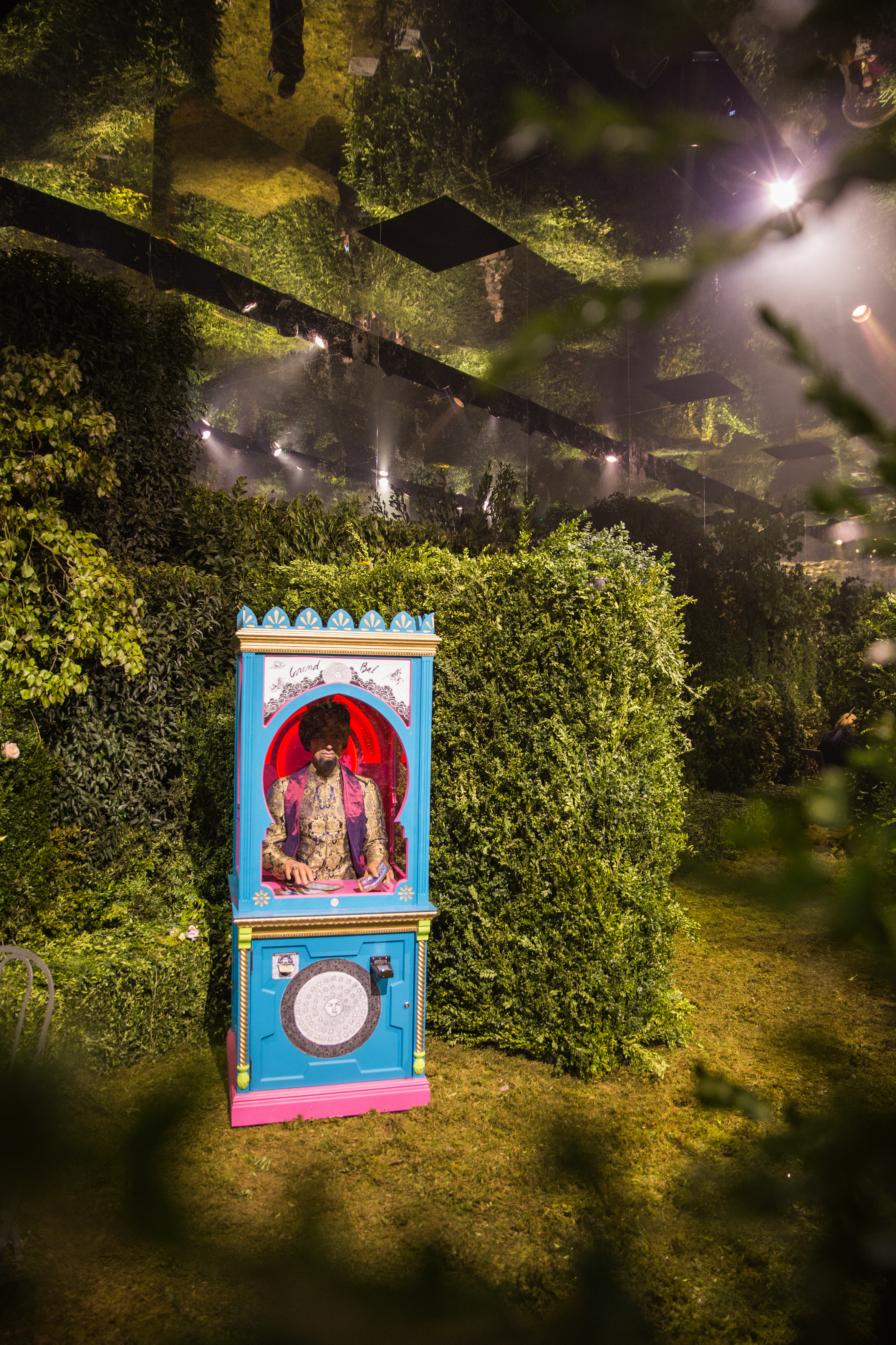 La mémoire devient le moteur d’une histoire nouvelle qui bouleverse l’abécédaire de la Maison pour le transposer dans des formes et des coupes qui sont l’empreinte des silhouettes, des rêves et des désirs des femmes d’aujourd’hui. C’est ainsi que la dentelle est décousue et remontée sur l’organza, et que les tulles plissés aux couleurs de contes de fées se superposent en compositions à la fois légères et majestueuses.Les chapeaux et les masques de Stephen Jones sont autant de fantasmagories gothiques en version punk.
