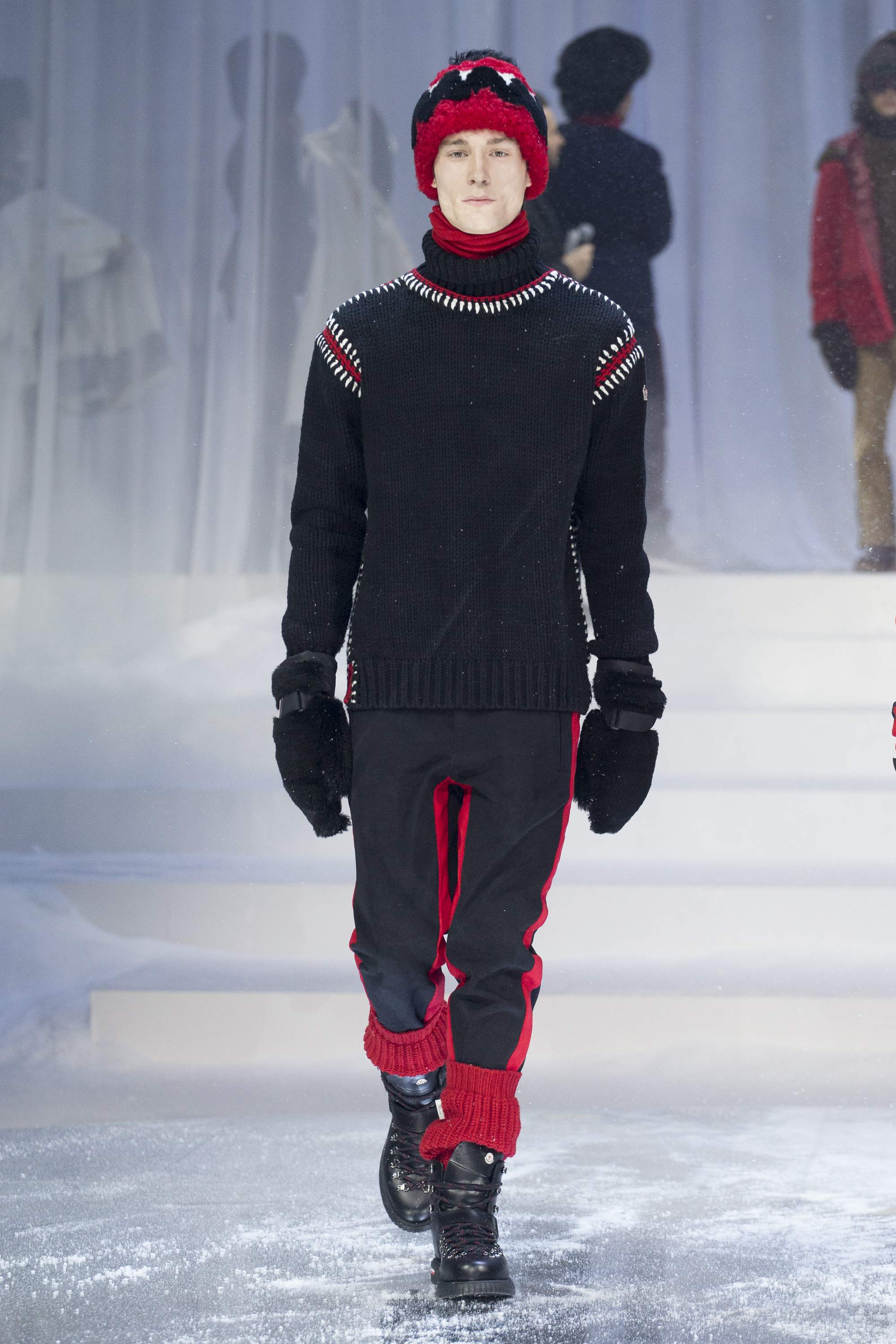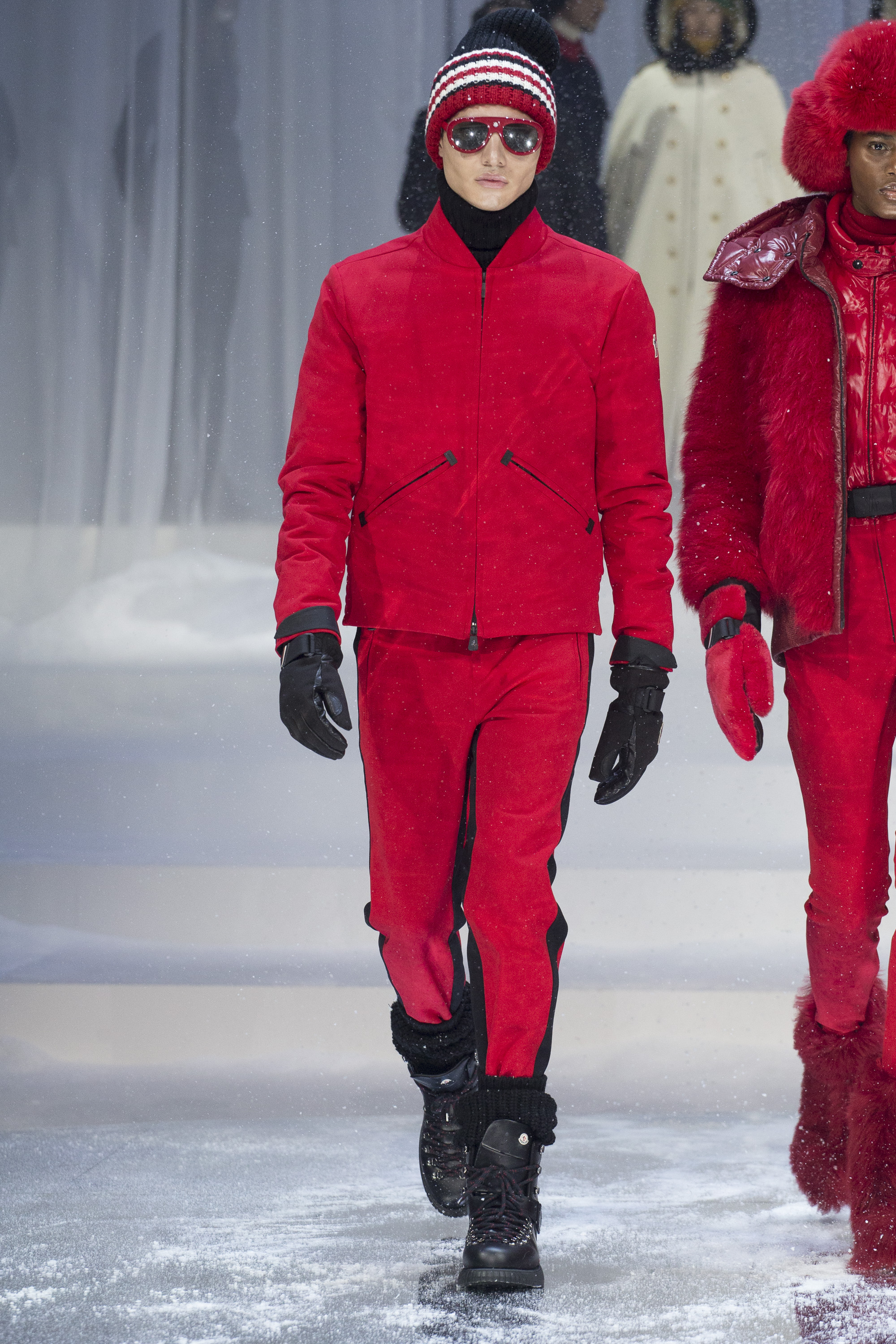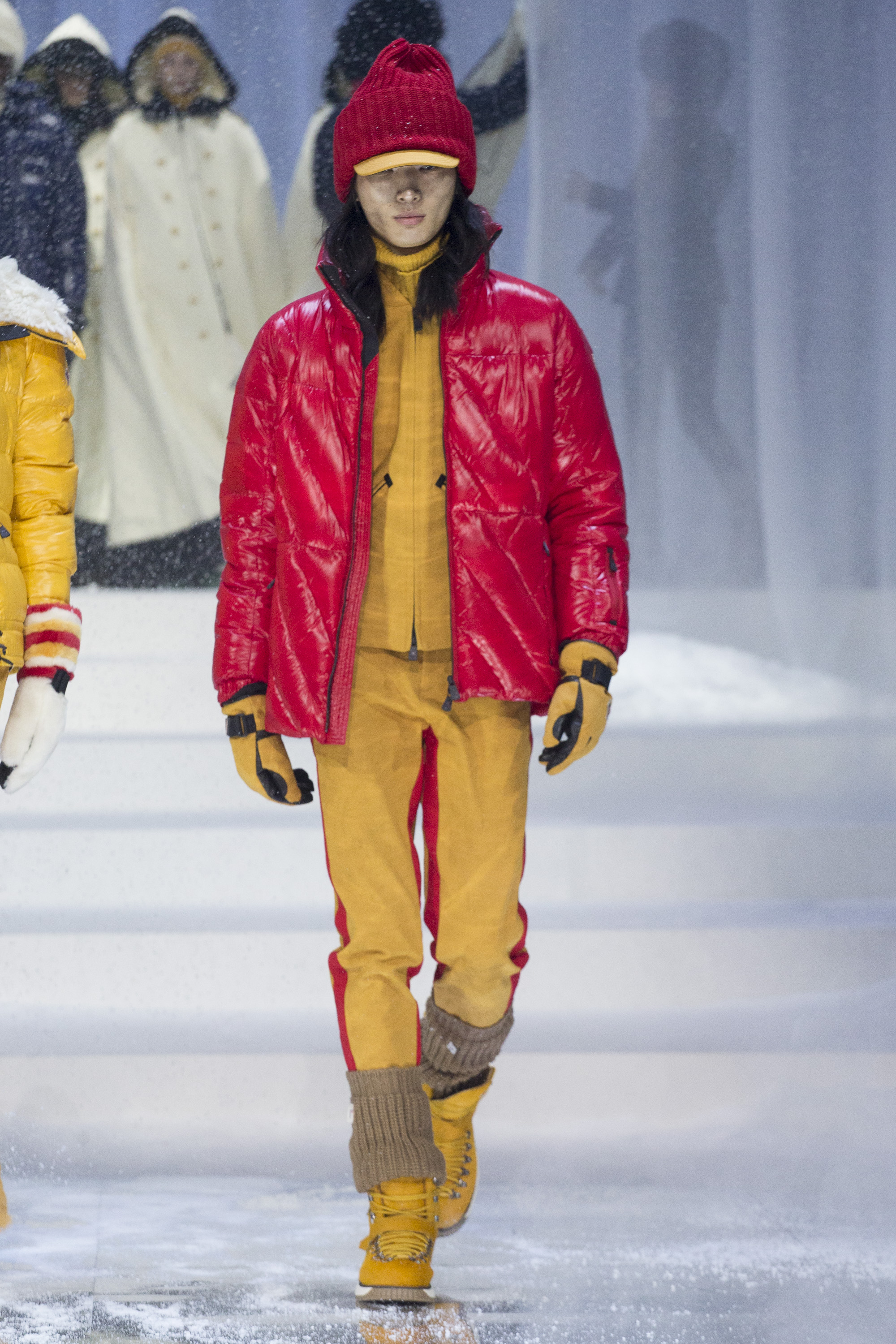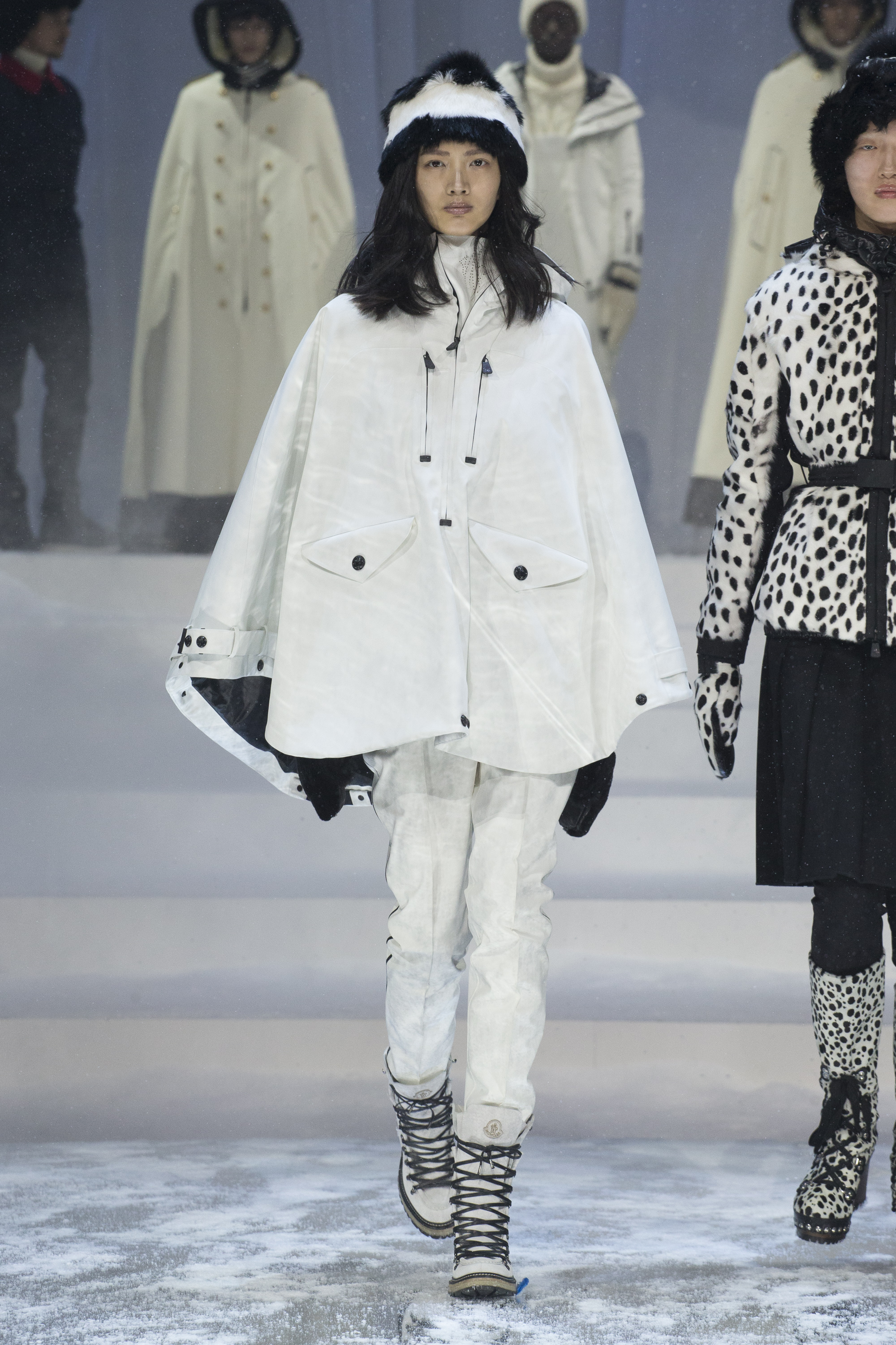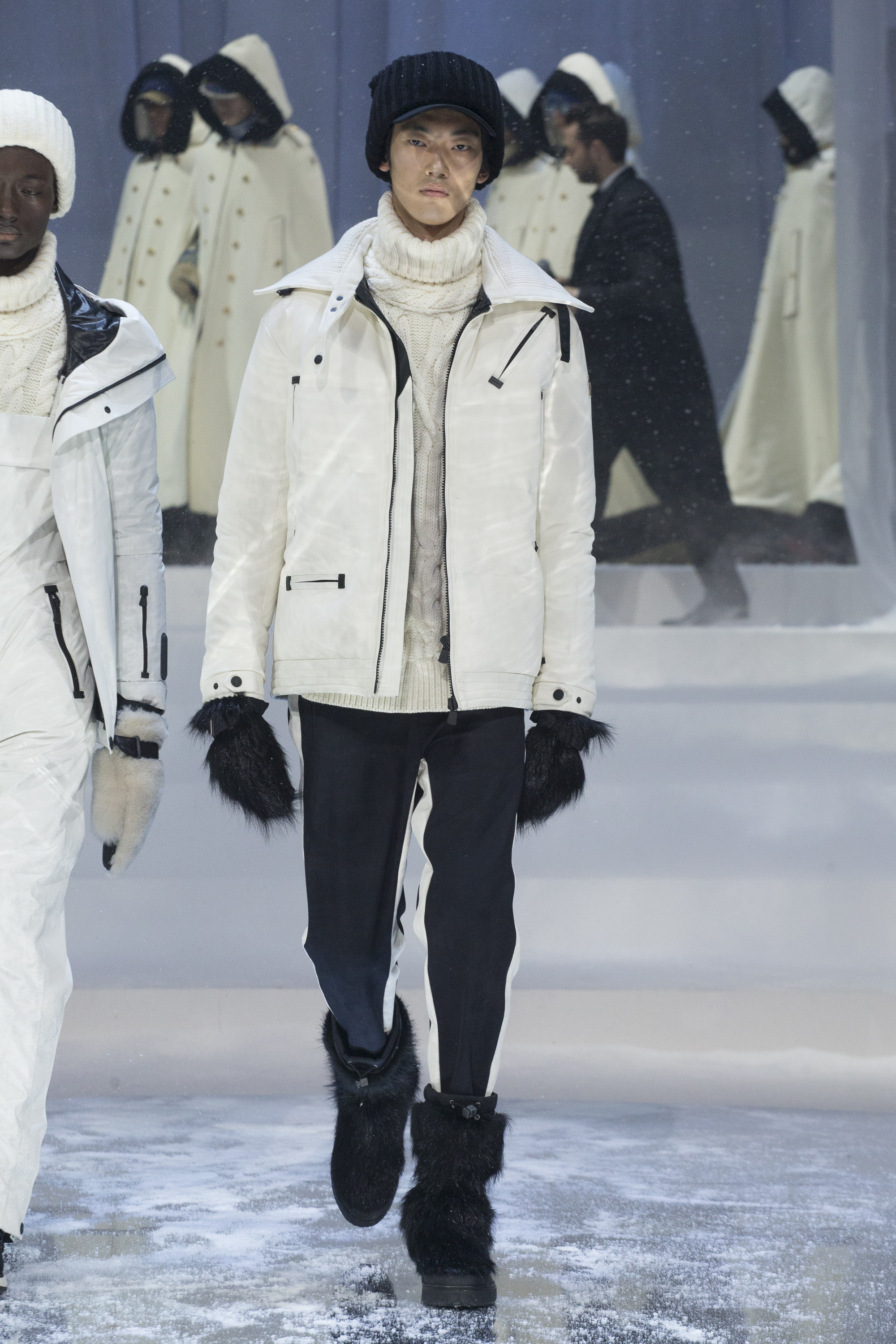 La collection Moncler Grenoble A/H 2017 se compose idéalement de trois sections articulées et autonomes, mais unies par un fil rouge commun à connotation sportive. La première, nettement spécialisée et fortement innovante dans la recherche, est Moncler Grenoble High Performance : un territoire hautement technique, pensé pour répondre à des exigences même extrêmes et à des conditions climatiques impossibles, une collection directement testée sur le terrain par de multiples talents sportifs proches de la marque. La seconde est la section Performance & Style, la proposition centrale de la collection, traditionnellement dédiée aux sports d’hiver, mais de plus en plus orientée aussi pour la ville. Et enfin le secteur de l’après-ski, aujourd’hui particulièrement développé et affiné dans son langage stylistique et dans l’emploi des matériaux.