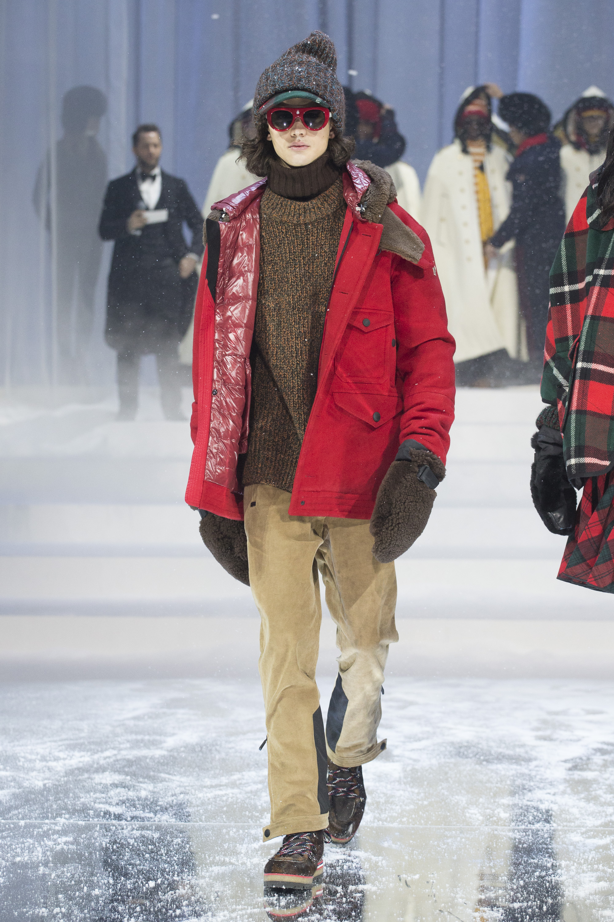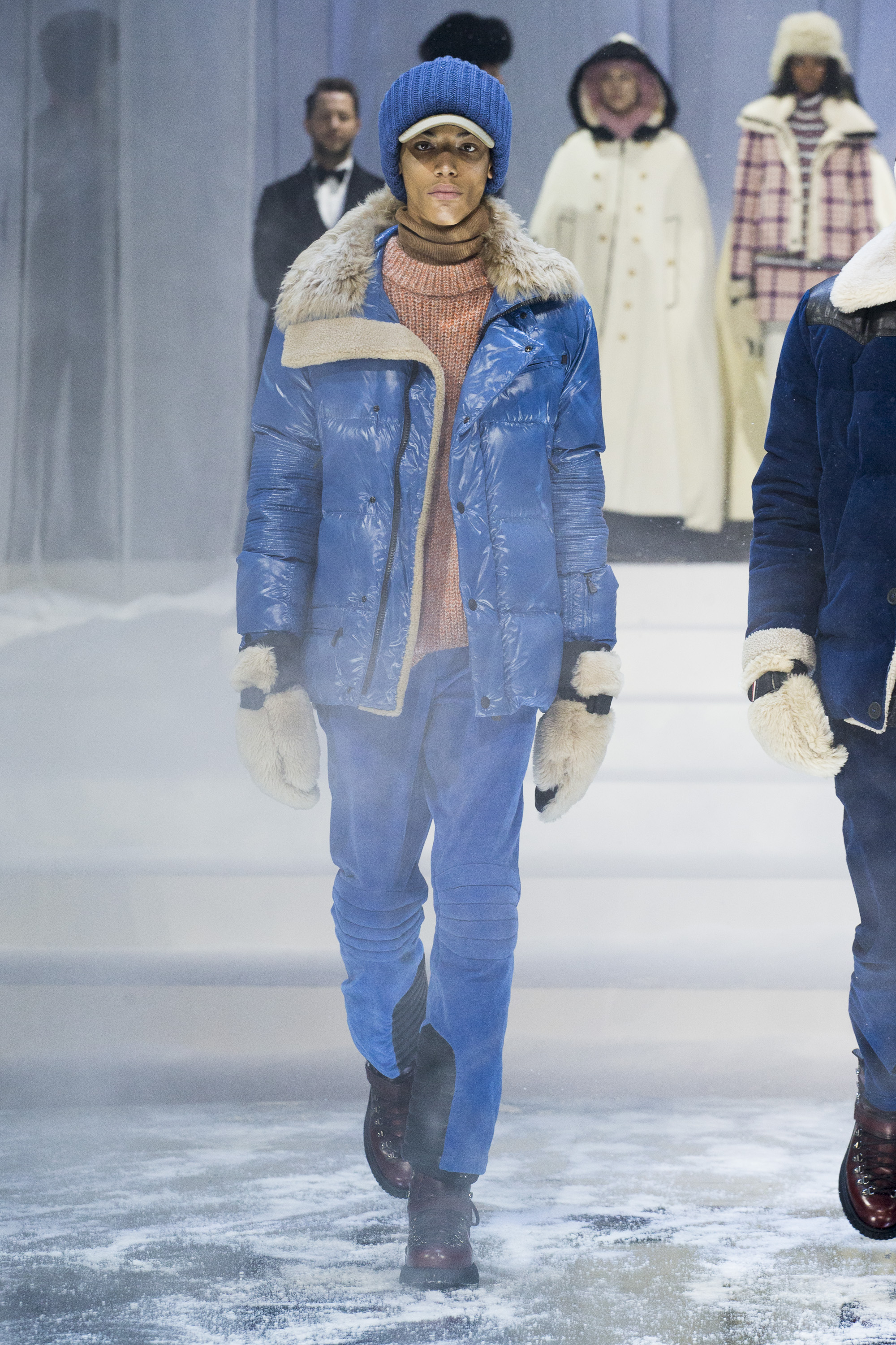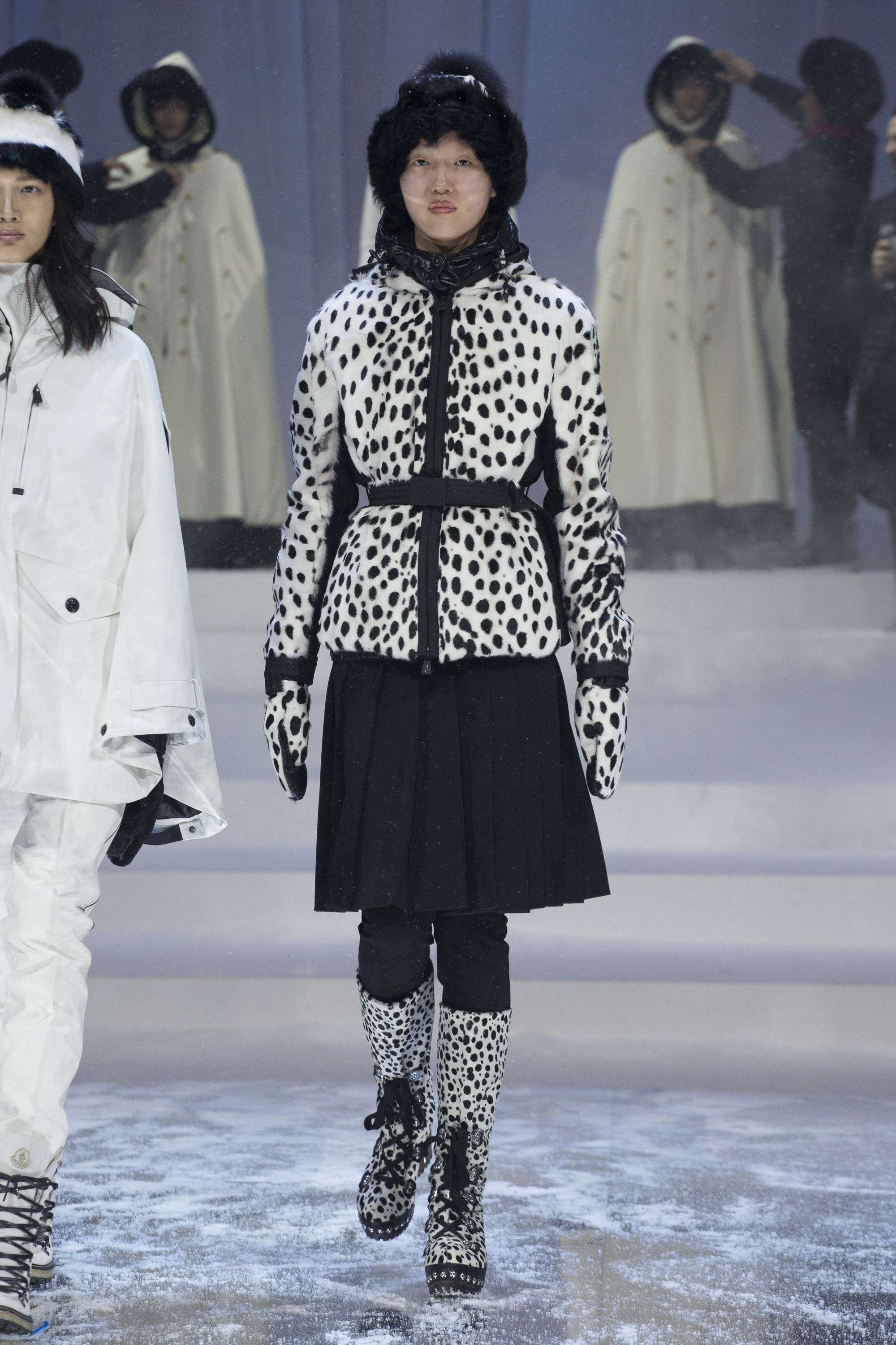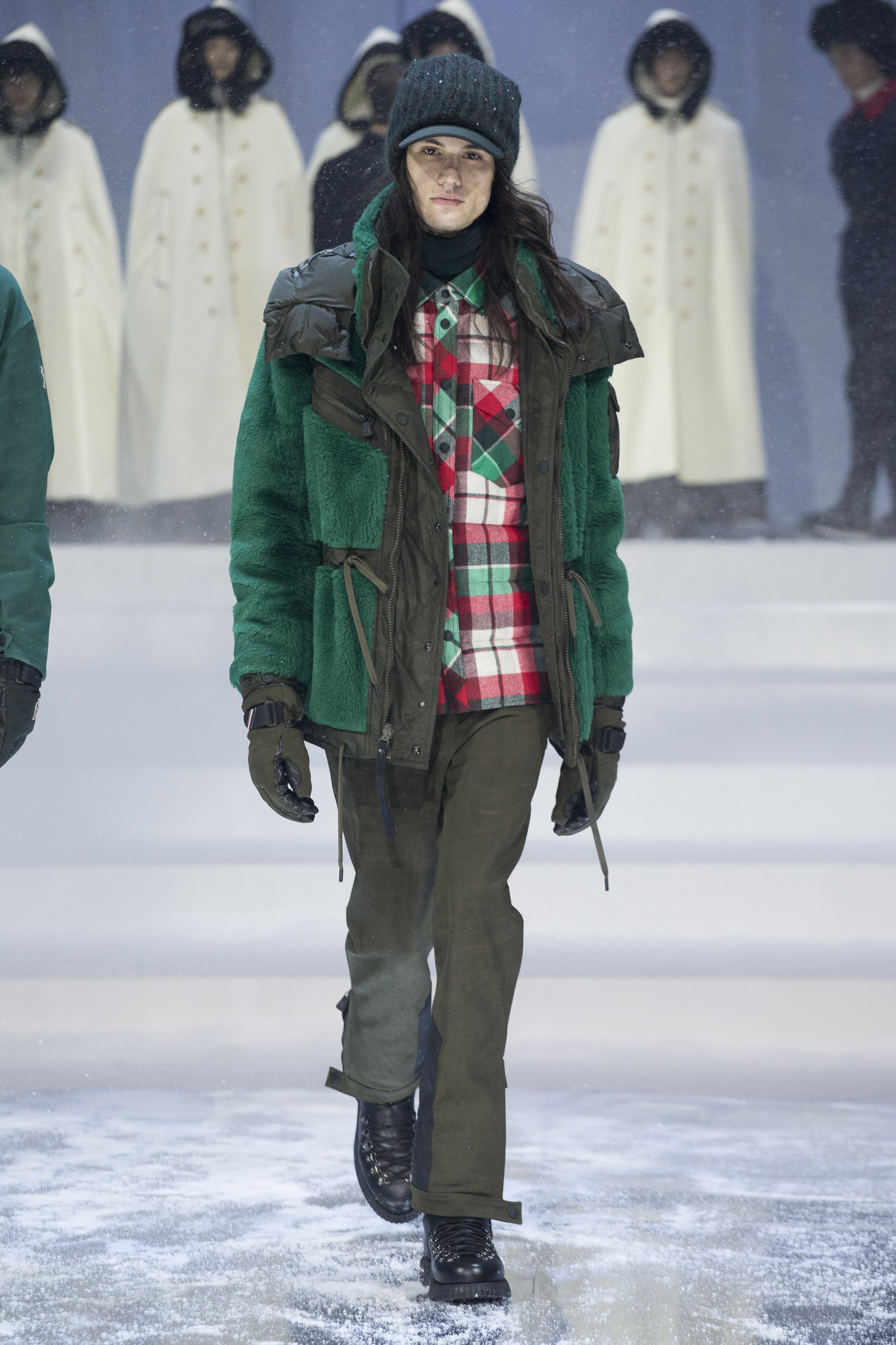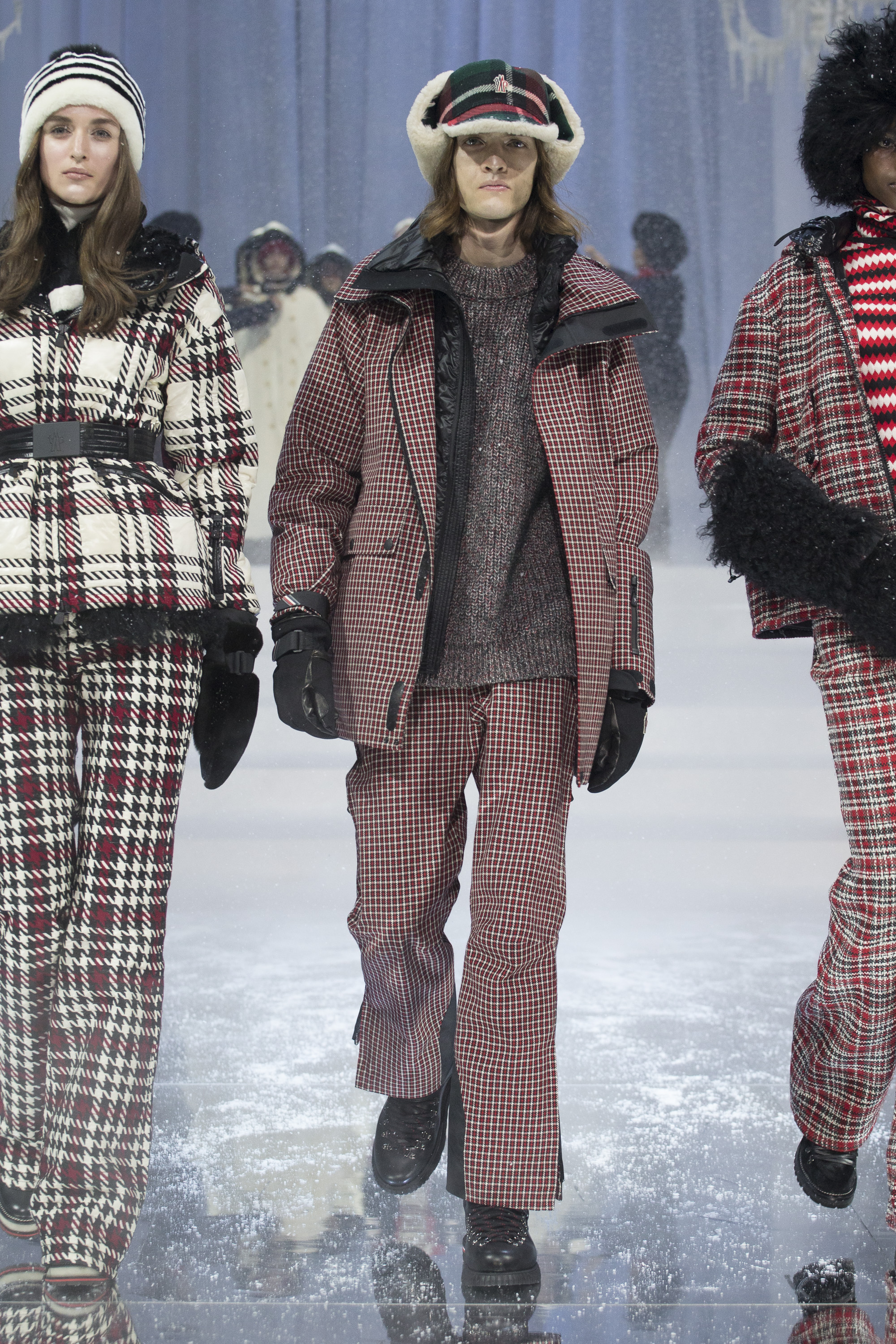 La collection Moncler Grenoble A/H 2017 se compose idéalement de trois sections articulées et autonomes, mais unies par un fil rouge commun à connotation sportive. La première, nettement spécialisée et fortement innovante dans la recherche, est Moncler Grenoble High Performance : un territoire hautement technique, pensé pour répondre à des exigences même extrêmes et à des conditions climatiques impossibles, une collection directement testée sur le terrain par de multiples talents sportifs proches de la marque. La seconde est la section Performance & Style, la proposition centrale de la collection, traditionnellement dédiée aux sports d’hiver, mais de plus en plus orientée aussi pour la ville. Et enfin le secteur de l’après-ski, aujourd’hui particulièrement développé et affiné dans son langage stylistique et dans l’emploi des matériaux.