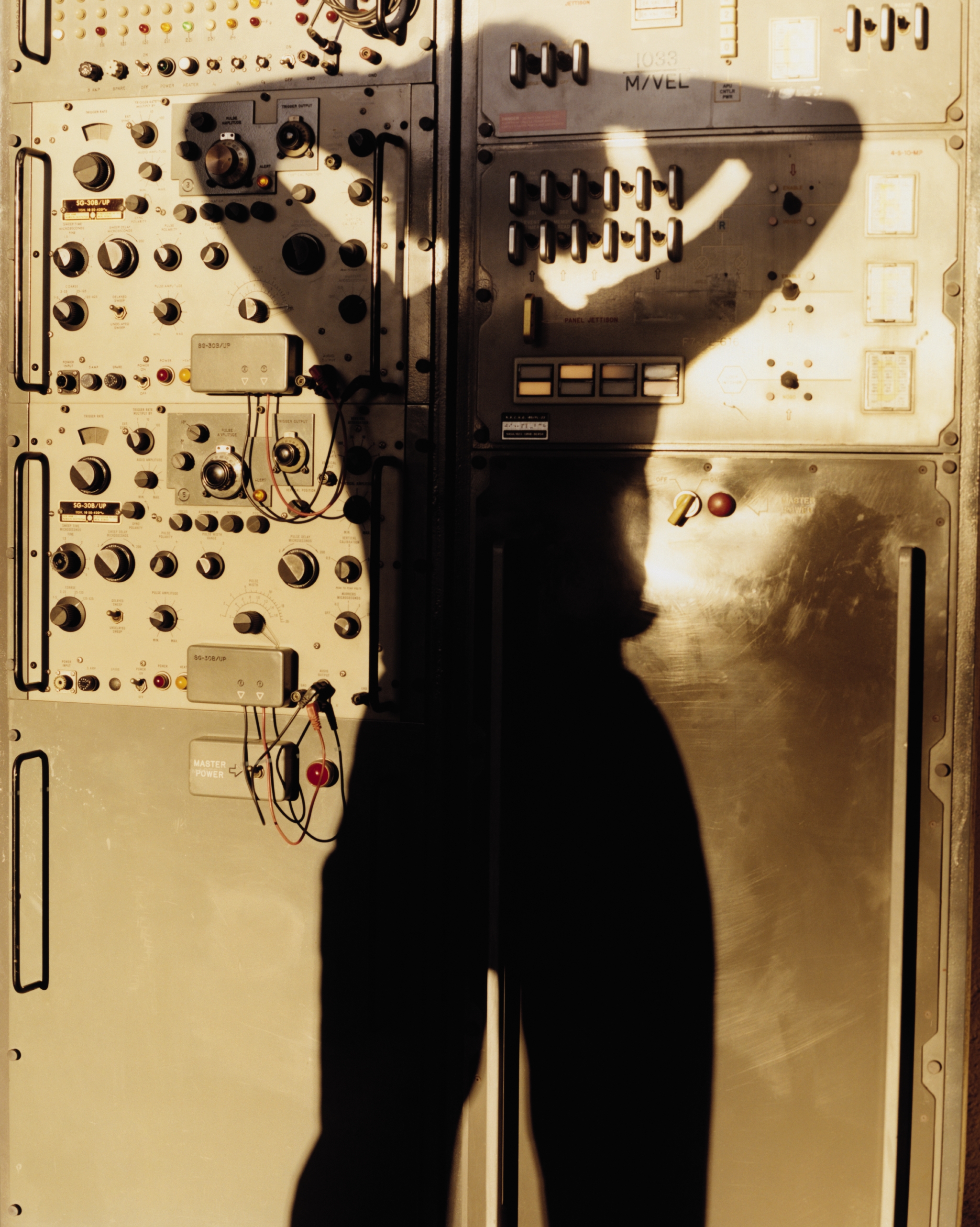 avec en toile de fond un décor virtuel constitué de pylônes floutés et d’éclats de lumières pixélisés.