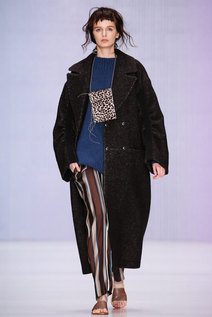 Camel, beige, noir et gris mêlée à quelques imprimés. À la fois séductrice et réservée, abordant une garde-robe qui se fond à la ville de nuit comme de jour. YULIA NIKOLAEVA souffle le chaud et le froid telle « la parisienne ». Rencontre entre l’esprit minimaliste de Celine , la palette de NEHERA et la verve d’Isabel Marant.