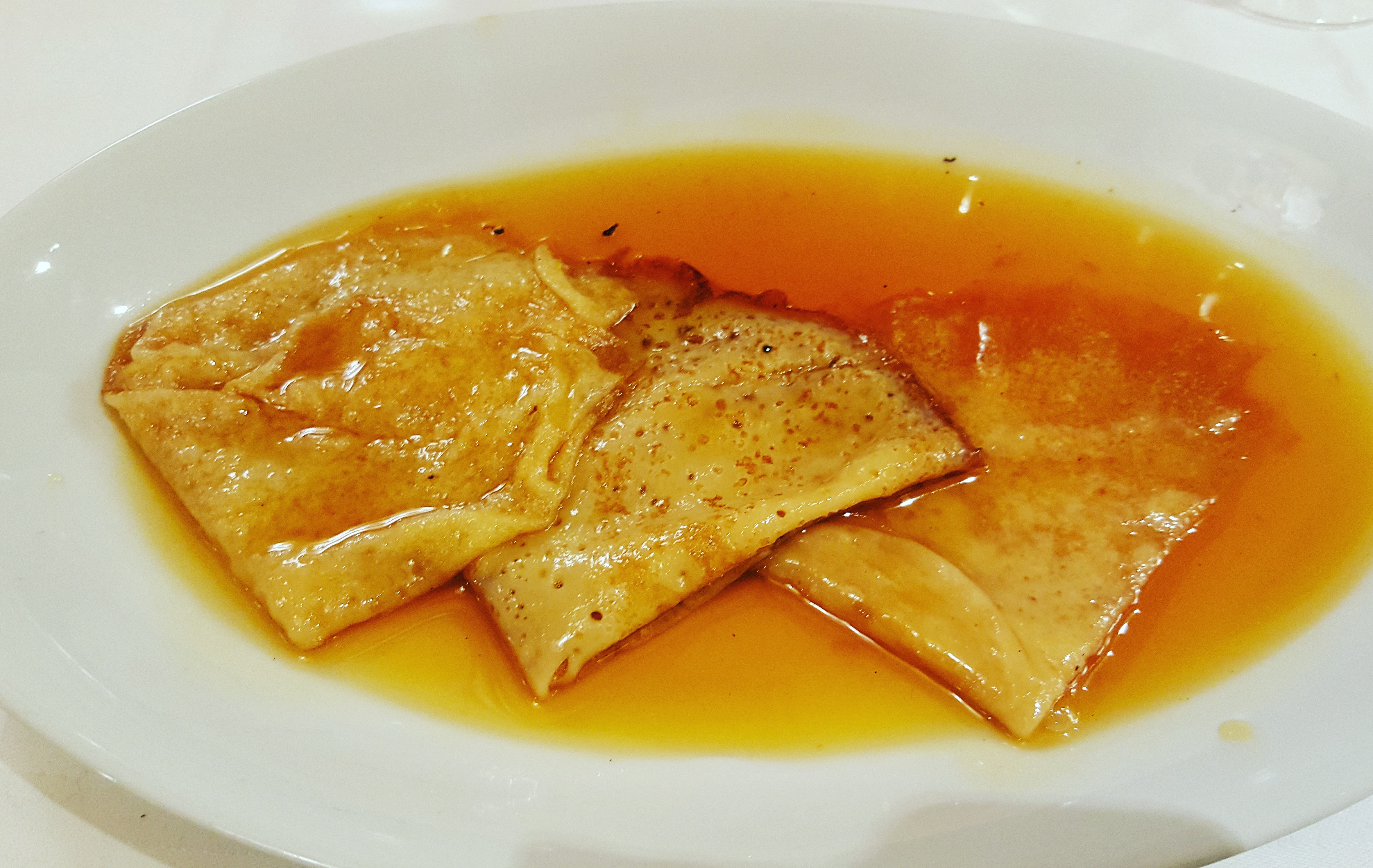 profiteroles au chocolat en passant par une île flottante caramélisée ou des crêpes flambées au Grand Marnier (mention speciale). C’est sans compter tous les grands classiques du répertoire pâtissier : un millefeuille plus que parfait et un exceptionnel
