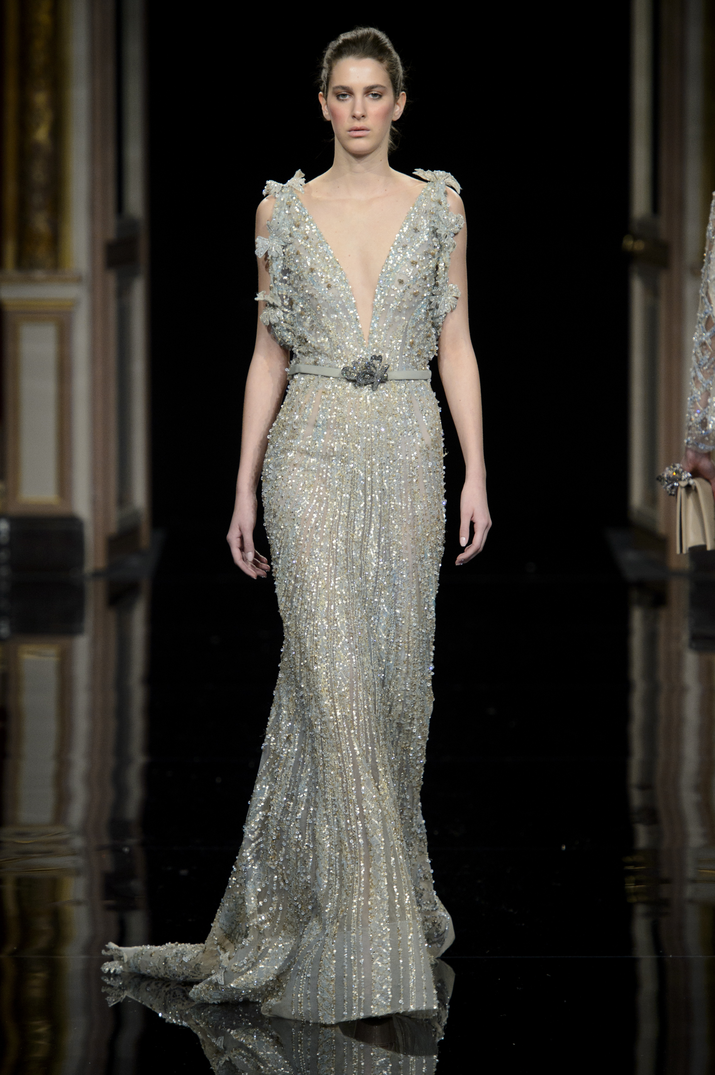 Des ceintures accompagnent certaines robes pour affirmer la taille. Serties de bijouteries ou en bronze aux formes de papillons brodées de pierres Swarovski. Des sacs à mains aussi viennent compléter les silhouettes.