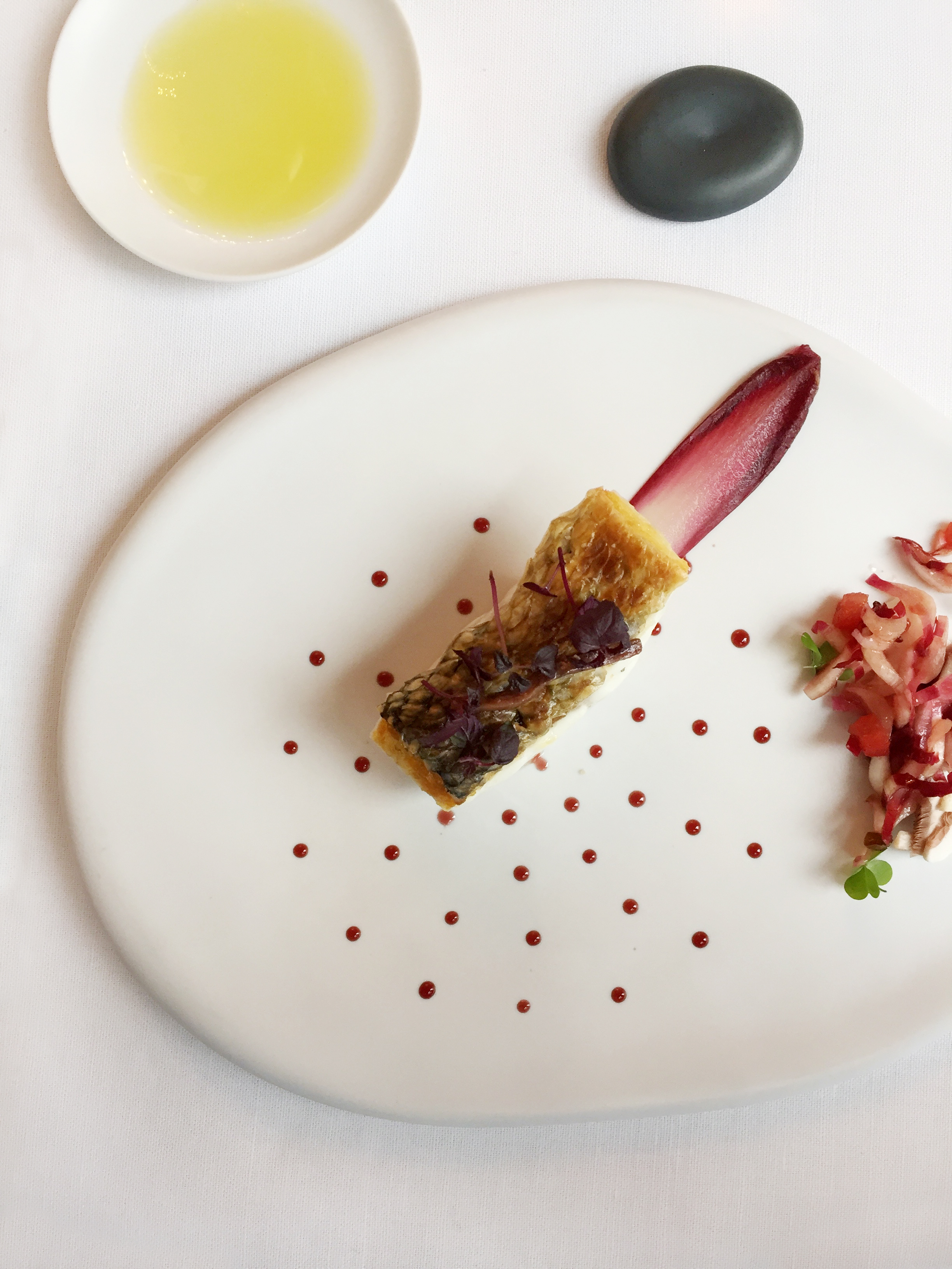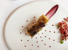- Le bar de ligne rôti sur ses écailles, condiments endive au vinaigre de Barolo