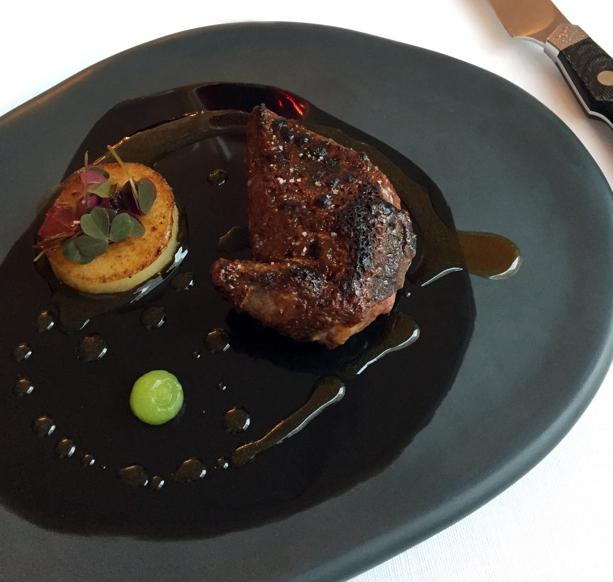 9. Le pigeon laqué au miso, tapenade de foie et figue rôtie