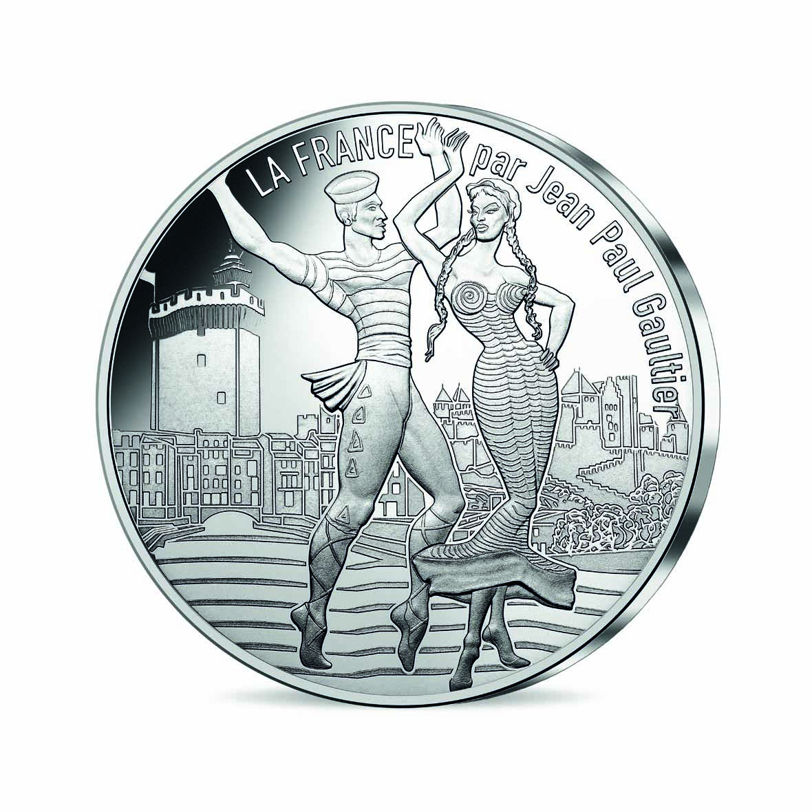 APRÈS LA POÉSIE DU PETIT PRINCE, LA MONNAIE DE PARIS CONFIE SA THÉMATIQUE 2017 À « L’ENFANT TERRIBLE » DE LA MODE, JEAN PAUL GAULTIER. PROPOSÉE EN DEUX TEMPS, CETTE NOUVELLE SÉRIE DE MONNAIES DE COLLECTION À VALEUR FACIALE EN ARGENT, ARGENT COLORÉ ET OR EXPRIME LA RENCONTRE ENTRE DEUX FORMIDABLES UNIVERS CRÉATIFS, LA MODE ET LES ATELIERS DE LA MONNAIE DE PARIS. PÉTILLANTE D’HUMOUR ET D’AMOUR POUR LES RÉGIONS FRANÇAISES, CETTE COLLECTION BAPTISÉE « LA FRANCE PAR JEAN PAUL GAULTIER »