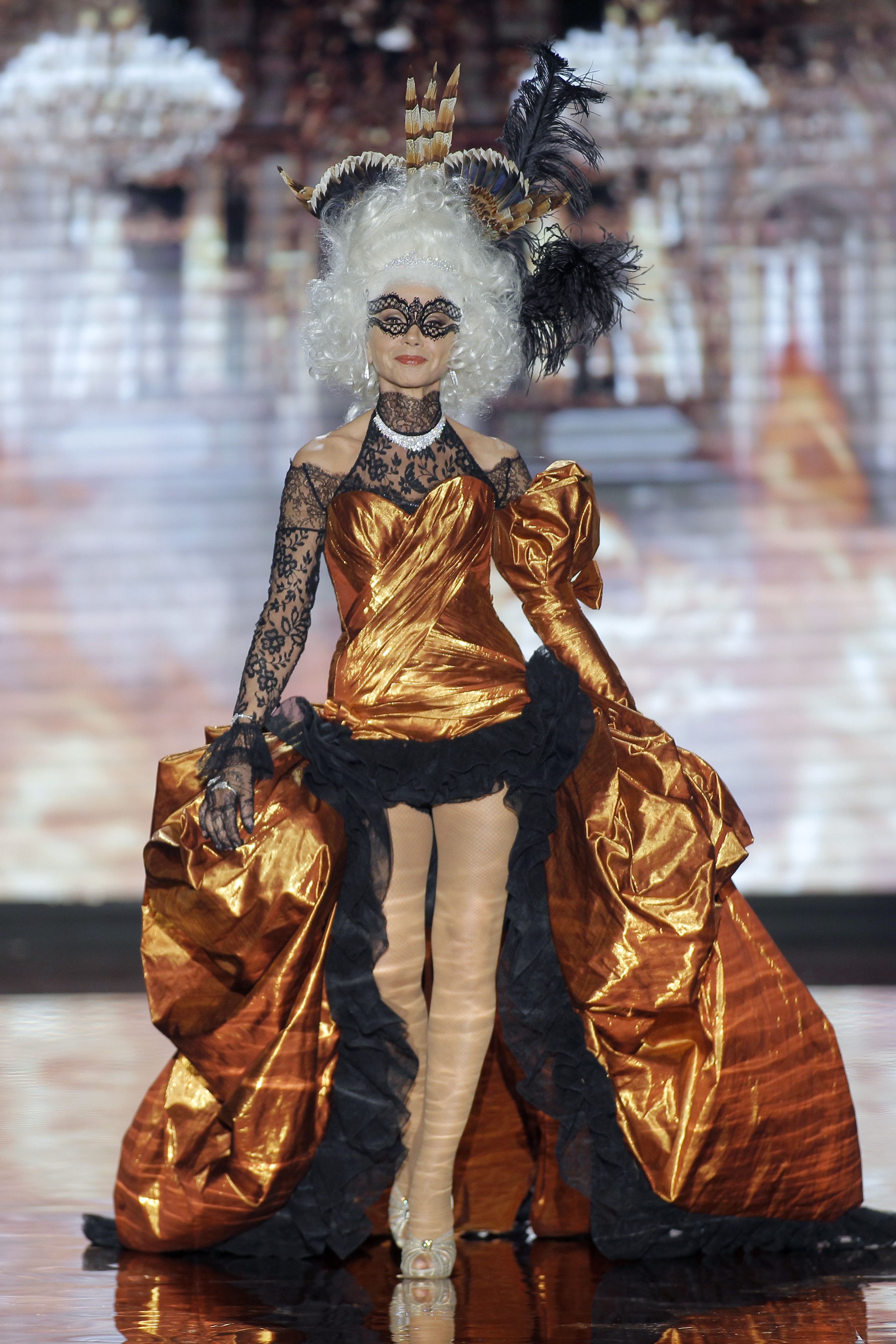 Quant aux vêtements, l’influence de l’esthétique liée à la Révolution Française, immortalisée par des artistes comme Eugene Delacroix, connu pour son œuvre emblématique ‘La Liberté guidant le Peuple’, se fait sentir dans les corsets et les amples cafetans en coton popeline, les crinolines en canne et cuivre, les jolis chapeaux, les jupons suggestifs et les fanfreluches. Les détails – comme il y a les plumes, les franges, les volants et les transparents – suggèrent une nature rebelle et douce à la fois.