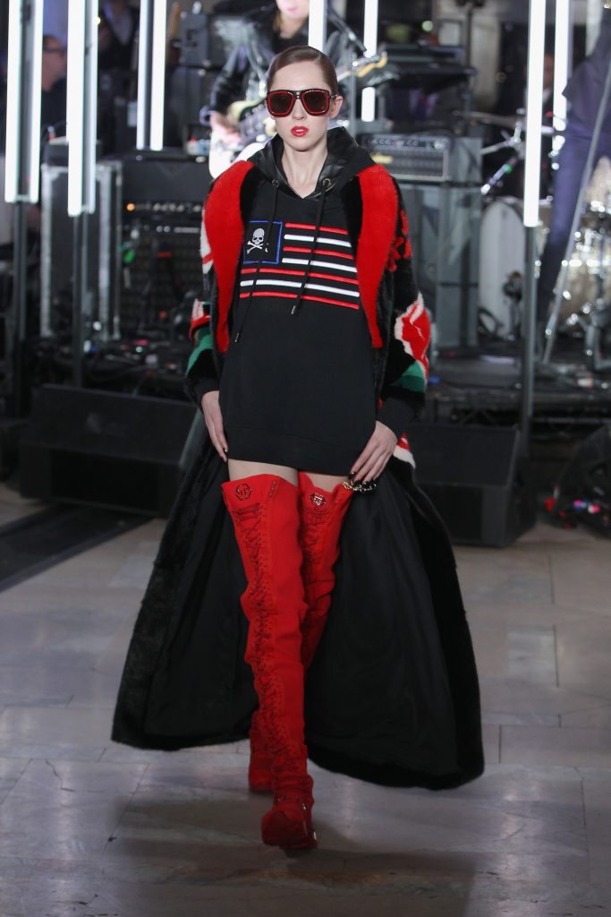 - NEW YORK, NY – FEBRUARY 13: A model walks the runway wearing look # 76 for the Philipp Plein Fall/Winter 2017/2018 Women’s And Men’s Fashion Show at The New York Public Library on February 13, 2017 in New York City. (Photo by Thomas Concordia/Getty Images for Philipp Plein)