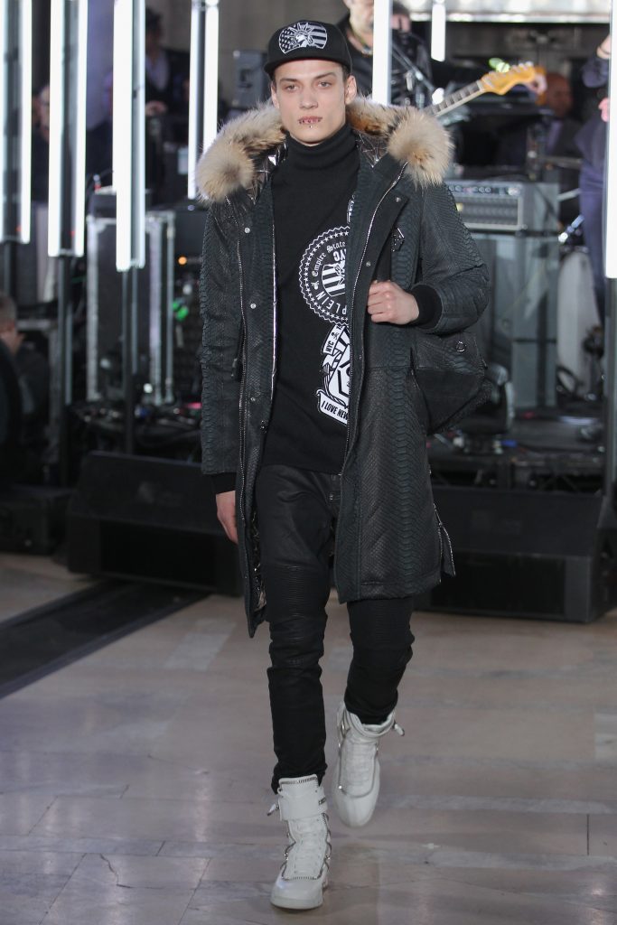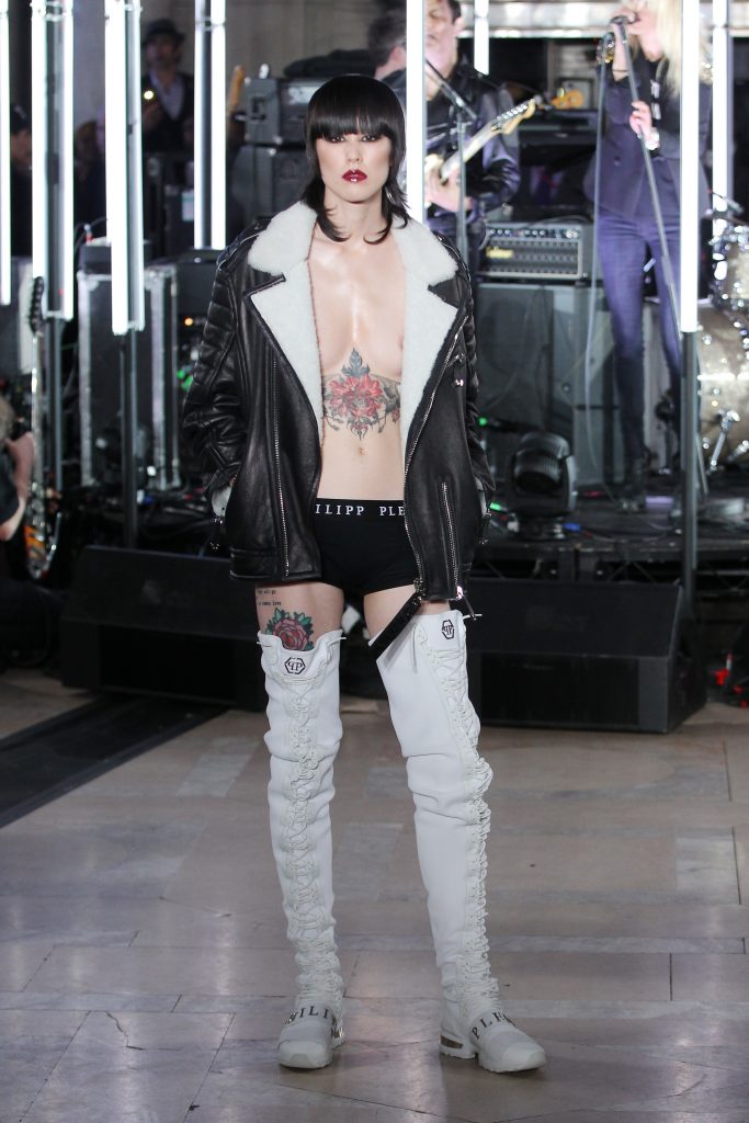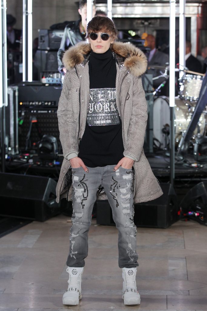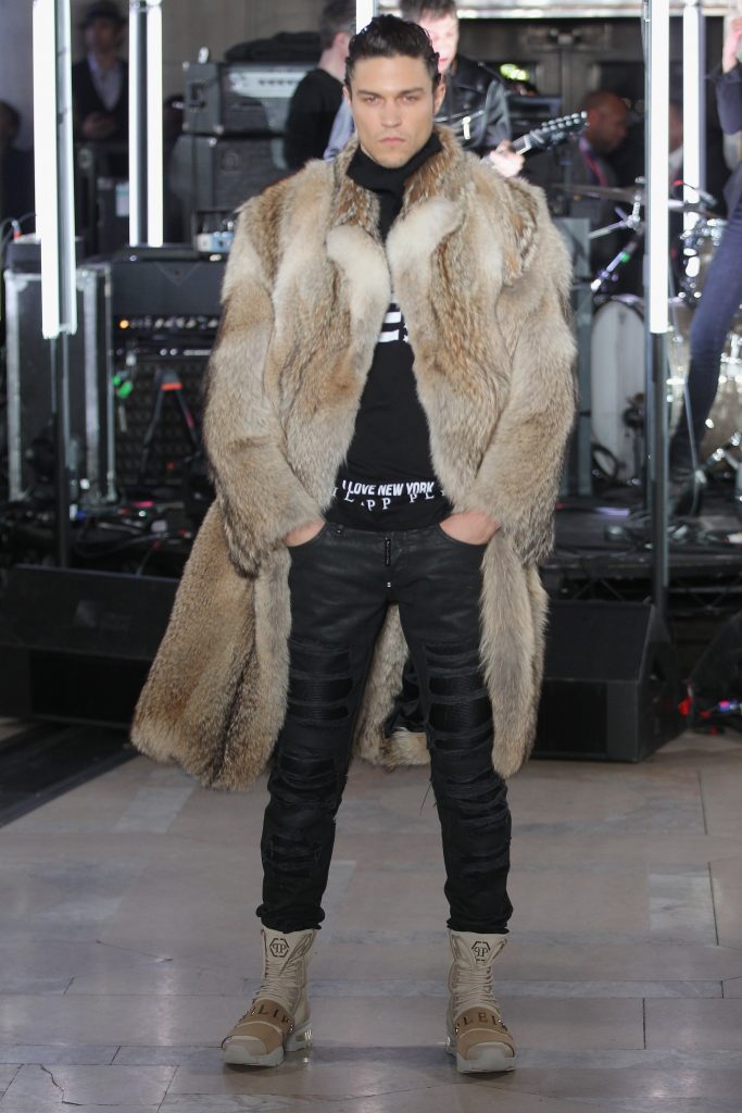 - NEW YORK, NY – FEBRUARY 13: A model walks the runway wearing look #24 for the Philipp Plein Fall/Winter 2017/2018 Women’s And Men’s Fashion Show at The New York Public Library on February 13, 2017 in New York City. (Photo by Thomas Concordia/Getty Images for Philipp Plein)
