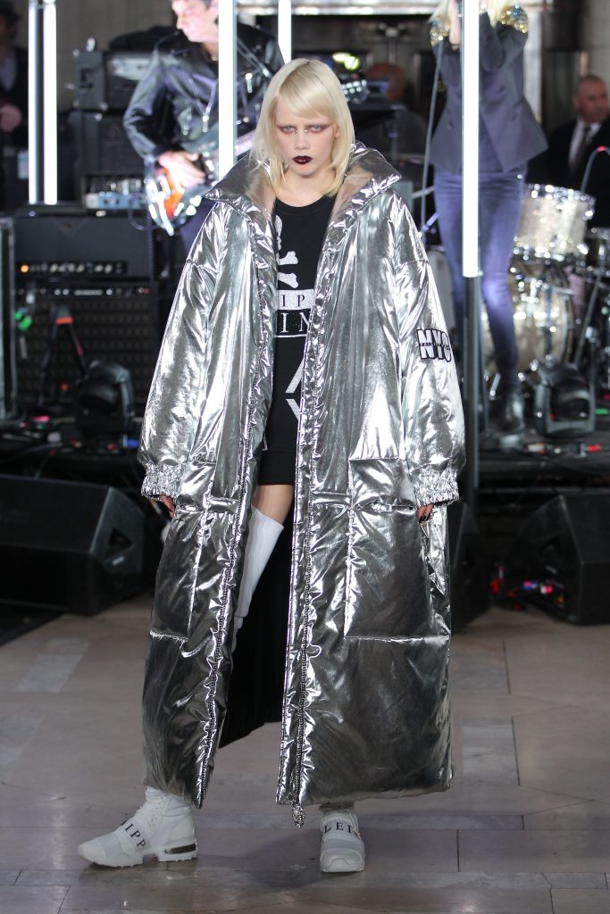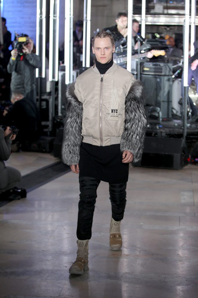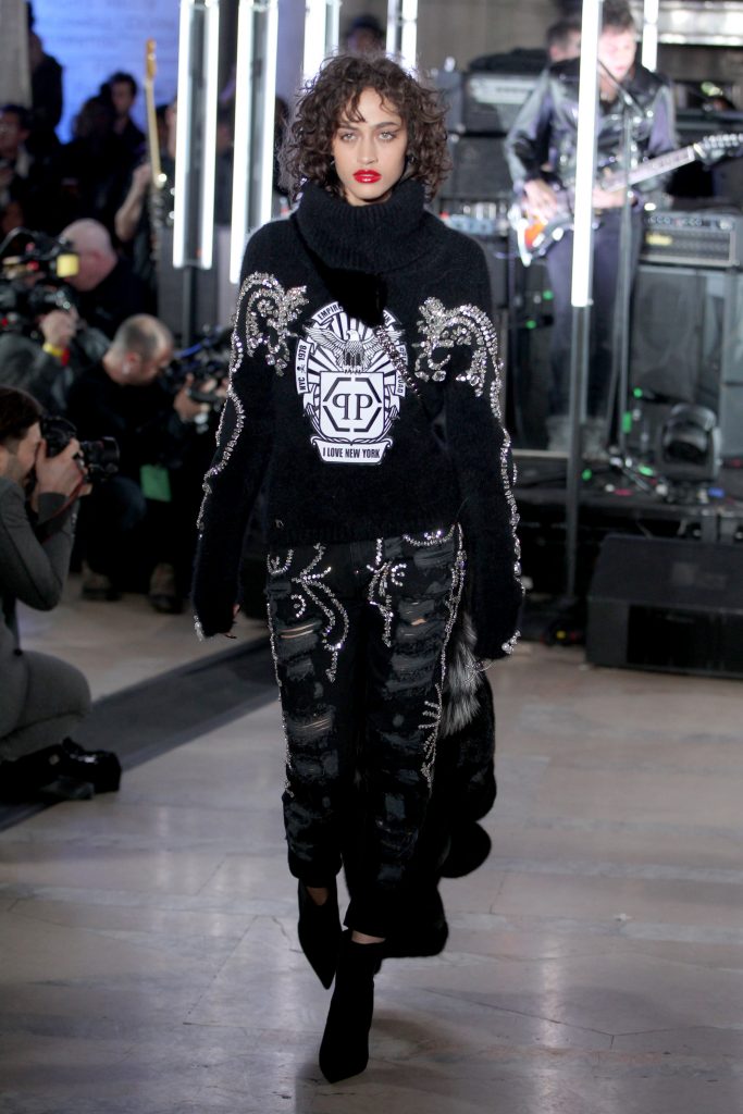 - NEW YORK, NY – FEBRUARY 13: A model walks the runway wearing look # 79 for the Philipp Plein Fall/Winter 2017/2018 Women’s And Men’s Fashion Show at The New York Public Library on February 13, 2017 in New York City. (Photo by Thomas Concordia/Getty Images for Philipp Plein)