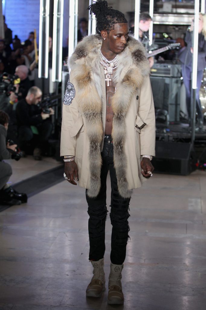 - NEW YORK, NY – FEBRUARY 13: Rapper Young Thug walks the runway wearing look #39 for the Philipp Plein Fall/Winter 2017/2018 Women’s And Men’s Fashion Show at The New York Public Library on February 13, 2017 in New York City. (Photo by Thomas Concordia/Getty Images for Philipp Plein) *** Local Caption *** Young Thug