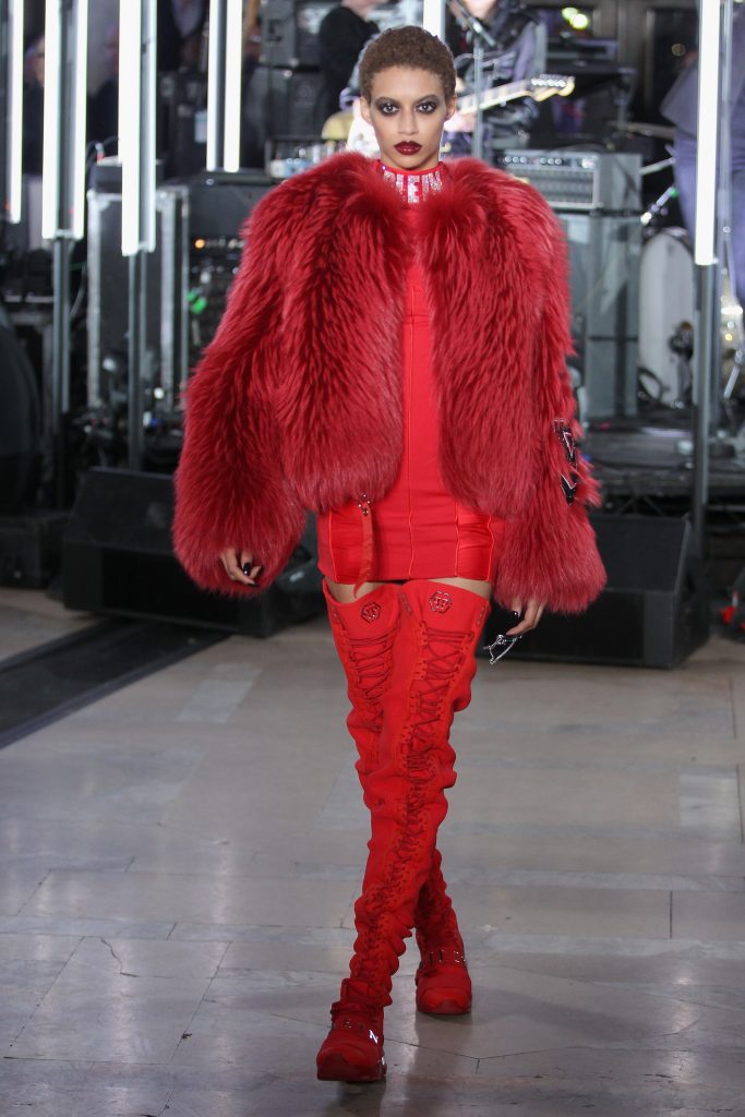 - NEW YORK, NY – FEBRUARY 13: A model walks the runway wearing look #65 for the Philipp Plein Fall/Winter 2017/2018 Women’s And Men’s Fashion Show at The New York Public Library on February 13, 2017 in New York City. (Photo by Thomas Concordia/Getty Images for Philipp Plein)