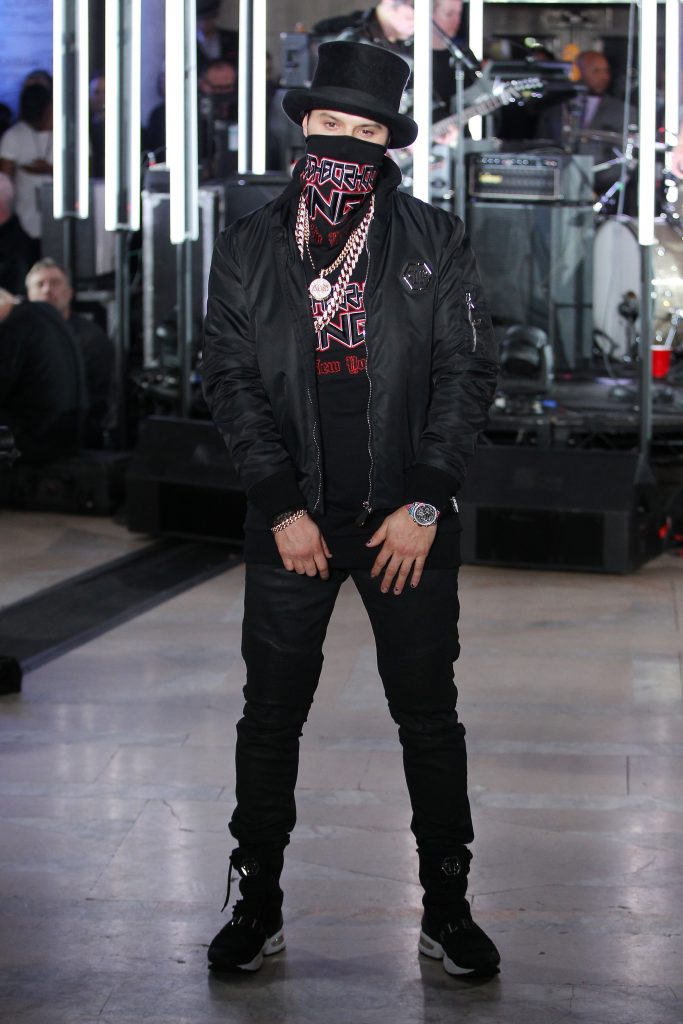 - NEW YORK, NY – FEBRUARY 13: Artist Alec Monopoly walks the runway wearing look #74 for the Philipp Plein Fall/Winter 2017/2018 Women’s And Men’s Fashion Show at The New York Public Library on February 13, 2017 in New York City. (Photo by Thomas Concordia/Getty Images for Philipp Plein) *** Local Caption *** Alec Monopoly
