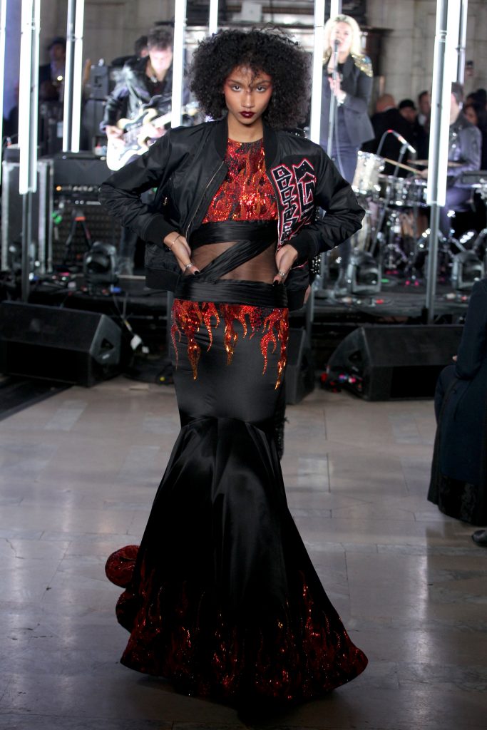 - NEW YORK, NY – FEBRUARY 13: A model walks the runway wearing look # 48 for the Philipp Plein Fall/Winter 2017/2018 Women’s And Men’s Fashion Show at The New York Public Library on February 13, 2017 in New York City. (Photo by Thomas Concordia/Getty Images for Philipp Plein)