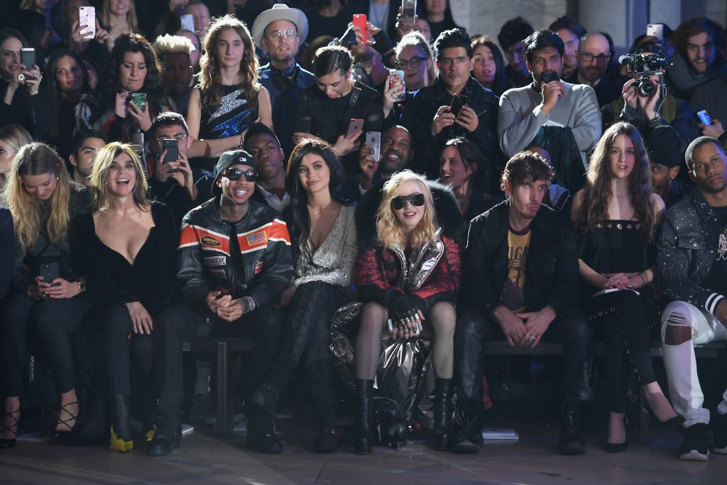 - NEW YORK, NY – FEBRUARY 13: (L-R) Tyga, Kylie Jenner, Madonna and Steven Klein attend the Front Row for the Philipp Plein Fall/Winter 2017/2018 Women’s And Men’s Fashion Show at The New York Public Library on February 13, 2017 in New York City. (Photo by Dimitrios Kambouris/Getty Images for Philipp Plein)