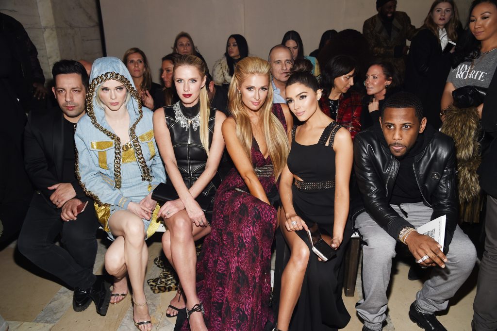 - NEW YORK, NY – FEBRUARY 13: (L-R) James Conran, Coco Rocha, Nicky Hilton Rothschild, Paris Hilton, and Olivia Culpo attend the Front Row for the Philipp Plein Fall/Winter 2017/2018 Women’s And Men’s Fashion Show at The New York Public Library on February 13, 2017 in New York City. (Photo by Dimitrios Kambouris/Getty Images for Philipp Plein)
