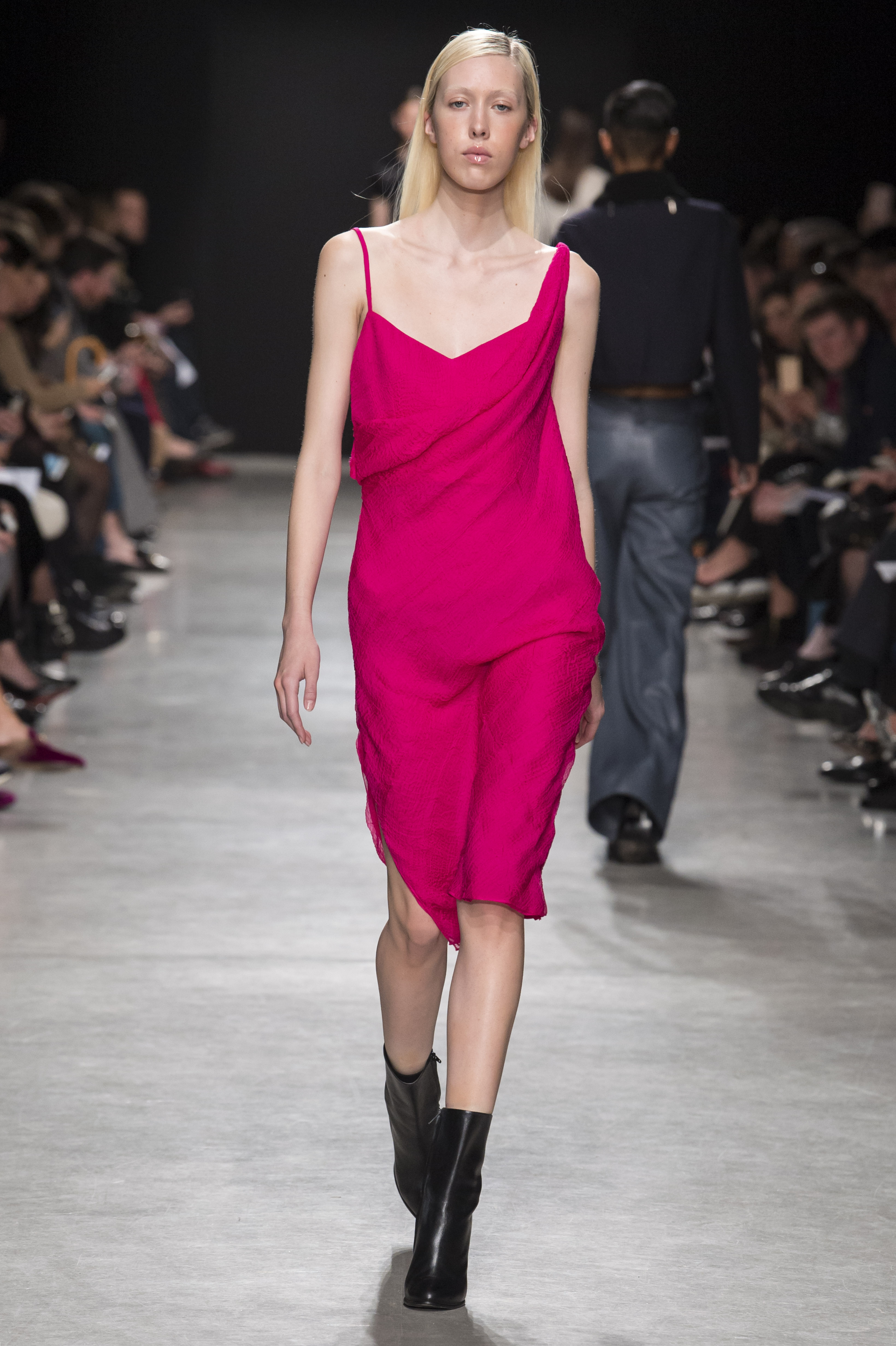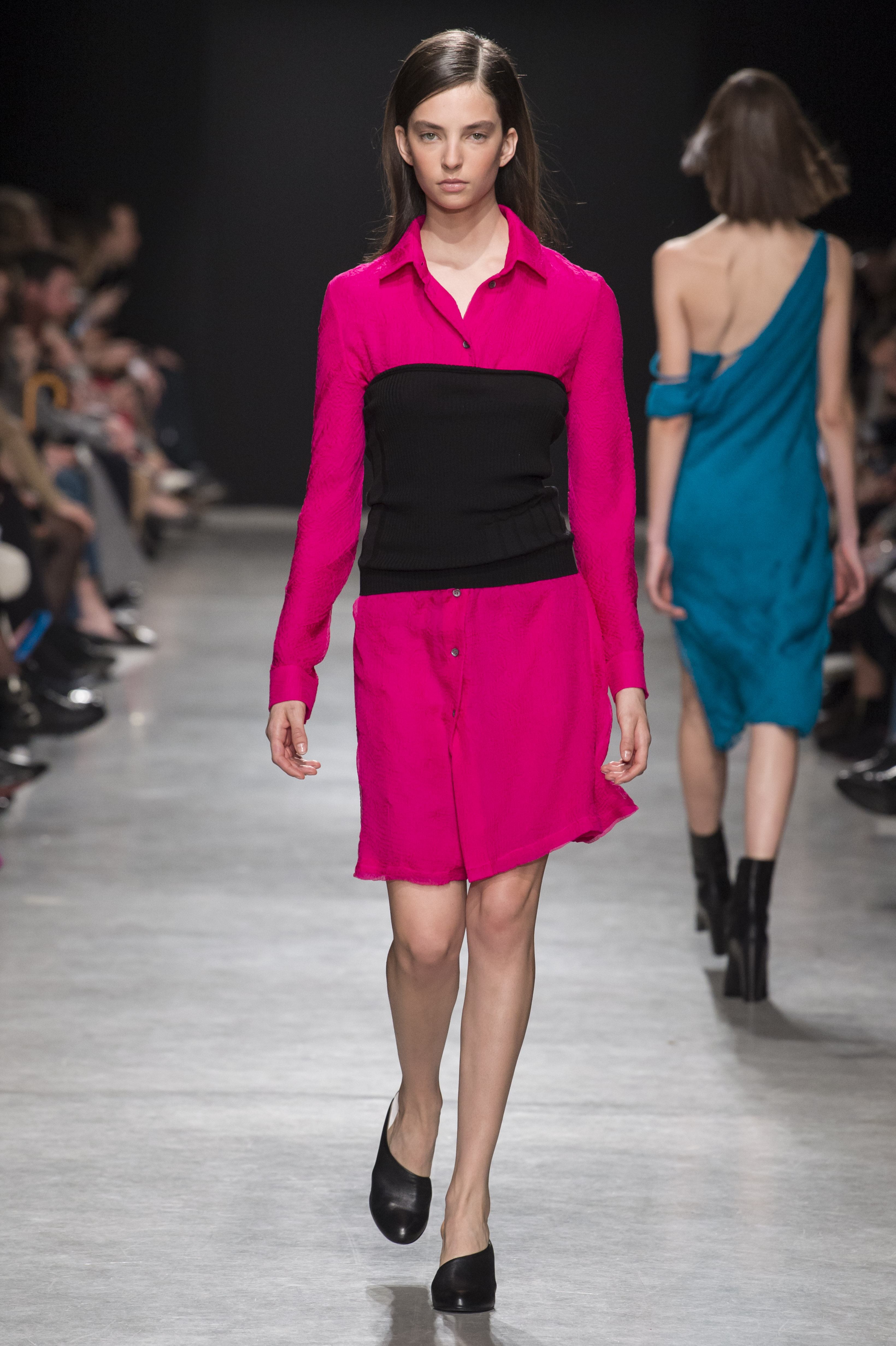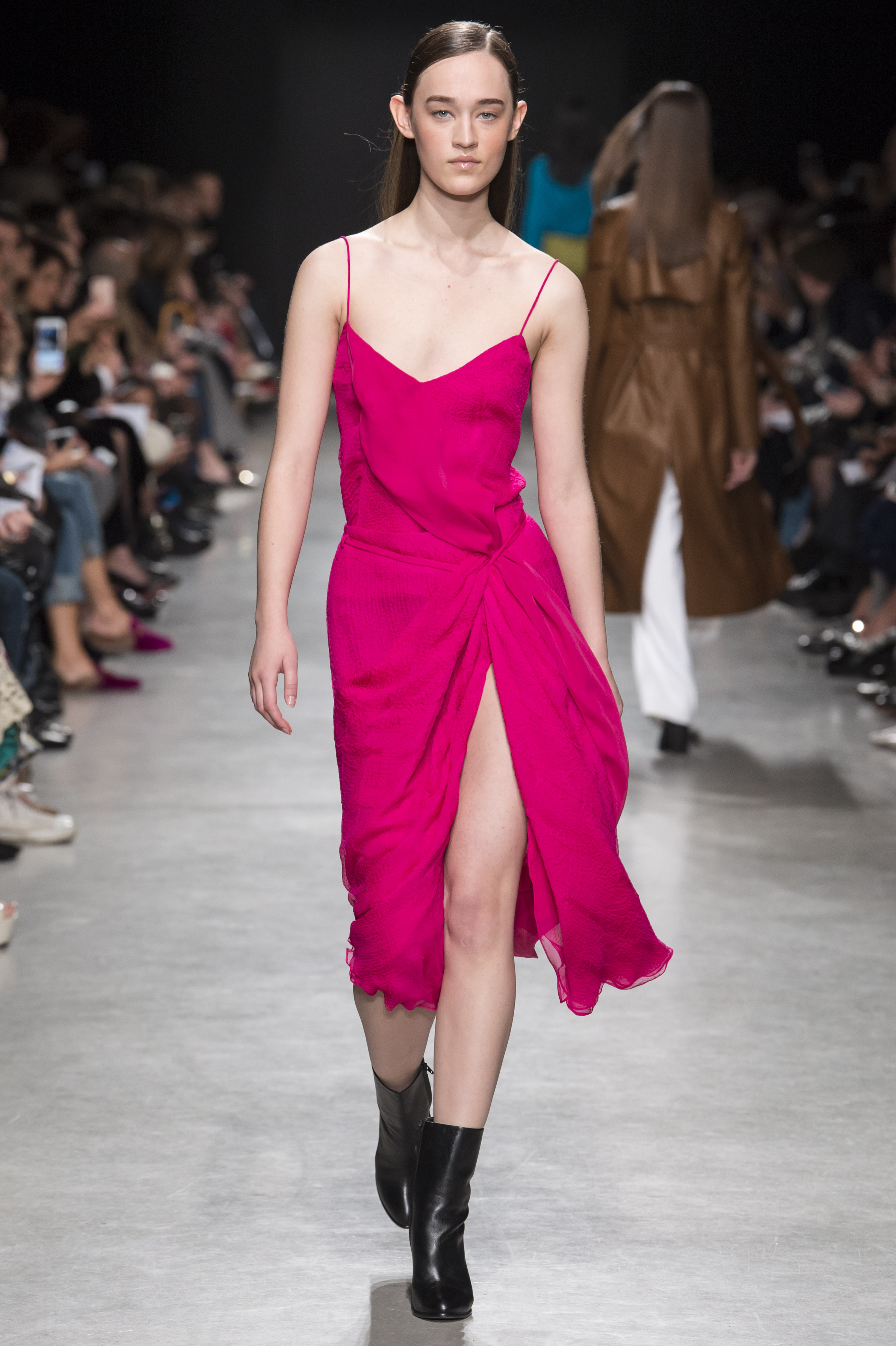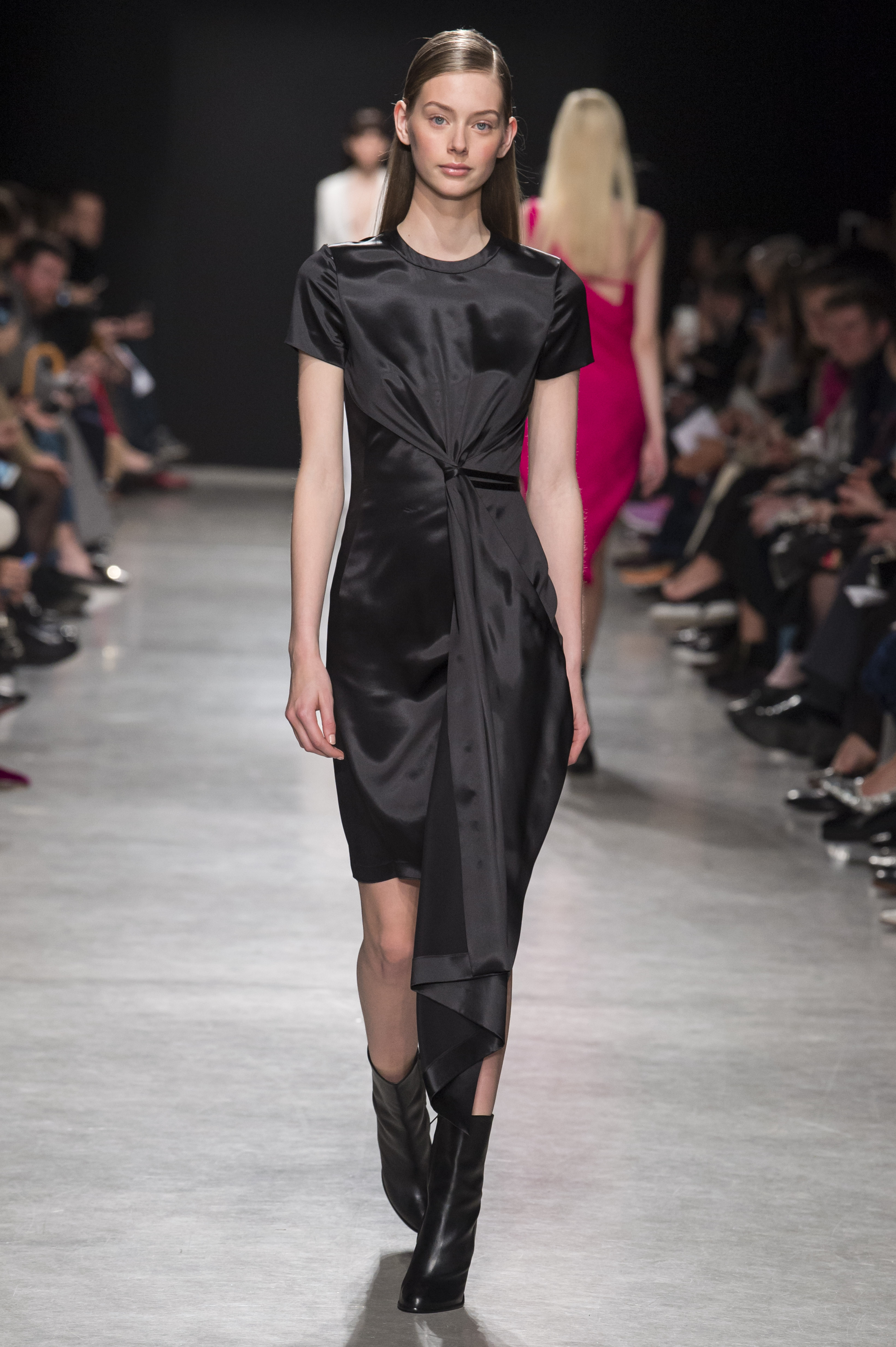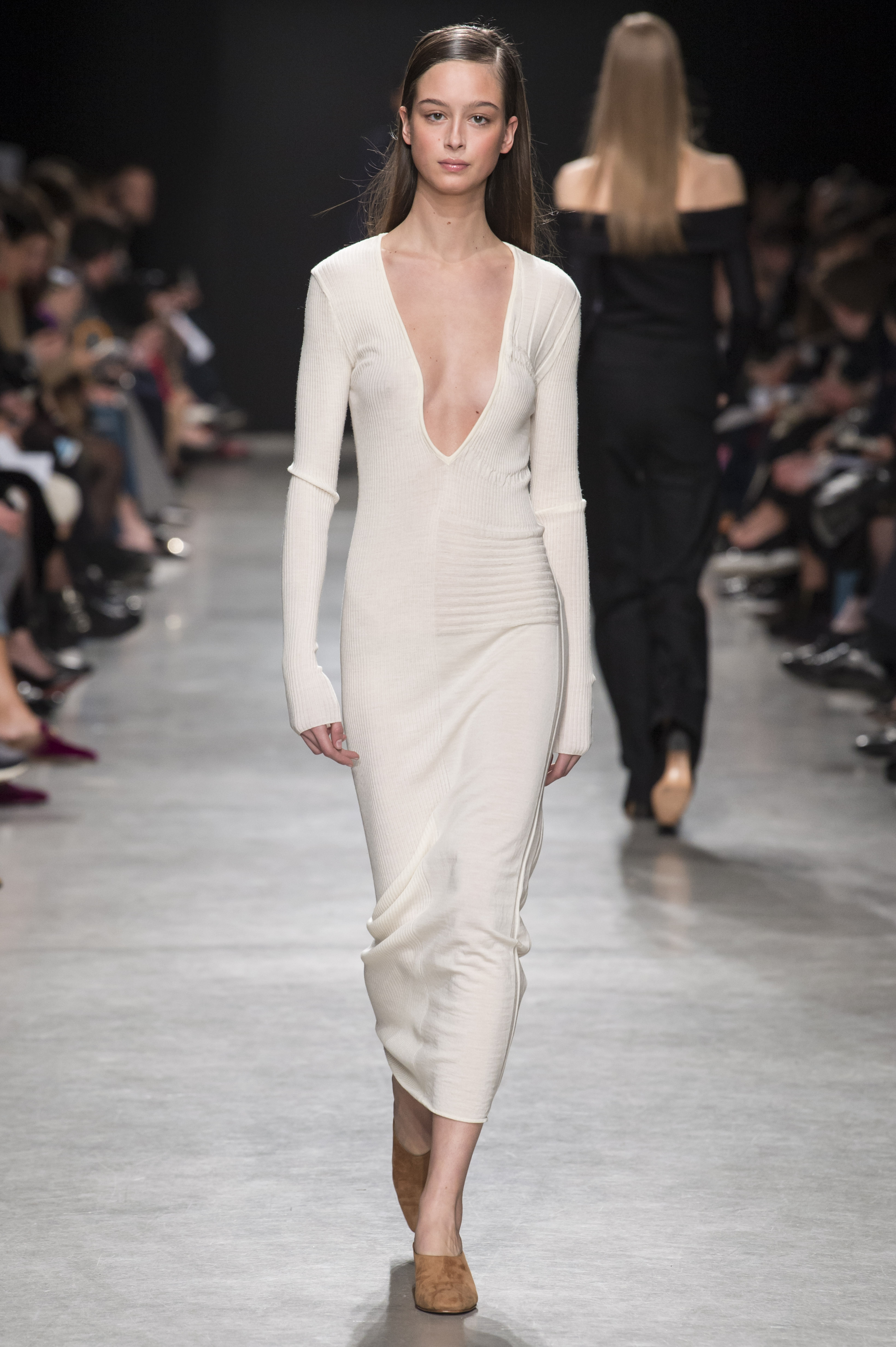 Les robes de cocktail sont à bretelles et asymétriques, ou avec un dos nu ovoïde, faisant de la peau un élément graphique qui illumine la pièce.