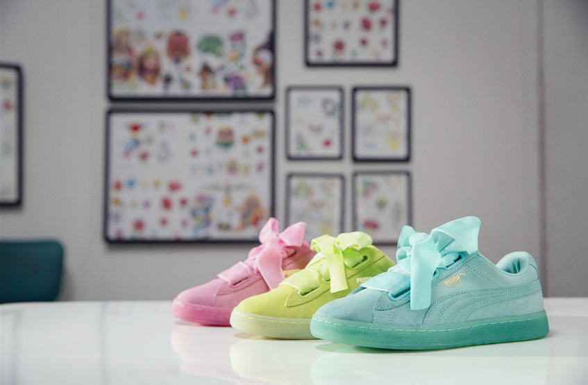 Un grand classique des terrains de sport, cette fois tout en douceur. Suede Heart est doté d’un extérieur en cuir velours et lacé à l’aide de larges rubans velours qui créent un nœud parfait. Disponible en couleurs pastel Aruba Blue, Prism Pink et Soft Fluo Yellow.