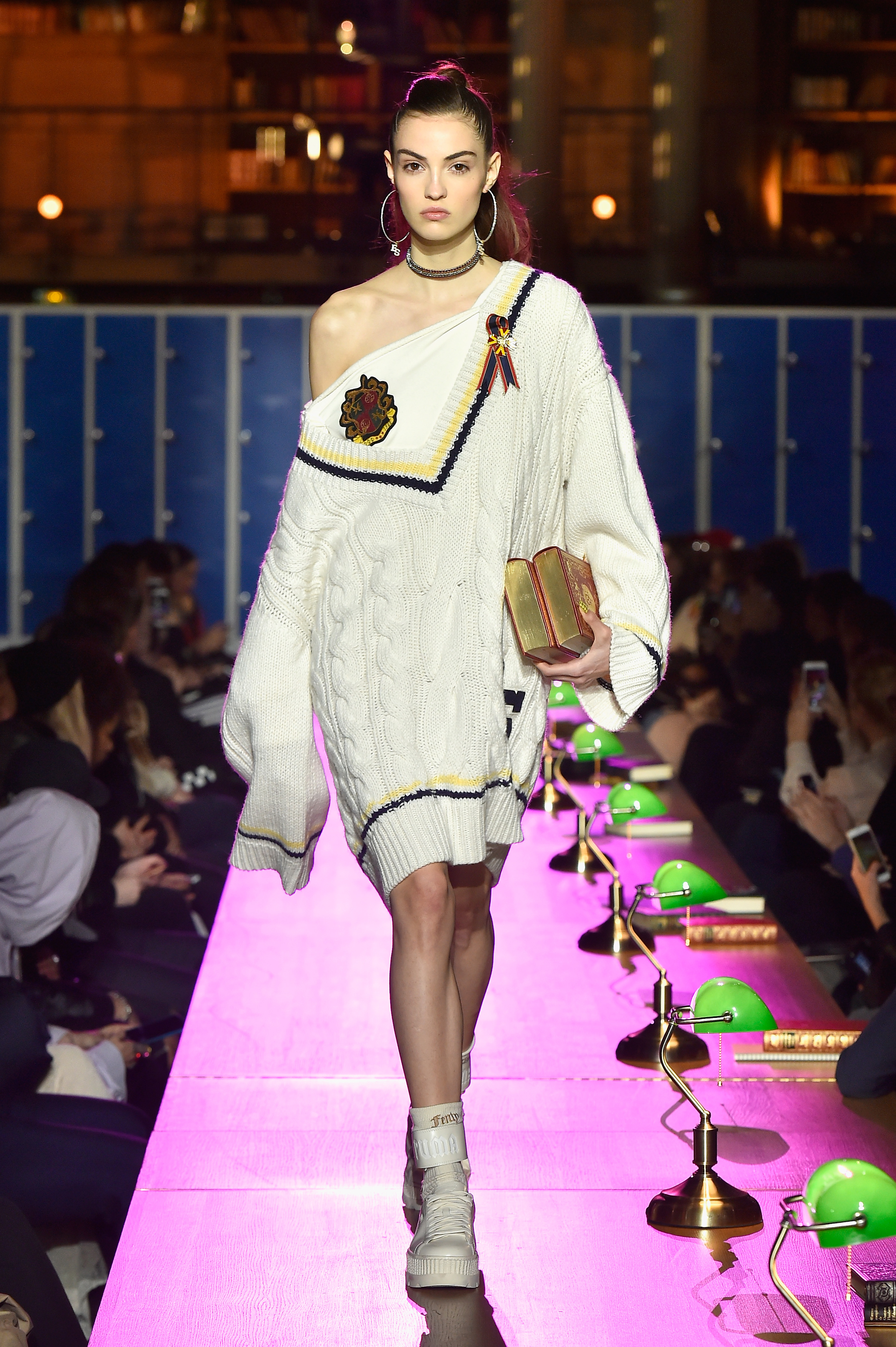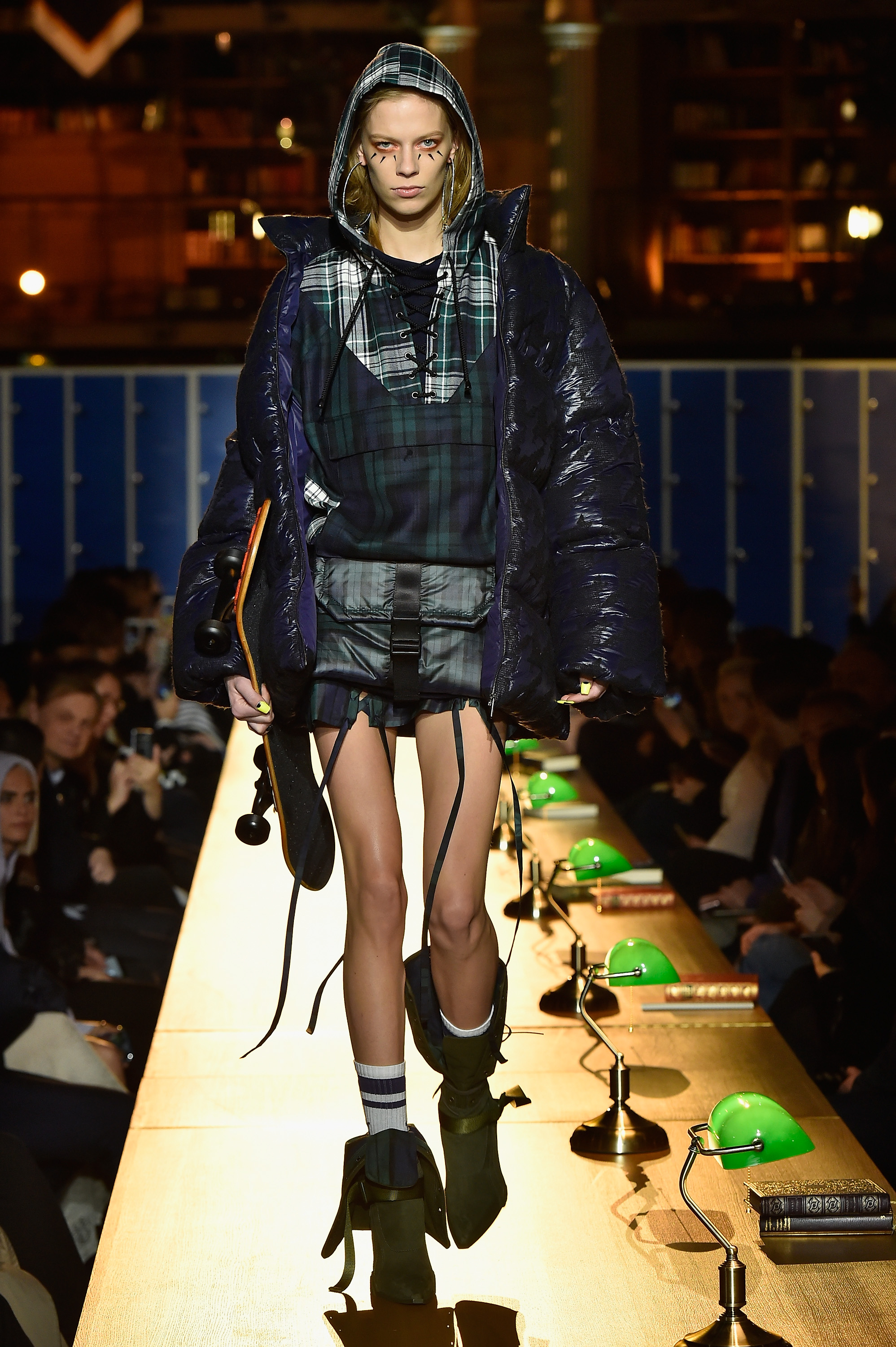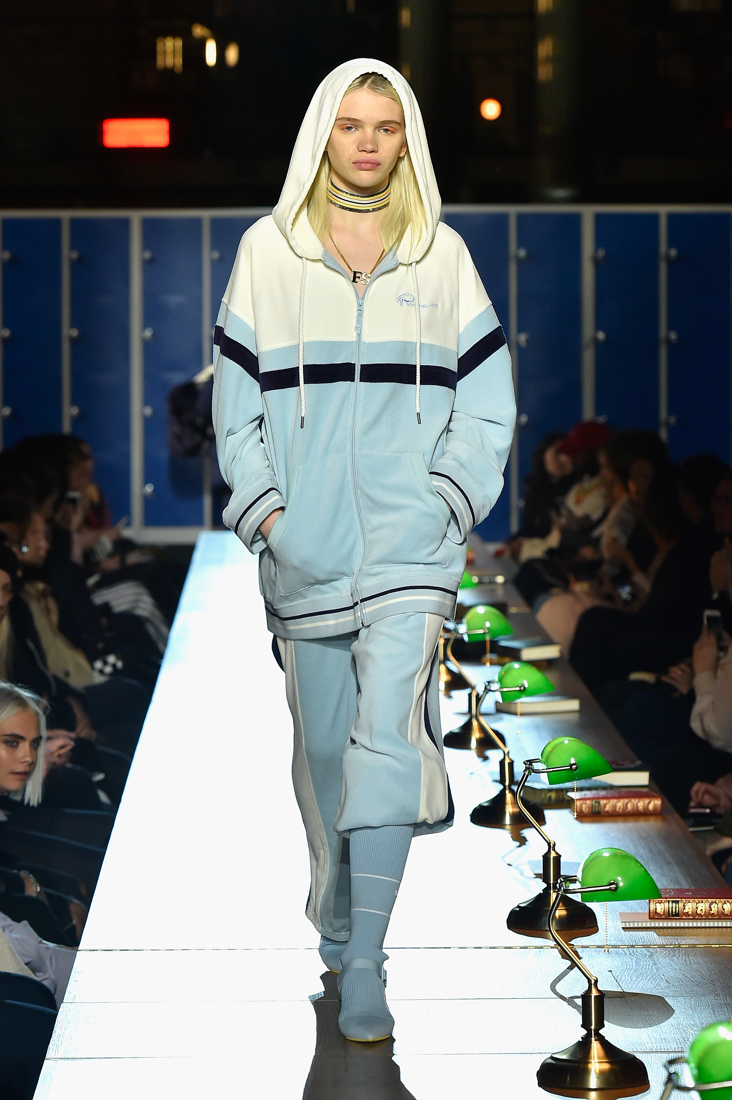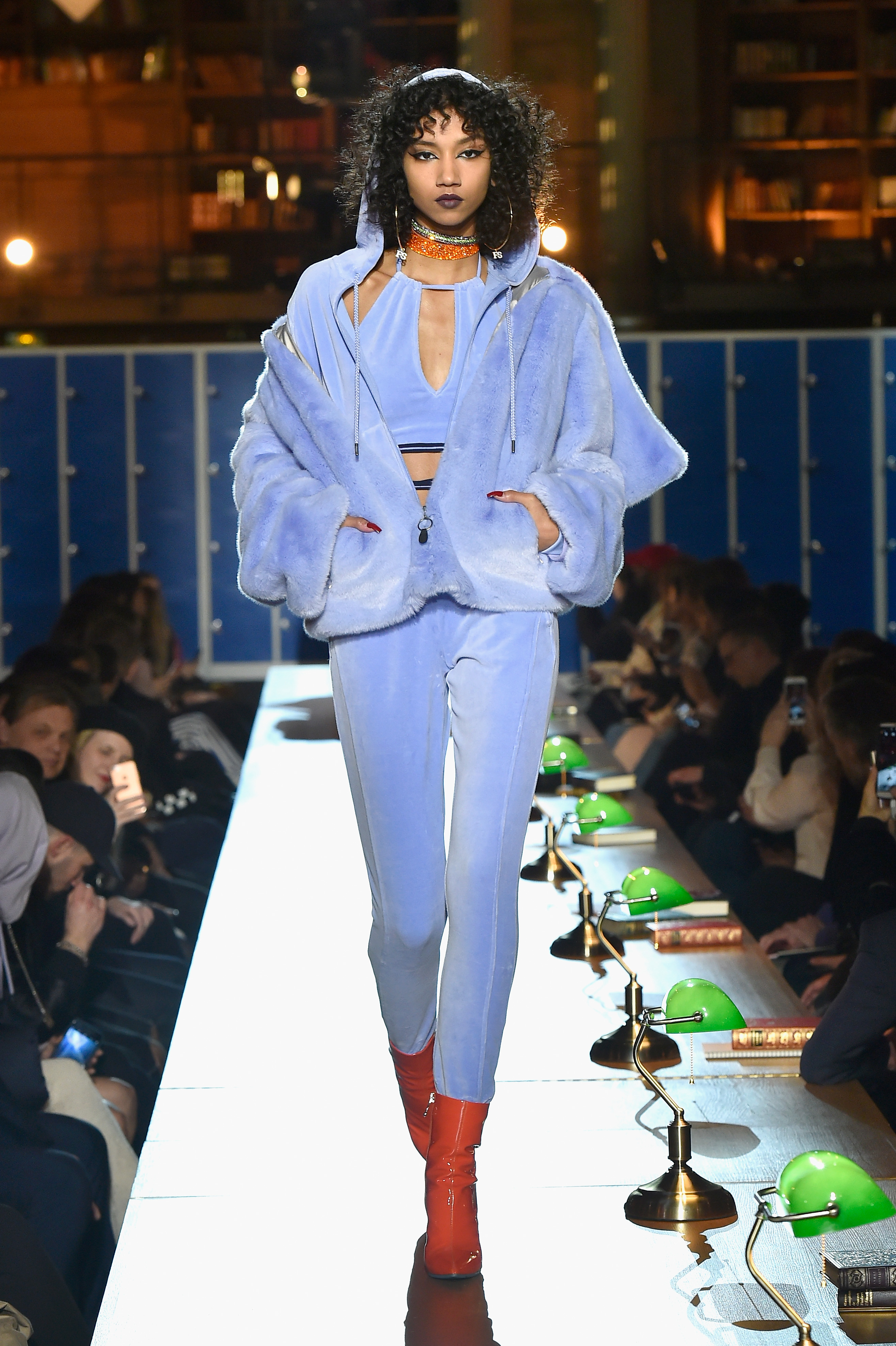 Le public a été replongé dans ses années lycée et universitaires. Pulls à larges mailles tricotés main et aux motifs écossais, pulls chenille PUMA, ribambelle de robes et de pulls ornés du F de l’université FENTY. Cette saison, place aux vêtements d’extérieur de toutes tailles et de toutes formes avec une vaste sélection de manteaux FENTYxPUMA en faux agneau, fausse fourrure, ultra-suede et nylon technique. Une fois de plus, Rihanna a révisé les lignes traditionnellement rigides du sport en insufflant une nouvelle vie aux uniformes, survêtements, hauts et bas, avec des tissus de sport techniques et un esprit dans l’air du temps. Les jupes d’écolières sexy et les corsets façon pom-pom girl ont attiré tous les regards dans le public. Se prendre une heure de colle n’a jamais été aussi tentant.
