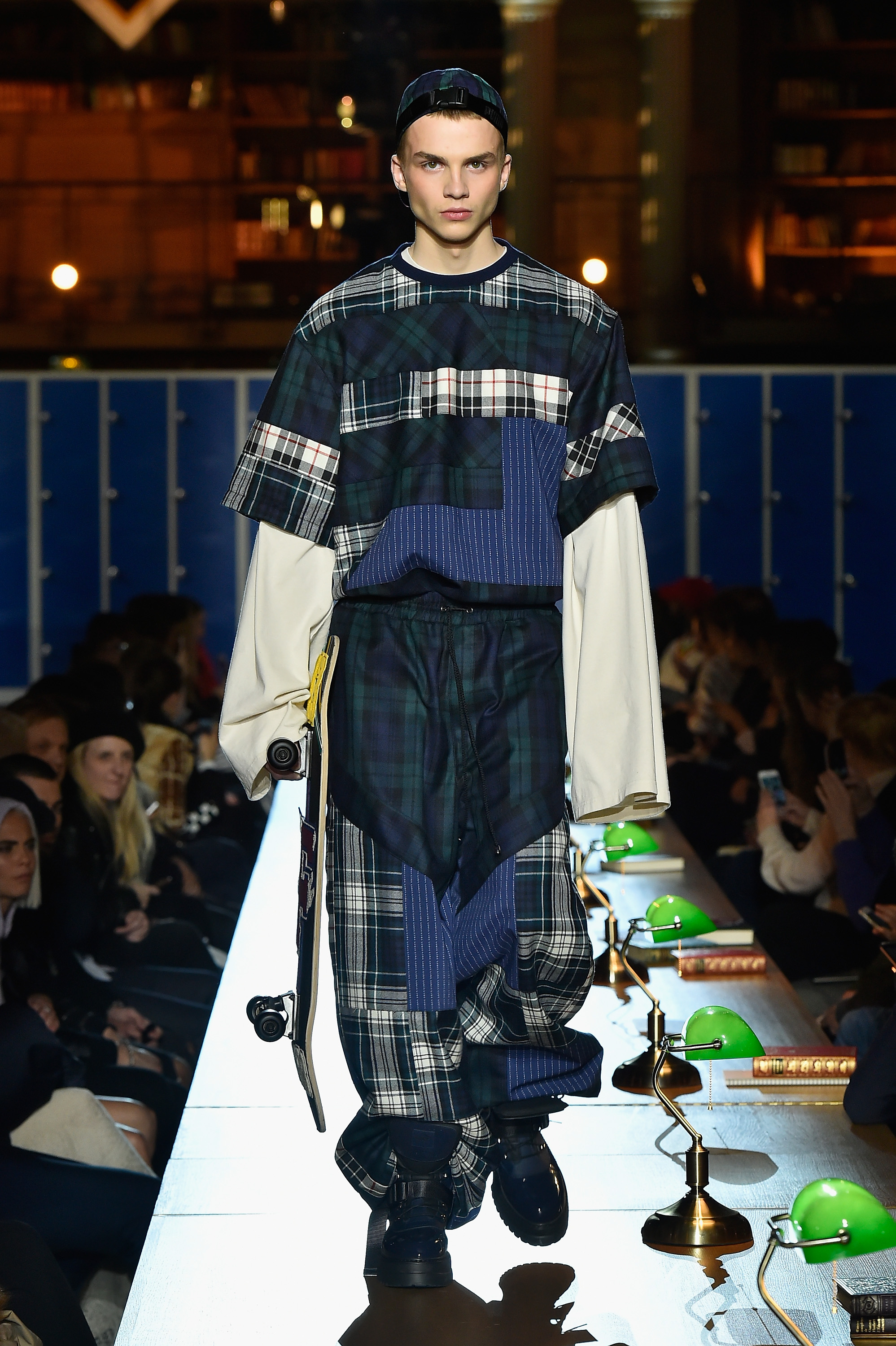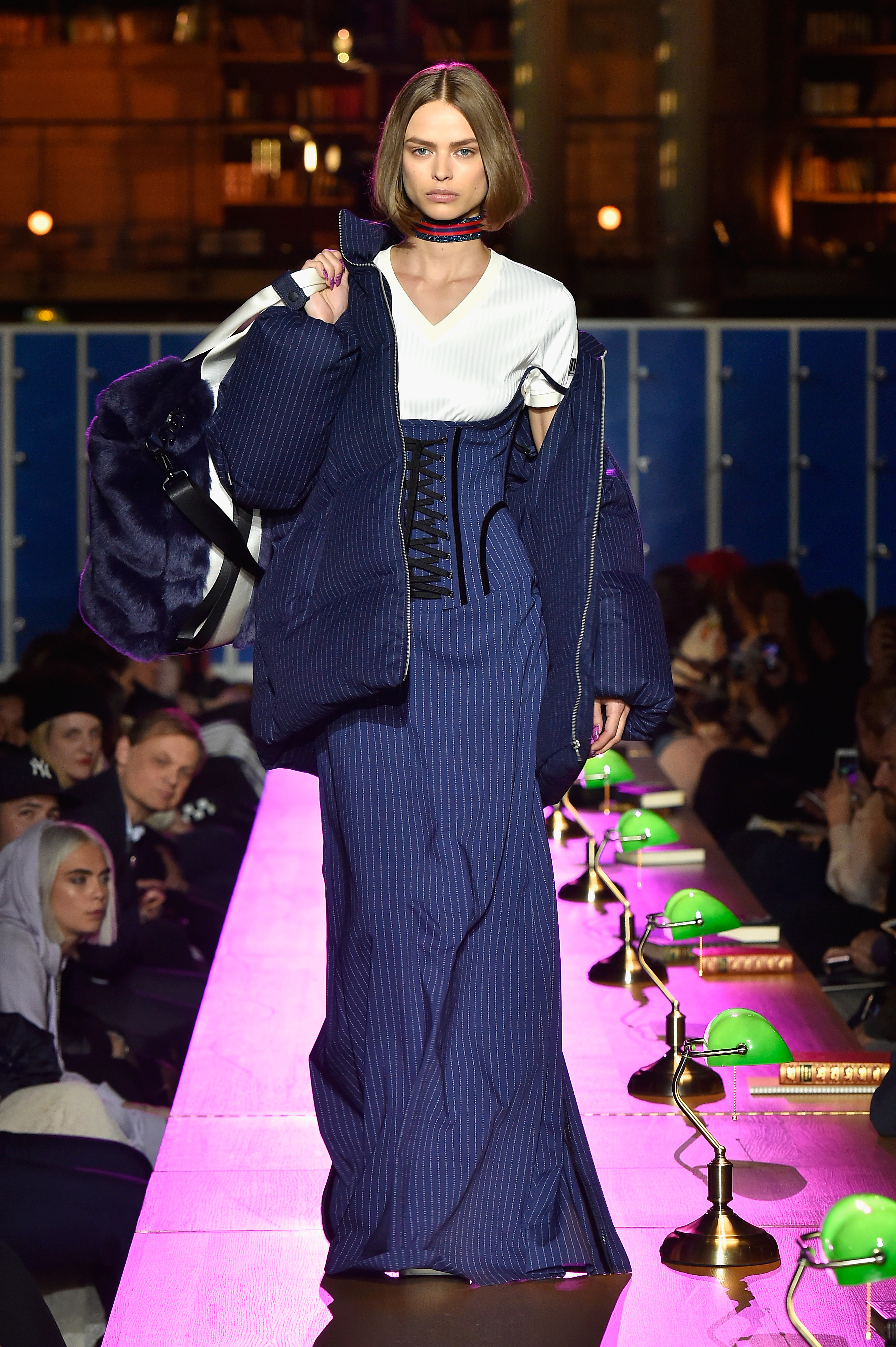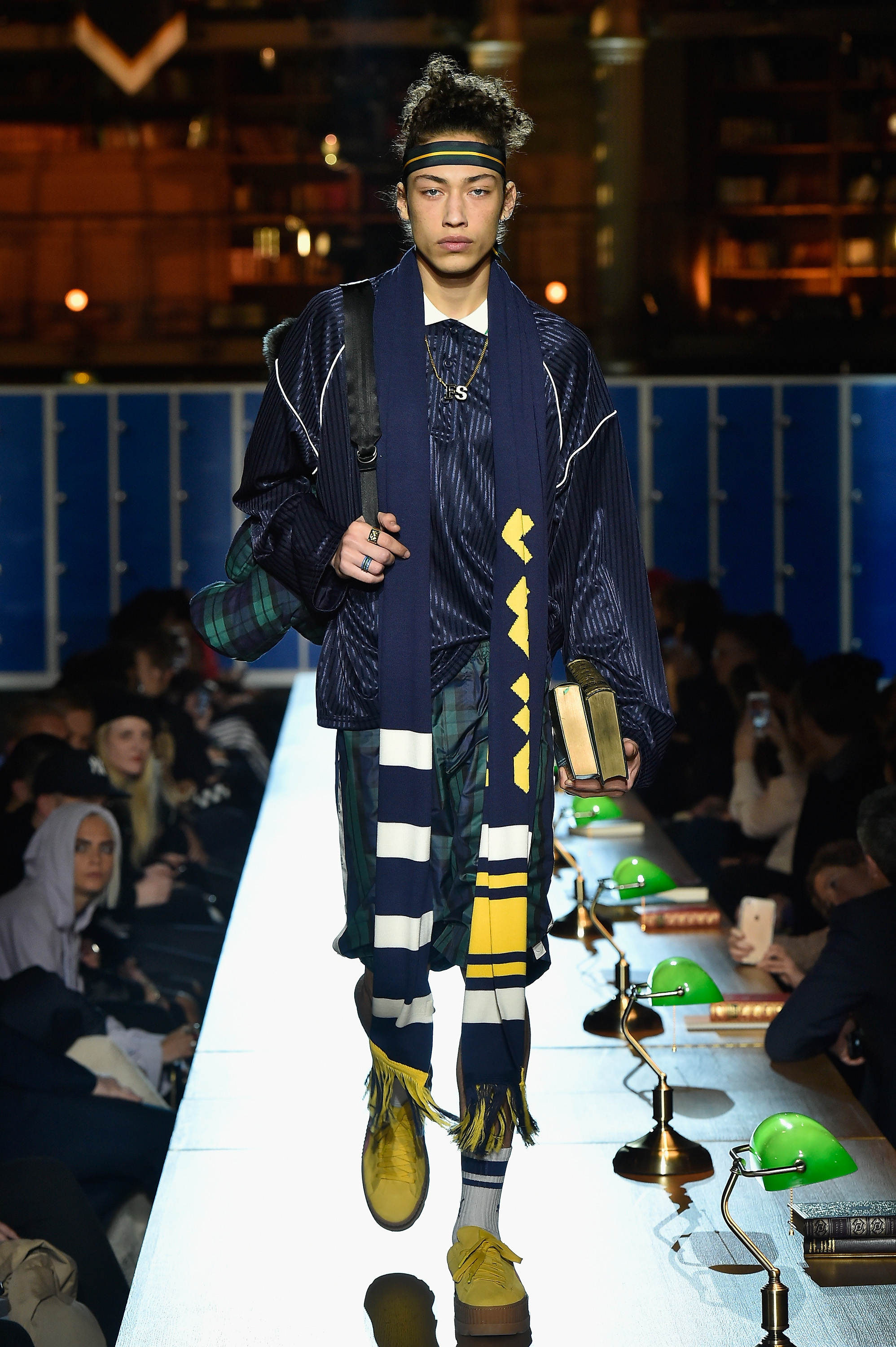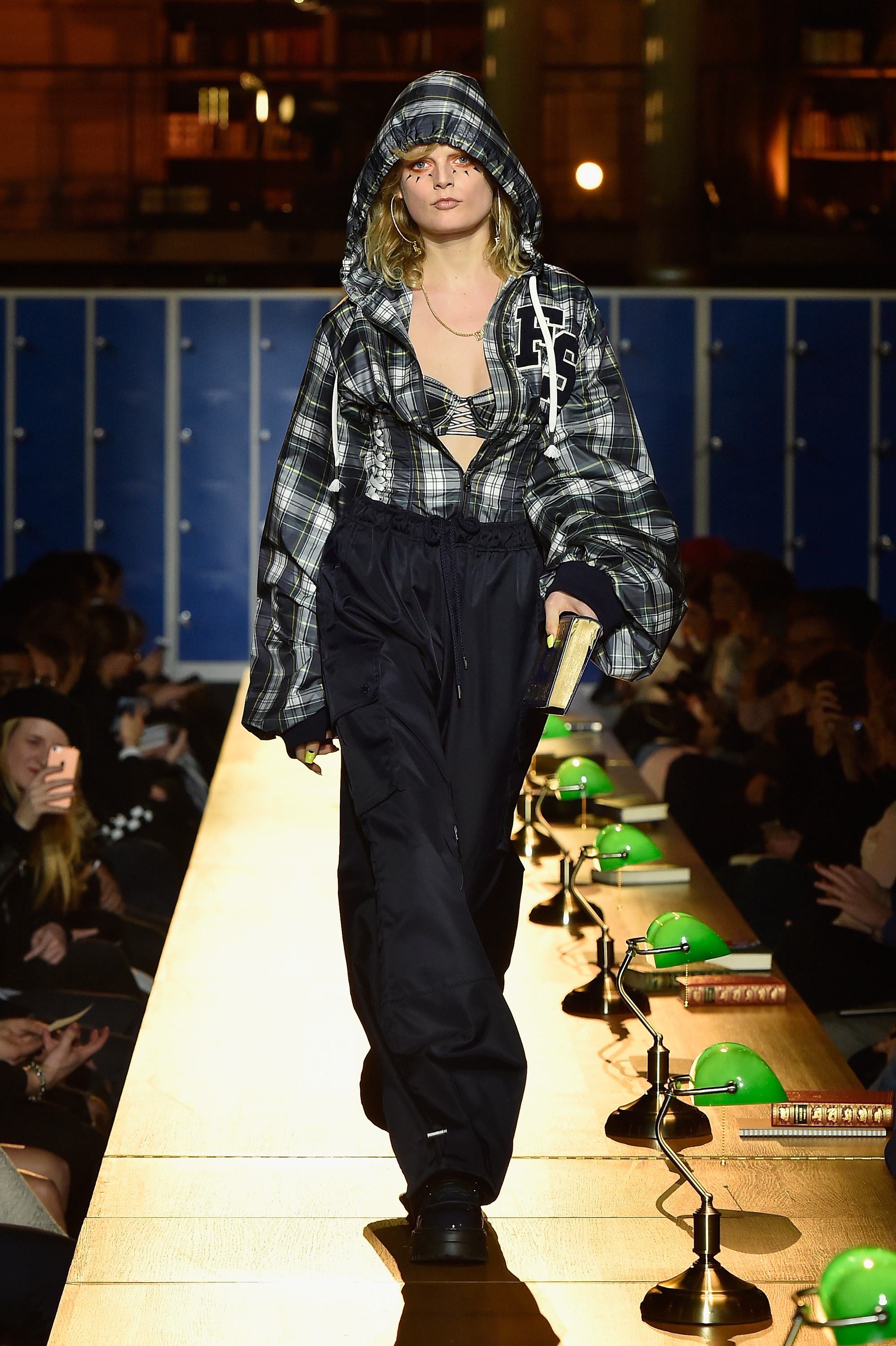 La fameuse PUMA Creeper a été revisitée avec des semelles compensées et des straps de cheville. Nouveaux talons, chaussures à semelles compensées translucides, bottes en caoutchouc, jambières et cuissardes ne manqueront pas d’impressionner le corps étudiant. Sacs peluche XXL, chapeaux et accessoires d’inspiration duvet, trousses de toilette et pochettes ont été vus au bras des mannequins, réchauffés par une sélection de chapkas chaudes et stylées, casquettes, cagoules, capuches, bonnets, bandanas et écharpes pour recrues de prestige. Pas question de ne pas être libre de ses mouvements, mais oui aux cravates en soie et ras du cou qui semblent taillés dans une veste de sport.