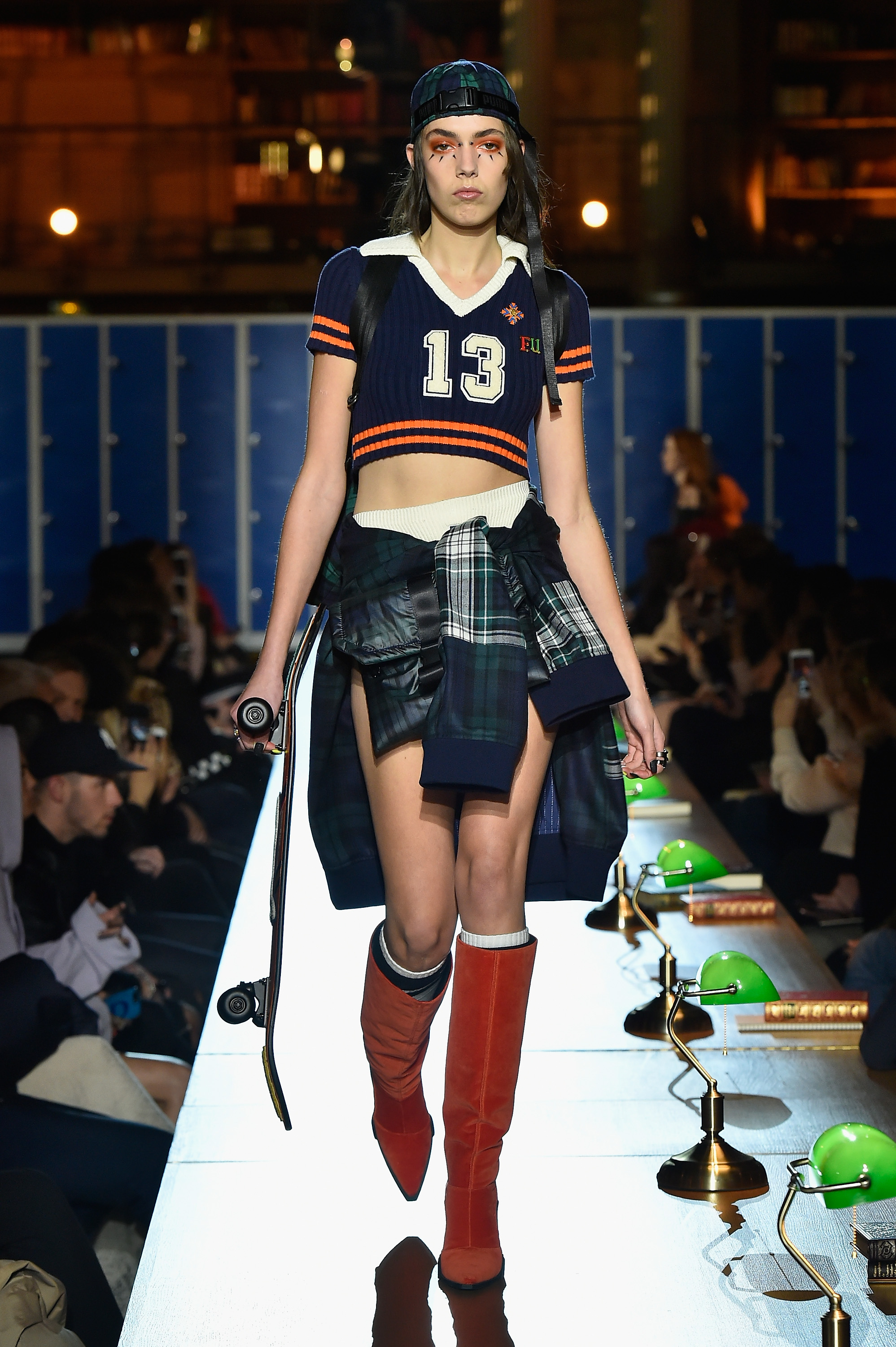 Au beau milieu des rayons de la Bibliothèque Nationale de France, Rihanna et PUMA ont donné vie aux muses de leur collection : les groupes et « les bandes » classiques des lycées et universités américaines, jeunes nerds, athlètes, skaters, preppies, goths, sans oublier, bien sûr, les bad girls. Les mannequins ont conquis les lieux, prenant d’assaut les tables de la bibliothèque et se penchant aux balcons. La collection, fidèle à l’esprit XXL chère à la collab’ FENTYxPUMA, regorge de modèles sexy et inattendus, avec des créations qui font plier les codes du genre et des tenues d’une audace folle, aux antipodes de tout esprit scolaire. Piochant son inspiration dans les tenues des gymnases et des vestiaires chics, la saison Automne/Hiver est composée de vestes d’entraîneurs, de maillots de foot transformés en robes, de jupes d’uniforme, de survêtements en velours et en polyester, de combis, de polos cropped et XXL, de T-shirts de baseball et bien plus encore. Avec son graphisme pile dans l’esprit universitaire et lycéen, FENTY livre une classe 2017 de haut vol.