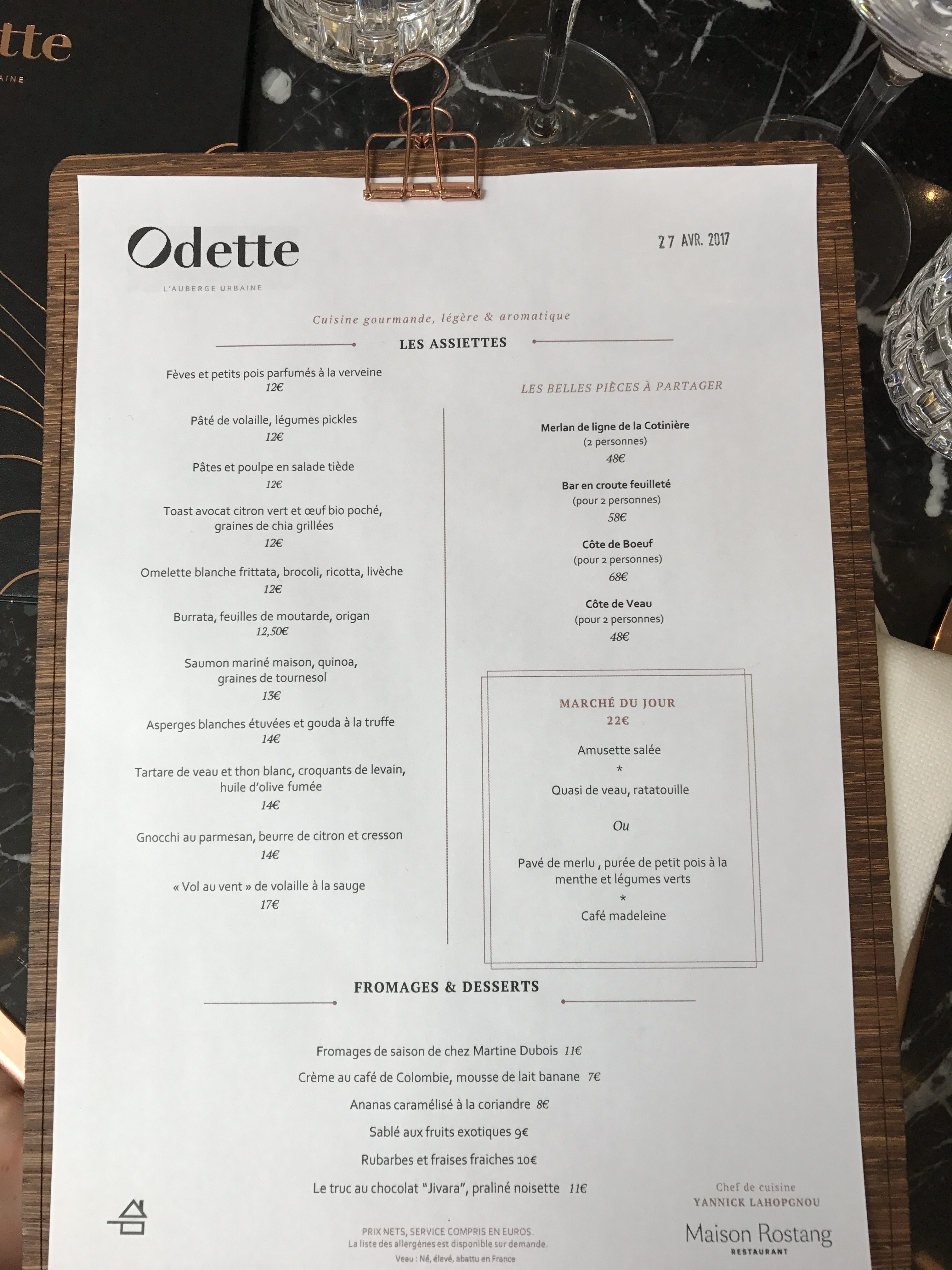 Au cœur de Paris, l’Auberge se réinvente sous les traits de Caroline & Sophie Rostang 6ème génération de restaurateurs. Bien dans son époque, Odette est un lieu de vie à part entière où l’on peut venir s’attabler du petit-déjeuner au dîner, prendre un verre, grignoter, savourer un déjeuner professionnel comme profiter d’un dîner entre amis. Avec sa carte gourmande et aromatique, Odette accueille voyageurs et visiteurs le temps d’une halte savoureuse. Une vraie belle adresse à quelques pas des Halles.