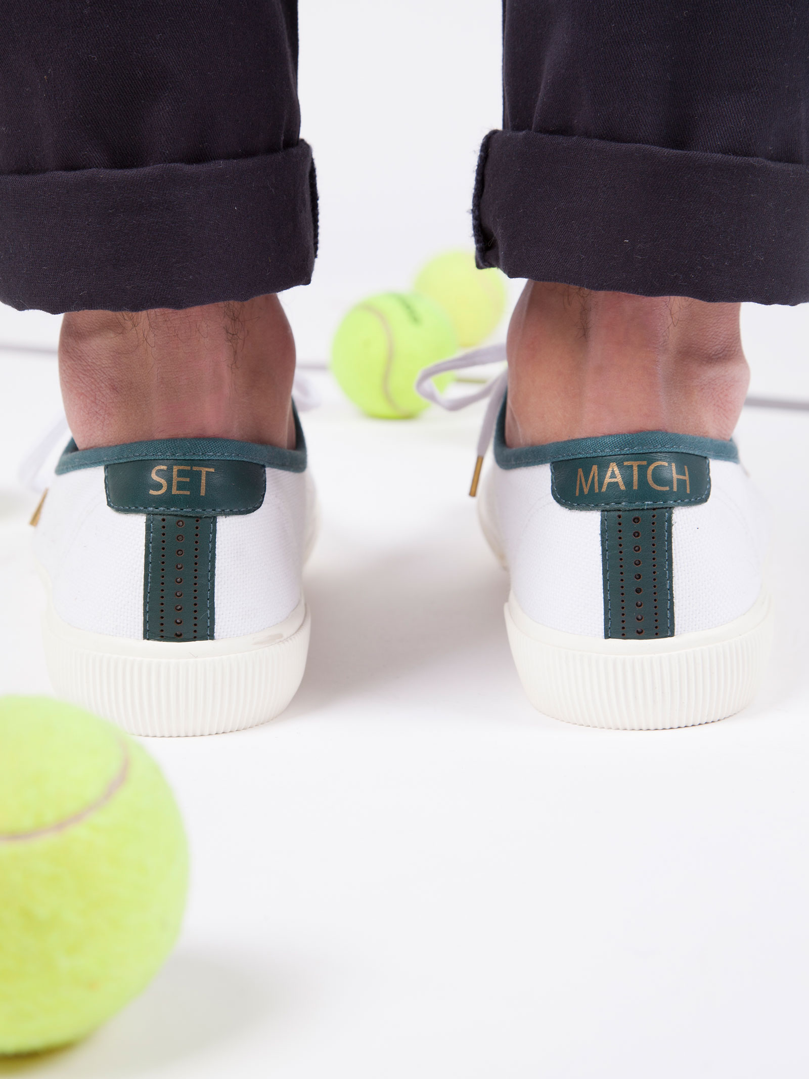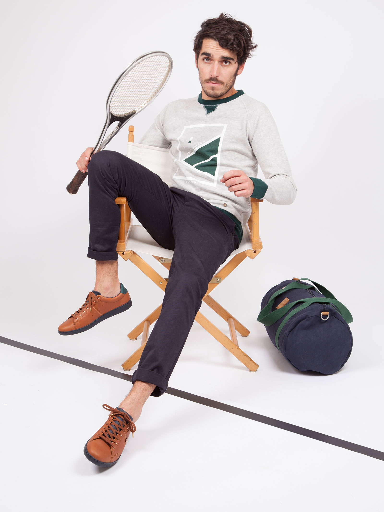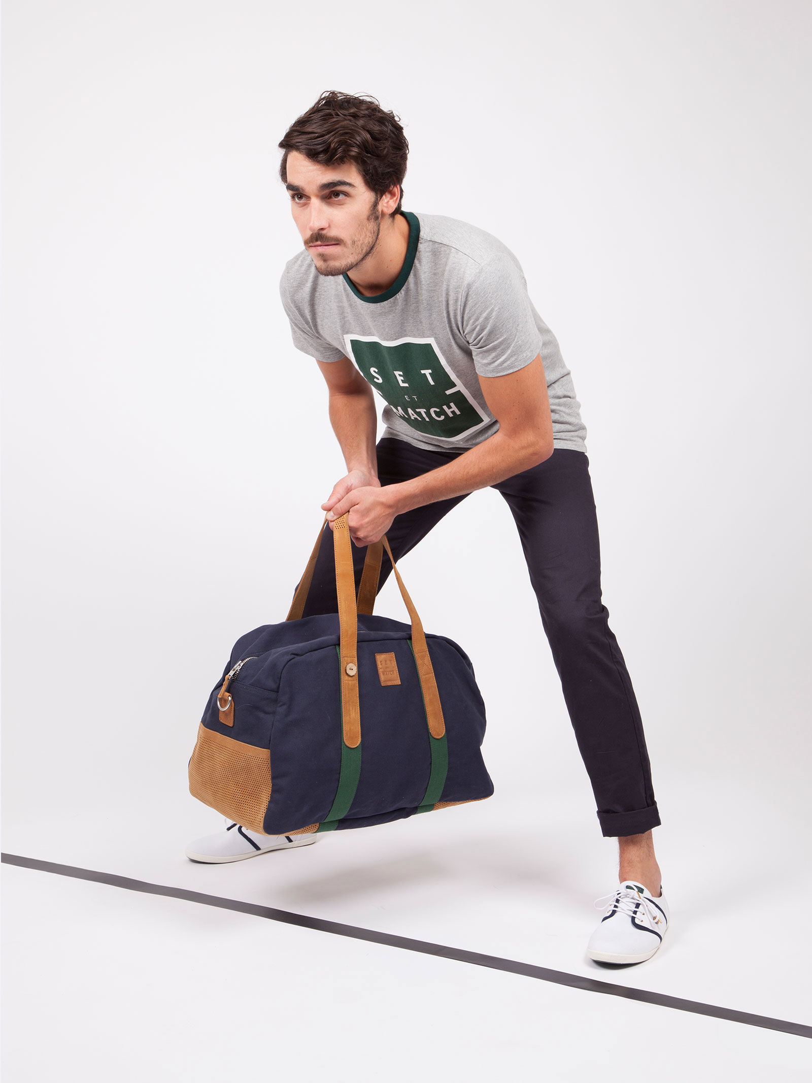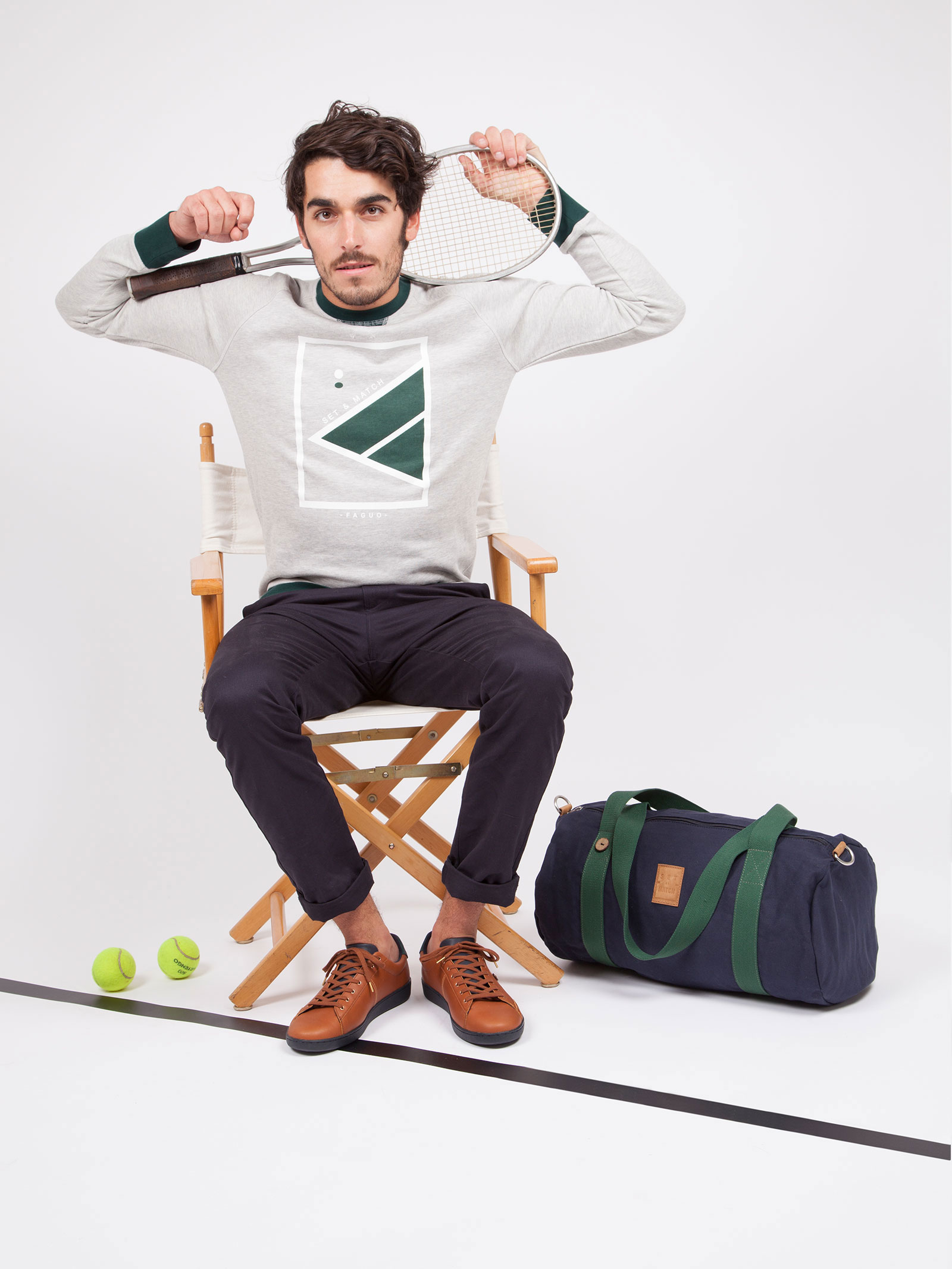 Cette collection propose quatre paires de baskets dotées de l’inscription SET & MATCH sur leurs renforts arrière. La gamme de bagagerie est déclinée en trois sacs au style sportswear chic pour voyager entre les courts. Un tshirt et un sweat gris chiné viennent compléter ce panel.