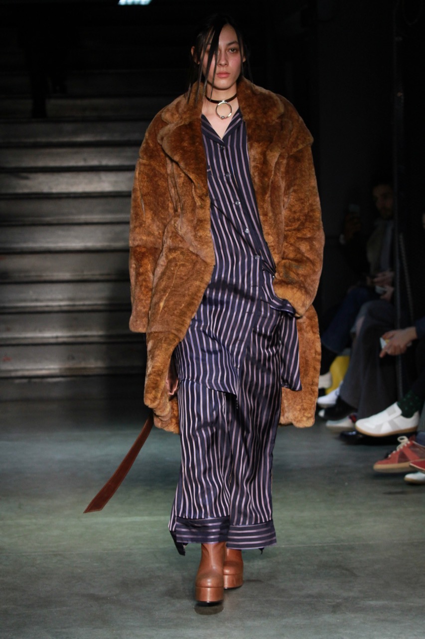 Les pièces femme de CHRISTIAN DADA évoluent vers des kilt écossais déconstruits et des vestes courtes en peau de mouton.
