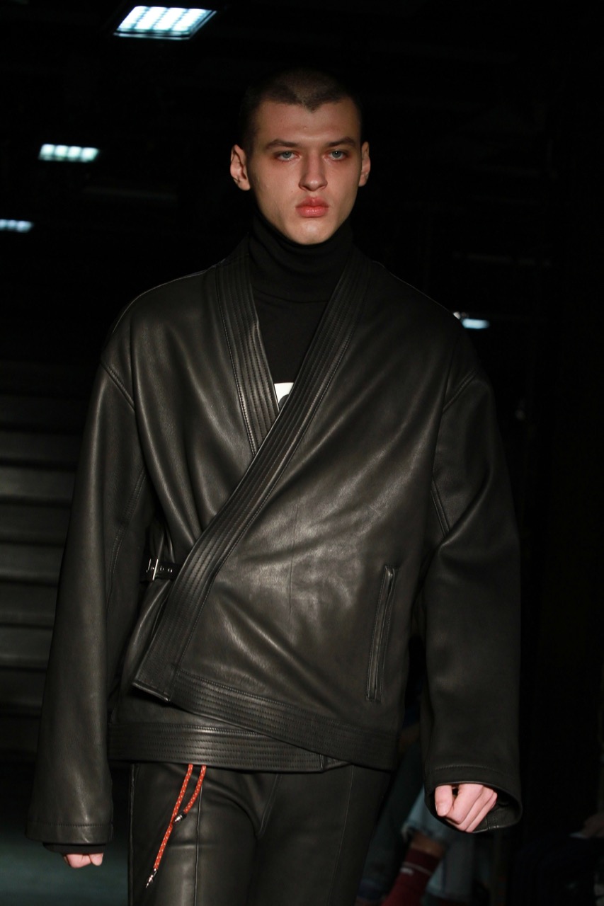 Le Jimbei, vêtements d’été traditionnel, est proposé en cuir. Des motifs écossais sont imprimés sur des peaux de mouton, hommages aux uniformes d’écoliers, vus à travers le prisme nippon d’un artisanat précis, imprégné de la philosophie Wabi-Sabi.