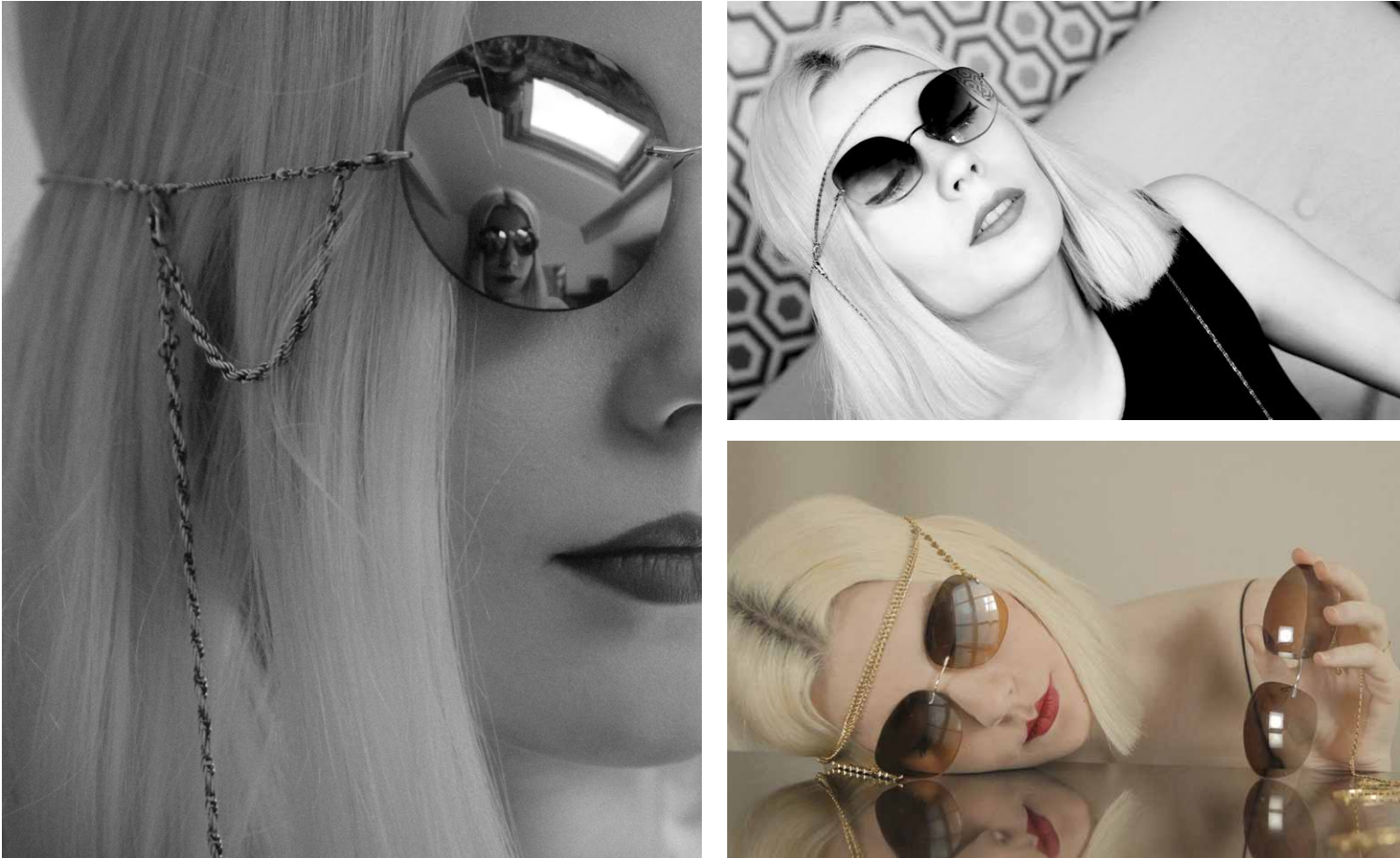 Cette ligne de lunettes dont les branches ont été remplacées par des chaines se portent comme des bijoux .