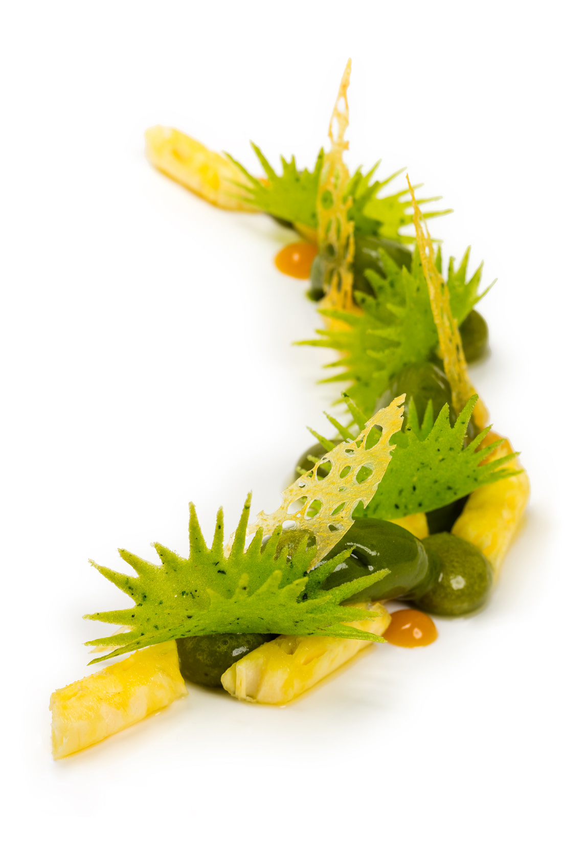 En fin de repas arrive le clou du spectacle par Pascal Hainigue (ancien sous-Chef Pâtissier de la table triplement étoilée de Christian Lesquer au Georges V). Côté saveurs, le jeune chef ne laisse pas de repos à nos papilles et va étonner là ou on ne l’attend pas avec des compositions design et détonantes. Laissez-vous séduire par la composition shiso et ananas ou la délicate construction de chocolat, passion et croquants de sésame: de la haute pâtisserie française.