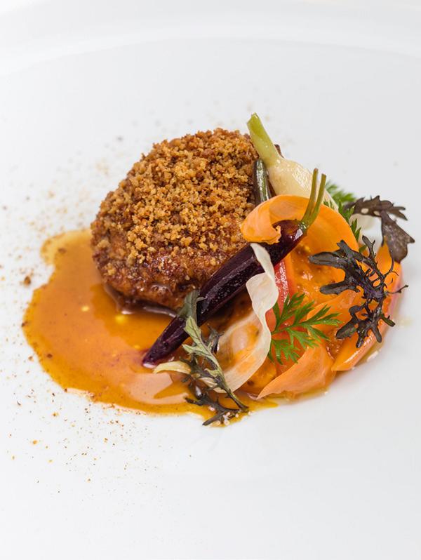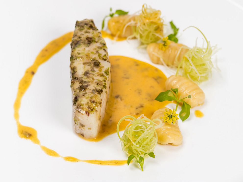 Le résultat ? Des plats aux saveurs et aux textures foudroyantes : céleri rave se transformant en une onctueuse carbonara délicatement truffée, ris de veau se parant d’un habit doré à la croustillance piquée de moutarde, bar de ligne paré champignons et de lard de Colonnata… plus que convainquant.