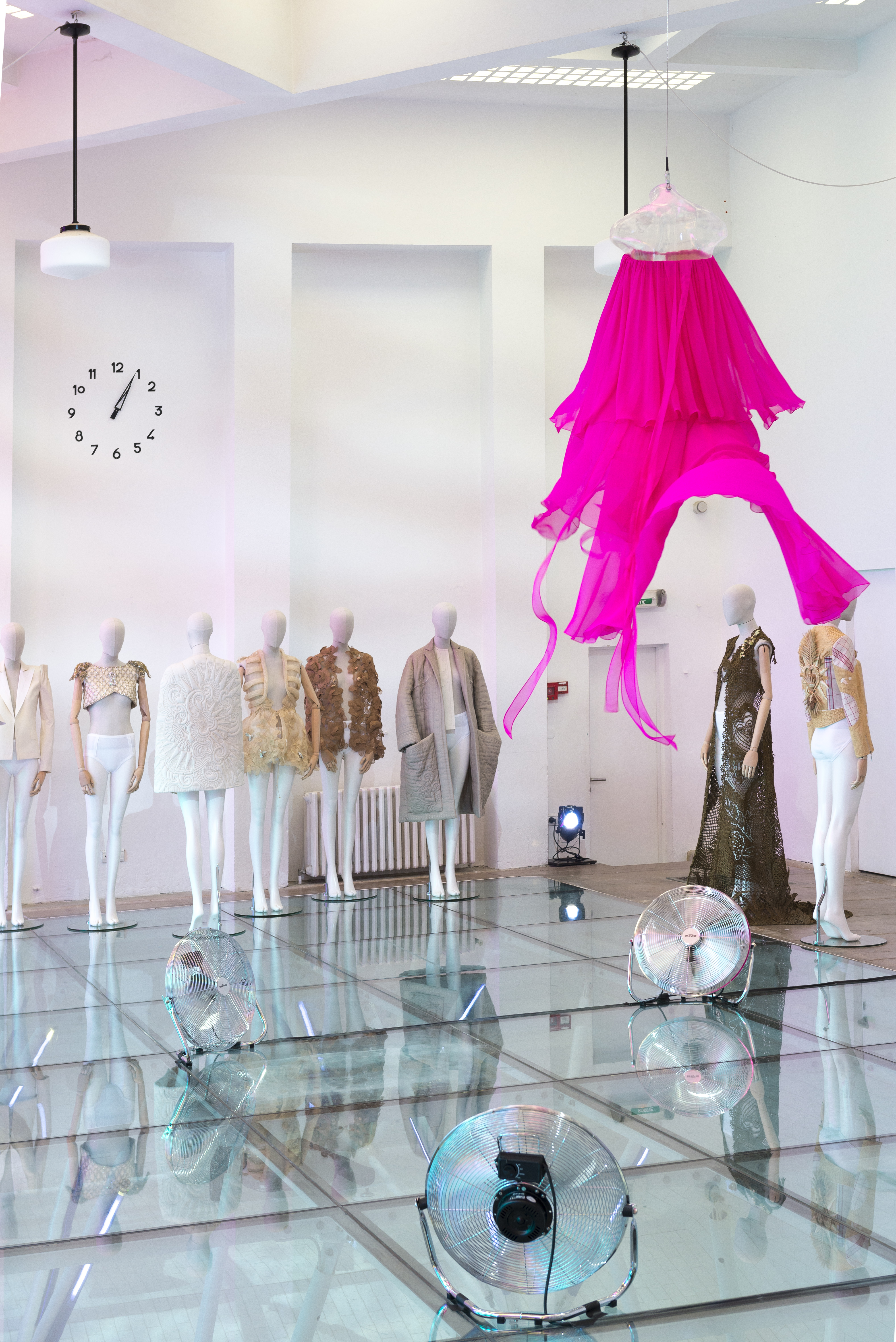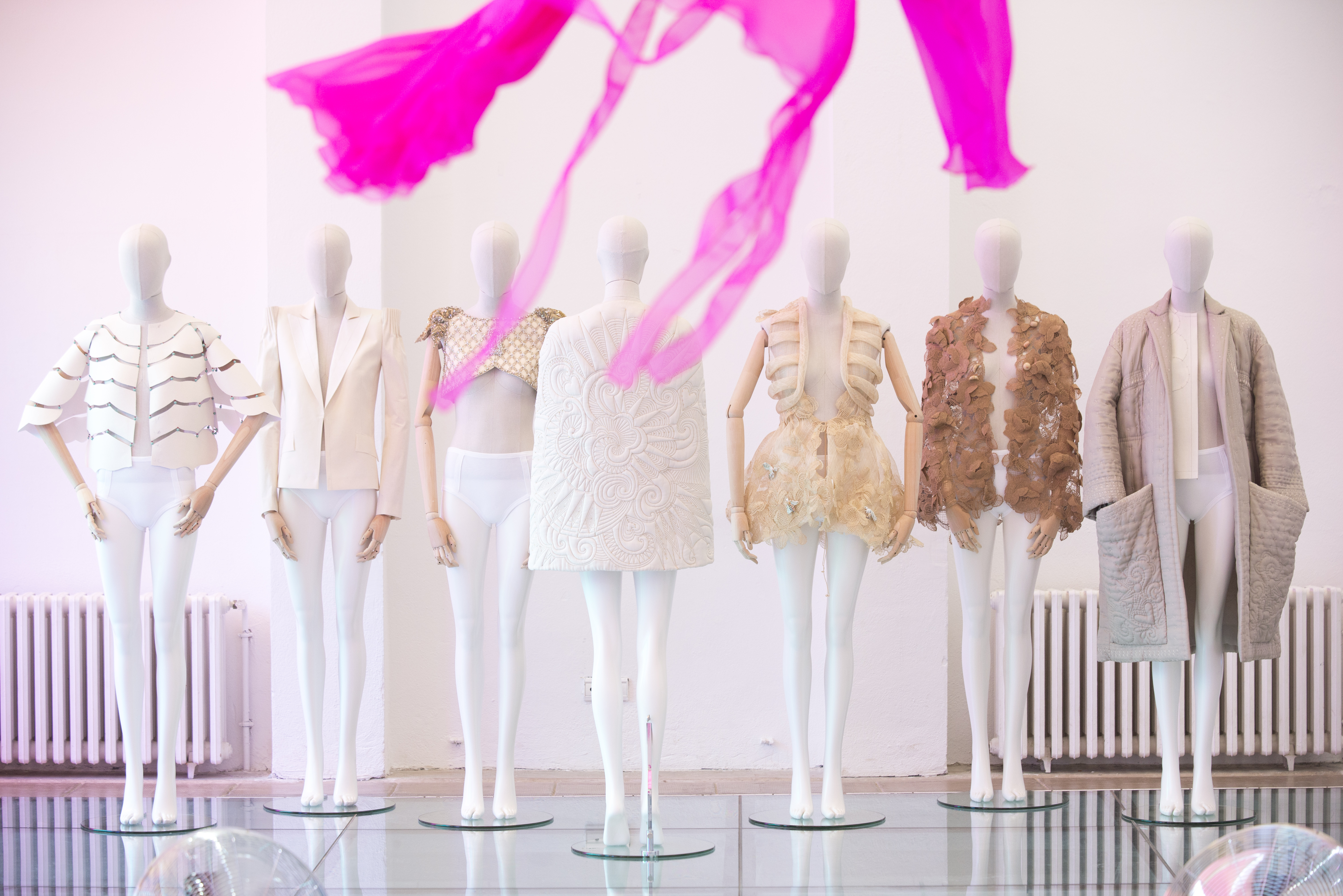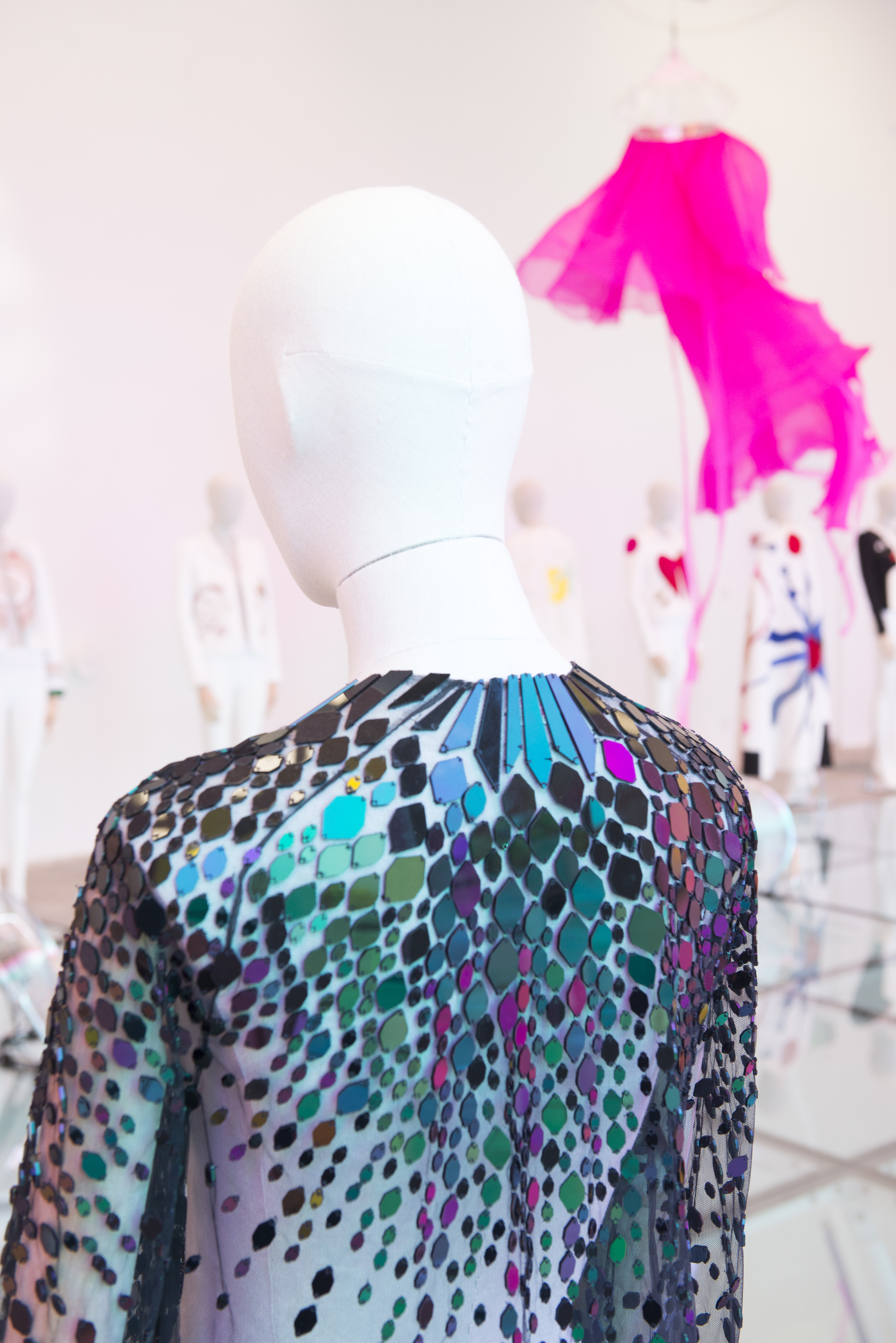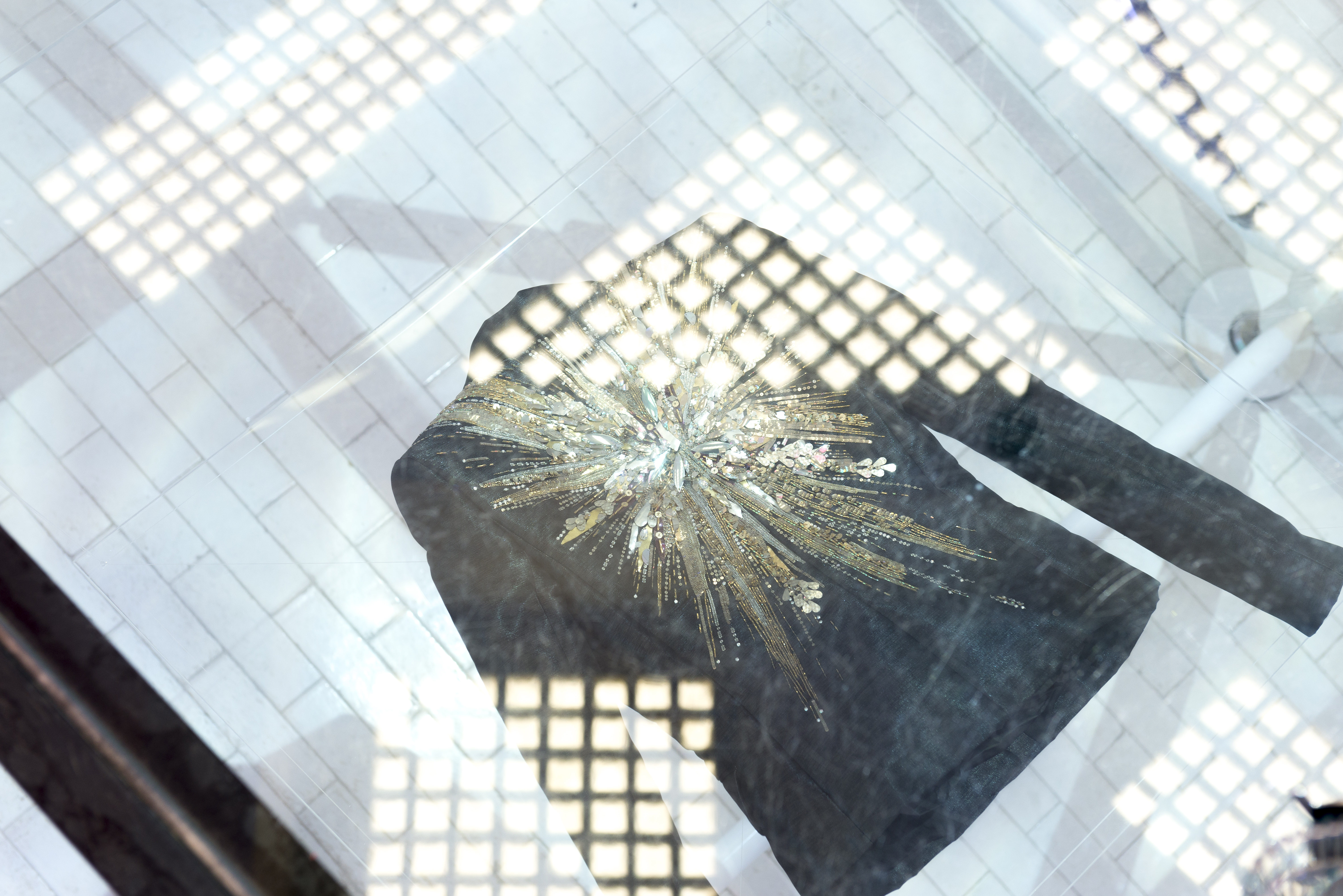 L’exposition présentent les créations de Bertrand Guyon, directeur du style de la Maison Schiaparelli, qui mettent en lumière ce jeu permanent entre féminin et masculin, rigueur et onirisme, élégance et allure. Concentré de narration et de savoir-faire où la vision esthétique et l’imagination ne sont rien sans la main experte de l’atelier tailleur dont le geste et l’esprit doivent totalement se fondre avec l’intention stylistique originelle, la veste Schiaparelli fusionne cet abscisse et cette ordonnée en une symbiose absolue.