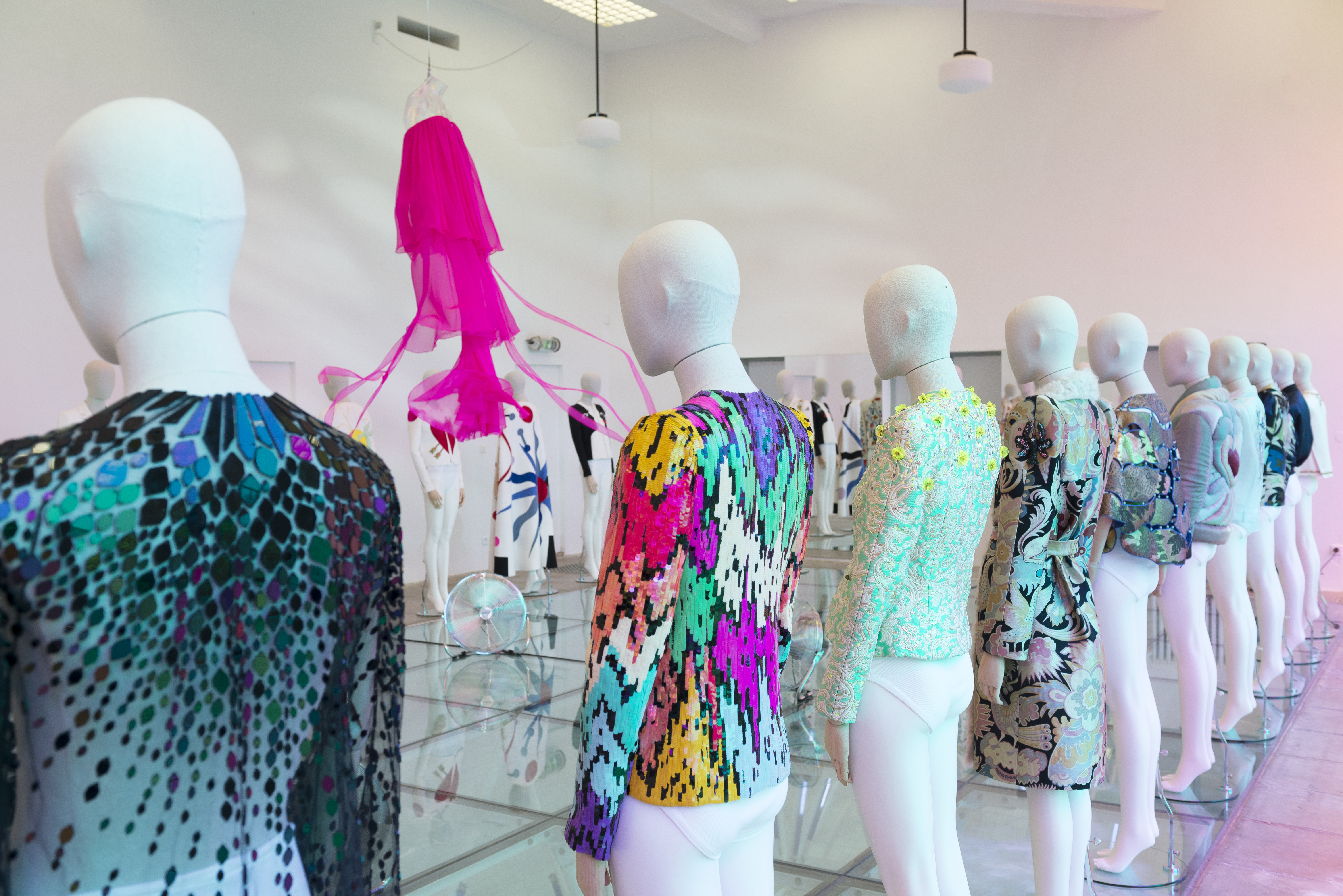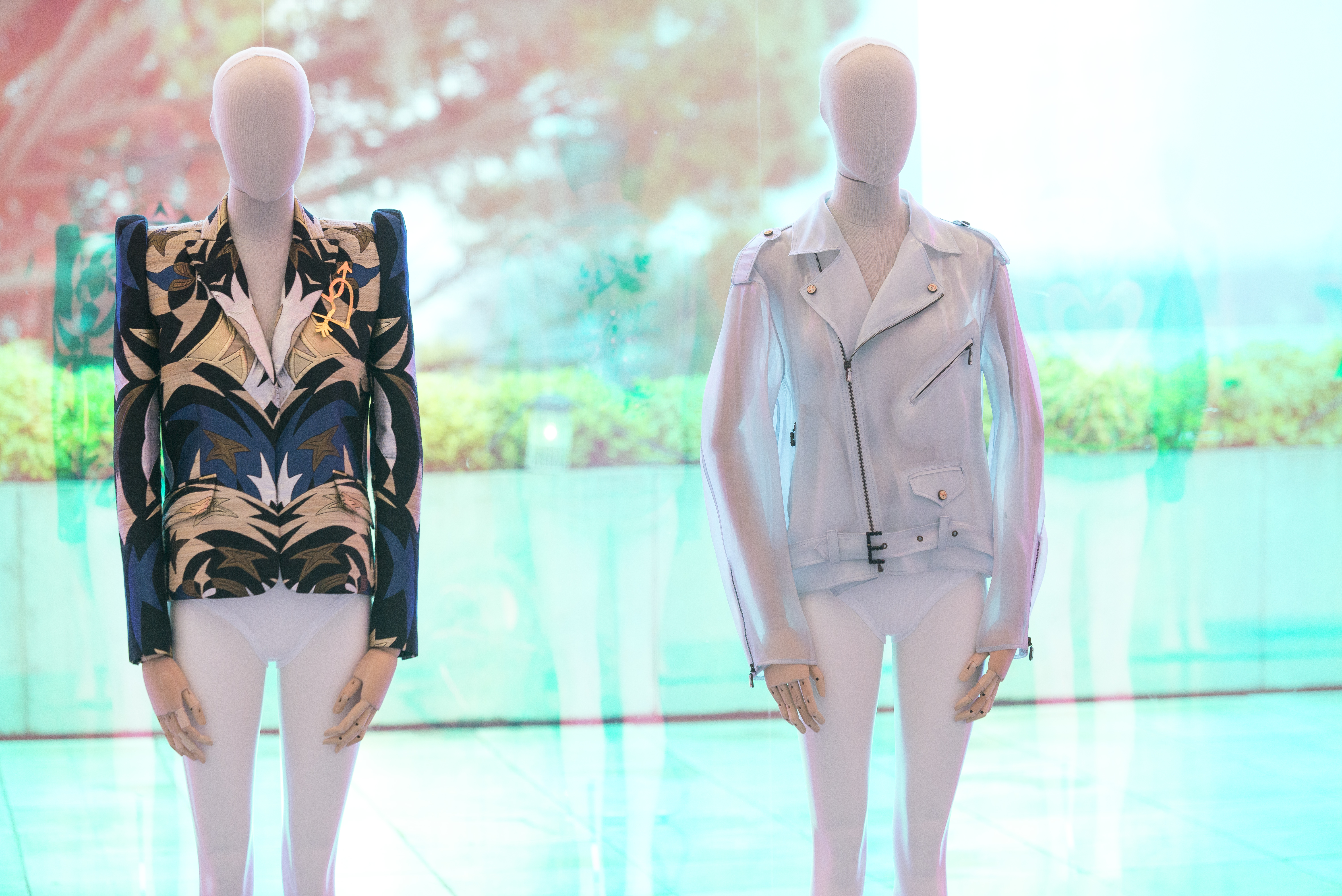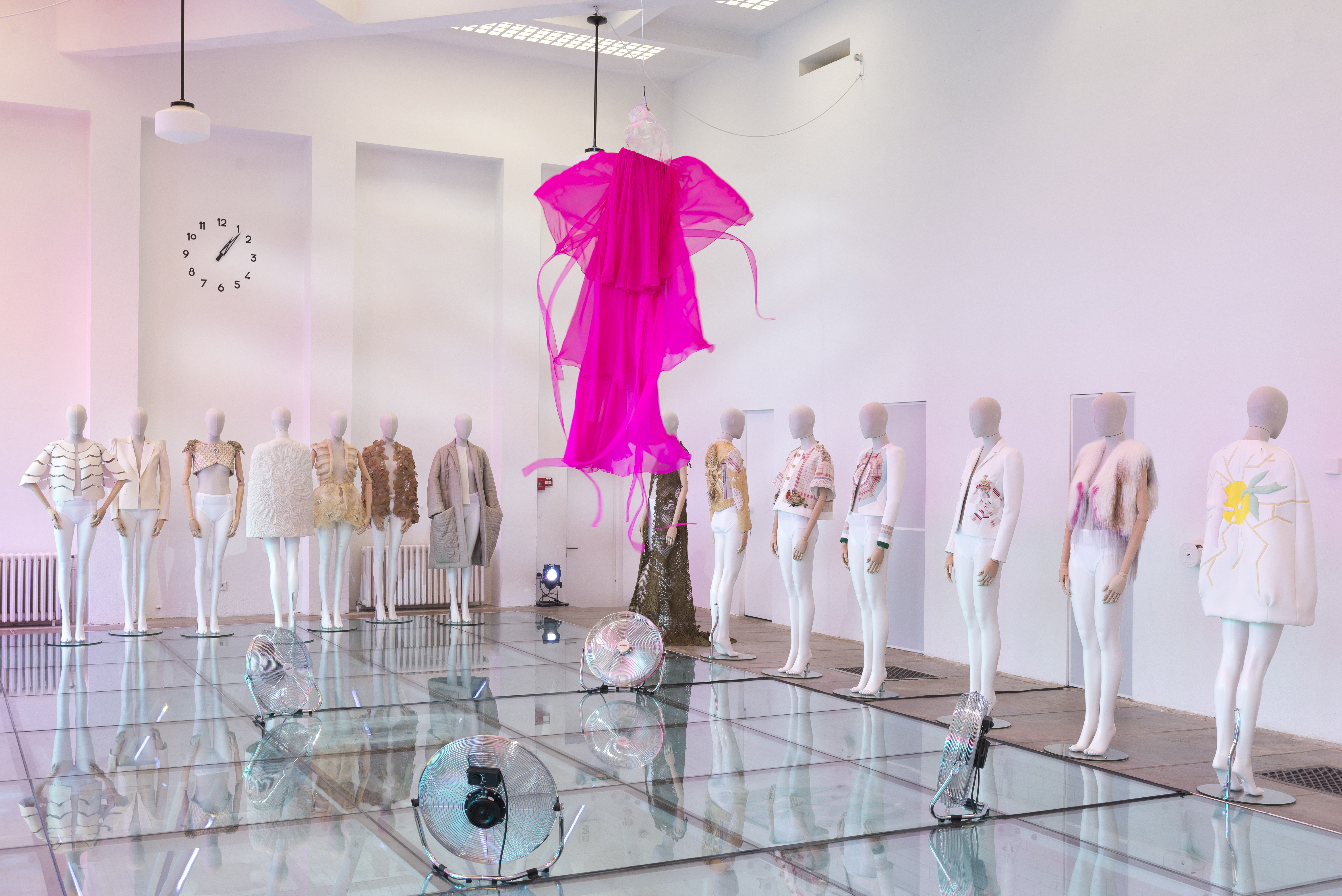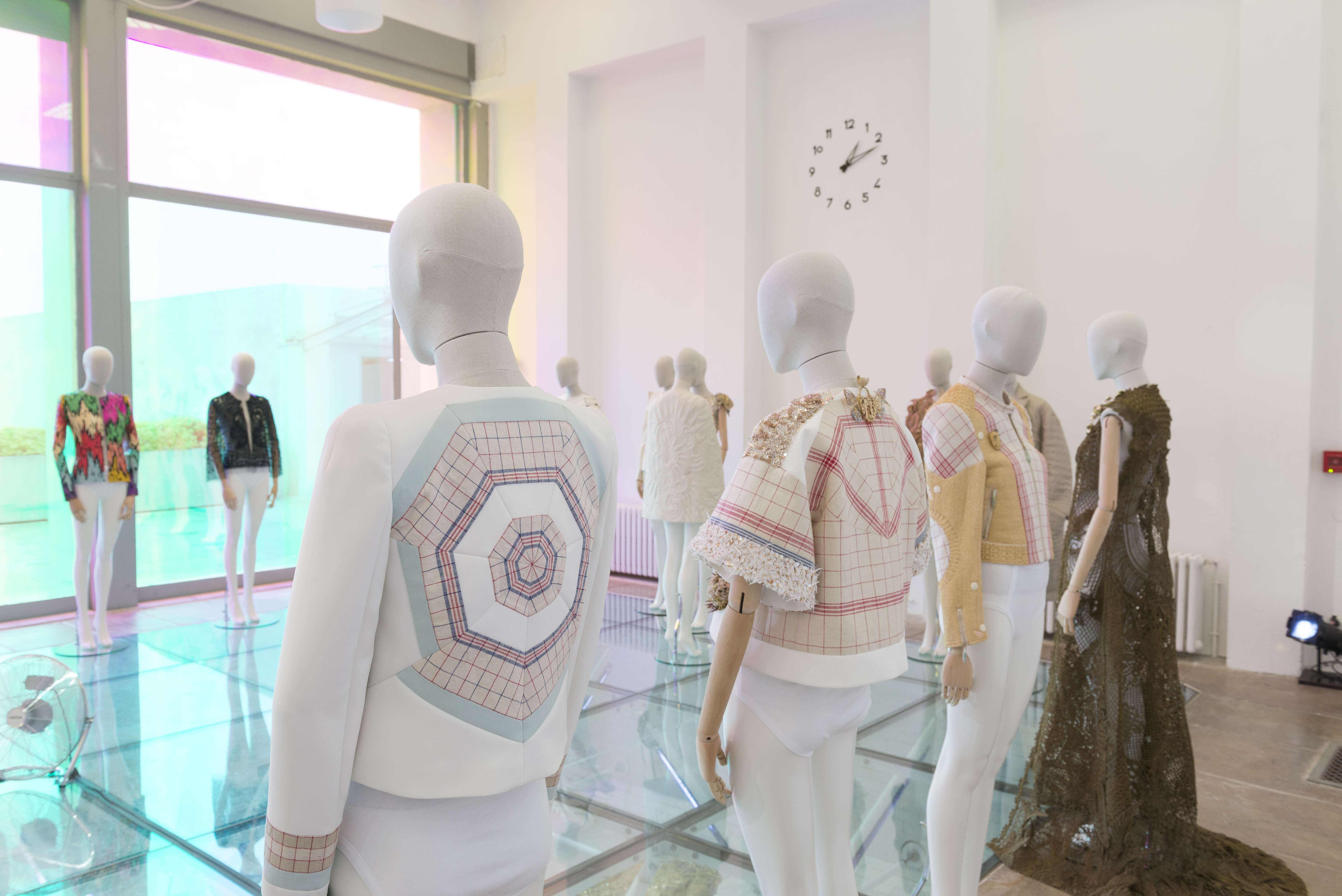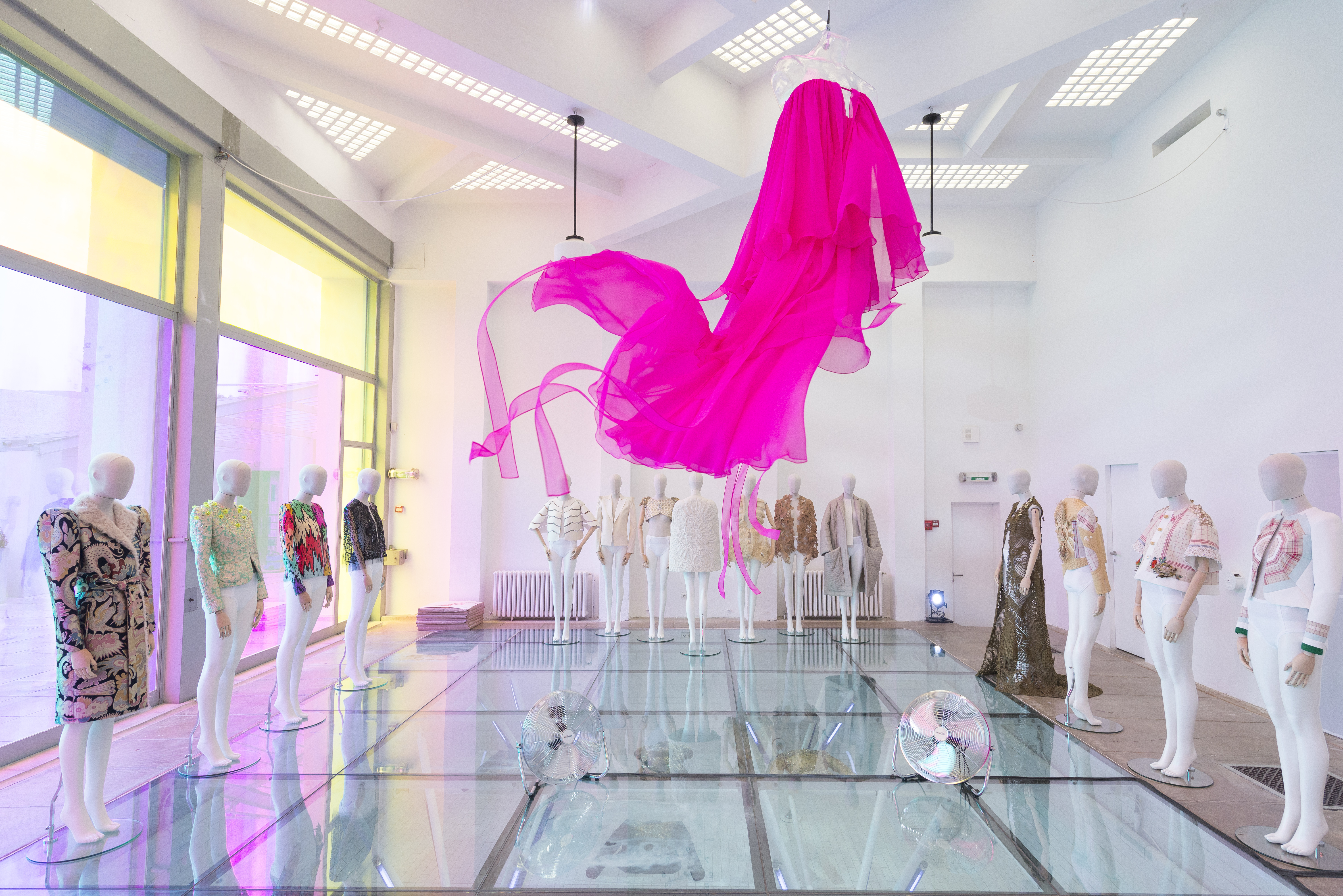 L’exposition présentent les créations de Bertrand Guyon, directeur du style de la Maison Schiaparelli, qui mettent en lumière ce jeu permanent entre féminin et masculin, rigueur et onirisme, élégance et allure. Concentré de narration et de savoir-faire où la vision esthétique et l’imagination ne sont rien sans la main experte de l’atelier tailleur dont le geste et l’esprit doivent totalement se fondre avec l’intention stylistique originelle, la veste Schiaparelli fusionne cet abscisse et cette ordonnée en une symbiose absolue.