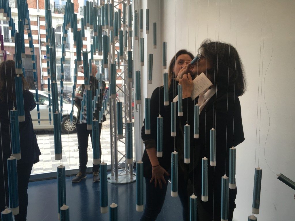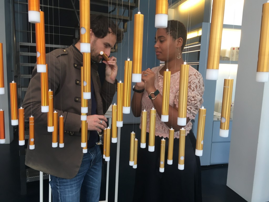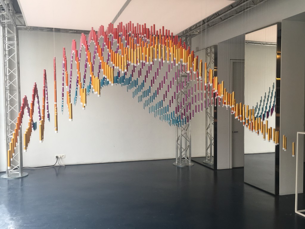 Rassemblées sous une voute artistique spectaculaire, toutes les senteurs sont encapsulées dans 752 tubes de couleur, créant un dégradé graphique et illustrant le passage d’une ville à l’autre. Mais rien de froid ou distant dans cette structure, Thalys reste fidèle à ses valeurs de convivialité et d’accueil en proposant aux visiteurs de deviner le parfum contenu dans chaque tube. Chaque tube porte en effet un numéro, qui fait référence à une adresse, représentative de la senteur en question. La correspondance numéro / adresse est ensuite révélée sur de grandes cartes de nos villes.