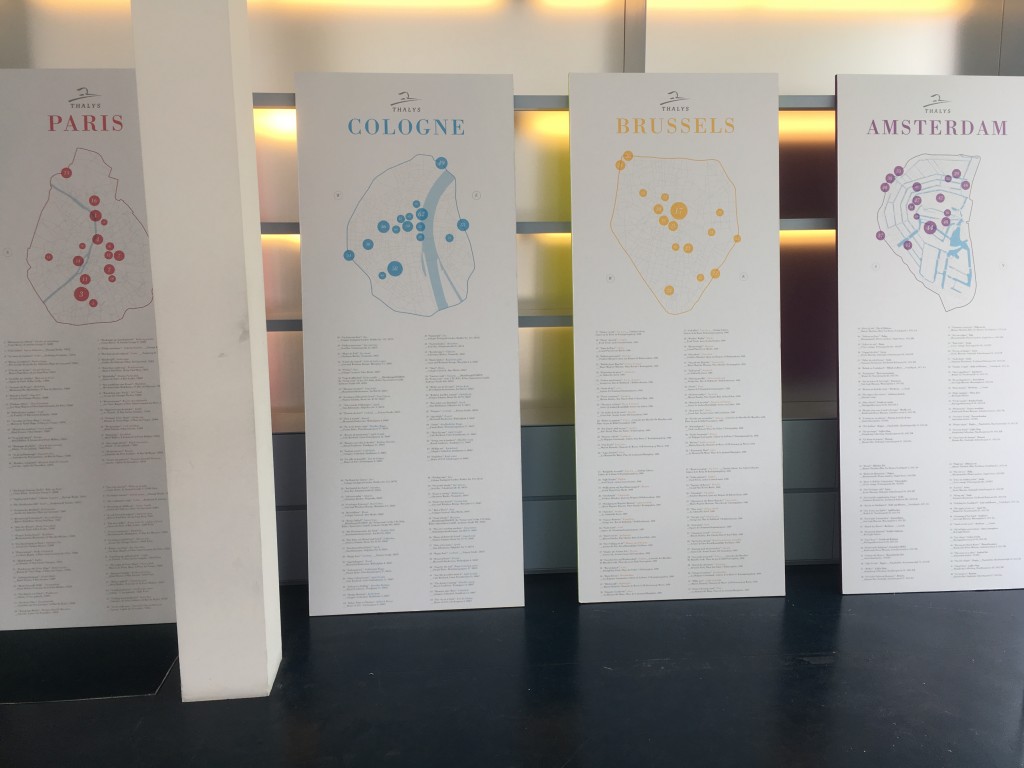 Pour donner vie à cette balade olfactive à Paris, Amsterdam, Cologne et Bruxelles, Rosapark a imaginé pour Thalys une agence de voyage unique, une agence de voyage olfactive. Une installation éphémère inédite a donc ouvert ses portes au grand public dans une galerie de la rue Antoine Dansaert à Bruxelles, du vendredi 12 au dimanche 14 mai, et a proposé une balade sensorielle avec 16 senteurs par villes.