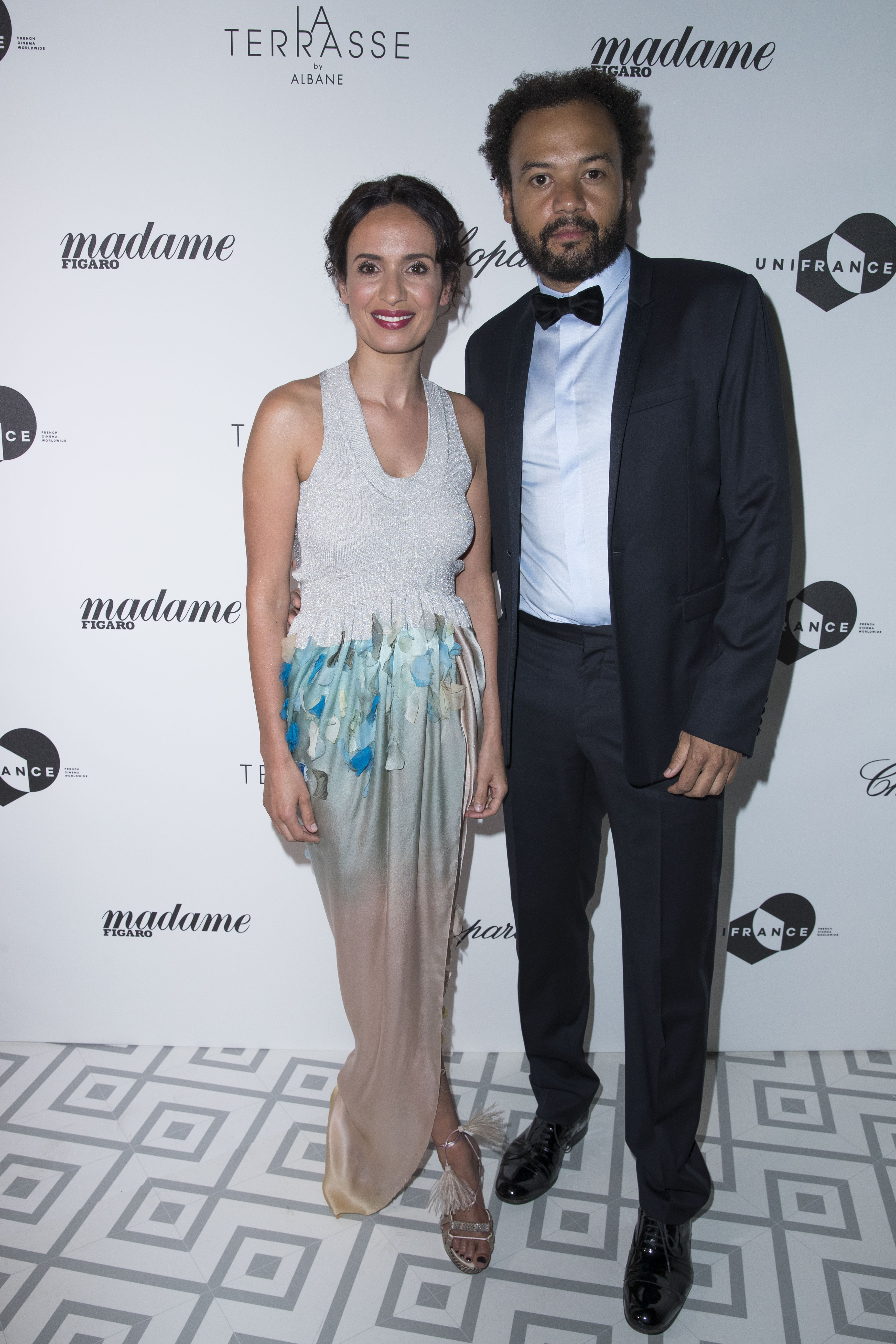 Lors du 10ème diner du Madame Figaro hier soir à Cannes, la comédienne et réalisatrice Amelle Chahbi, ici accompagné de son Mari Fabrice Eboué, portait une robe et des chaussures PAULE KA du Show SS 17.