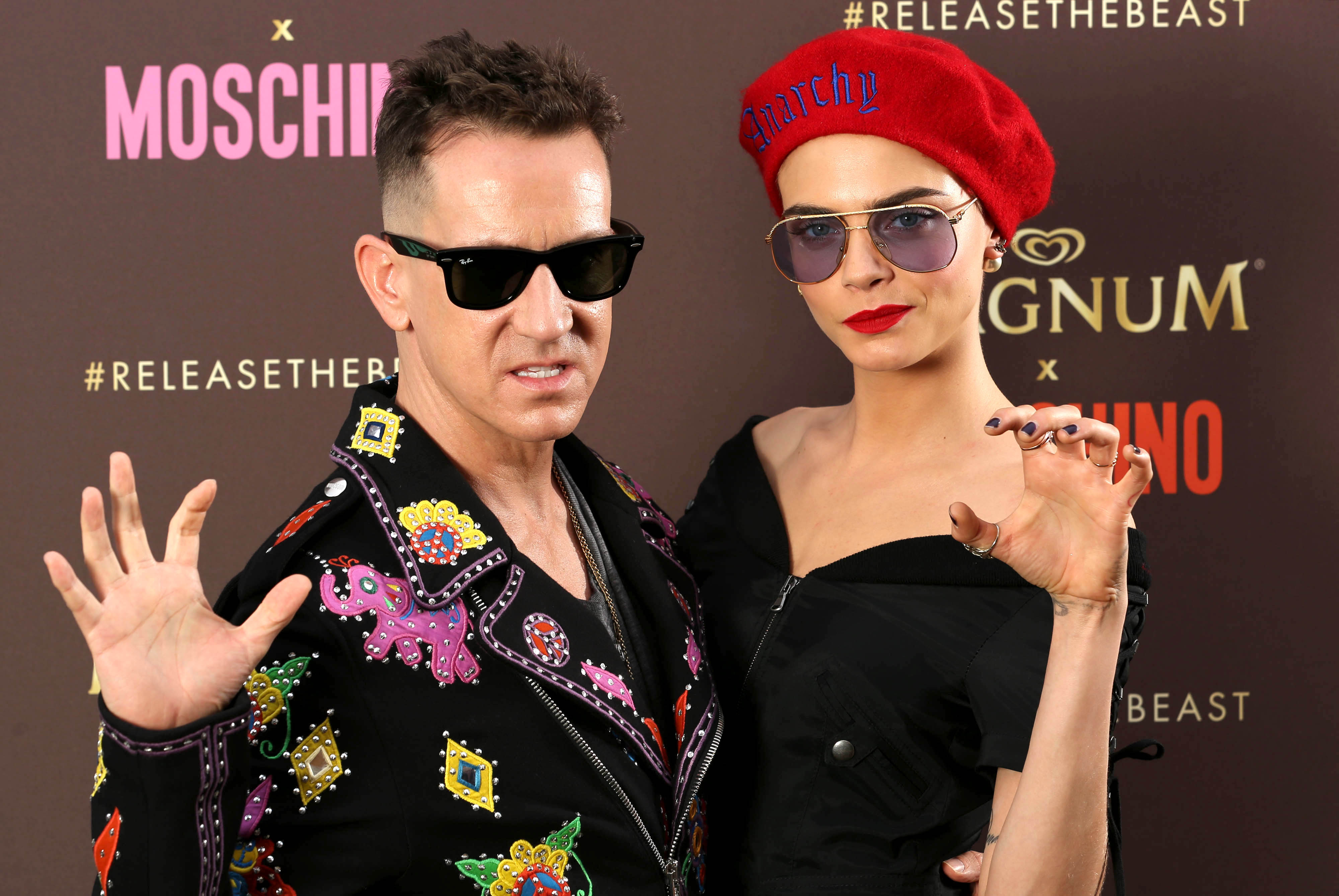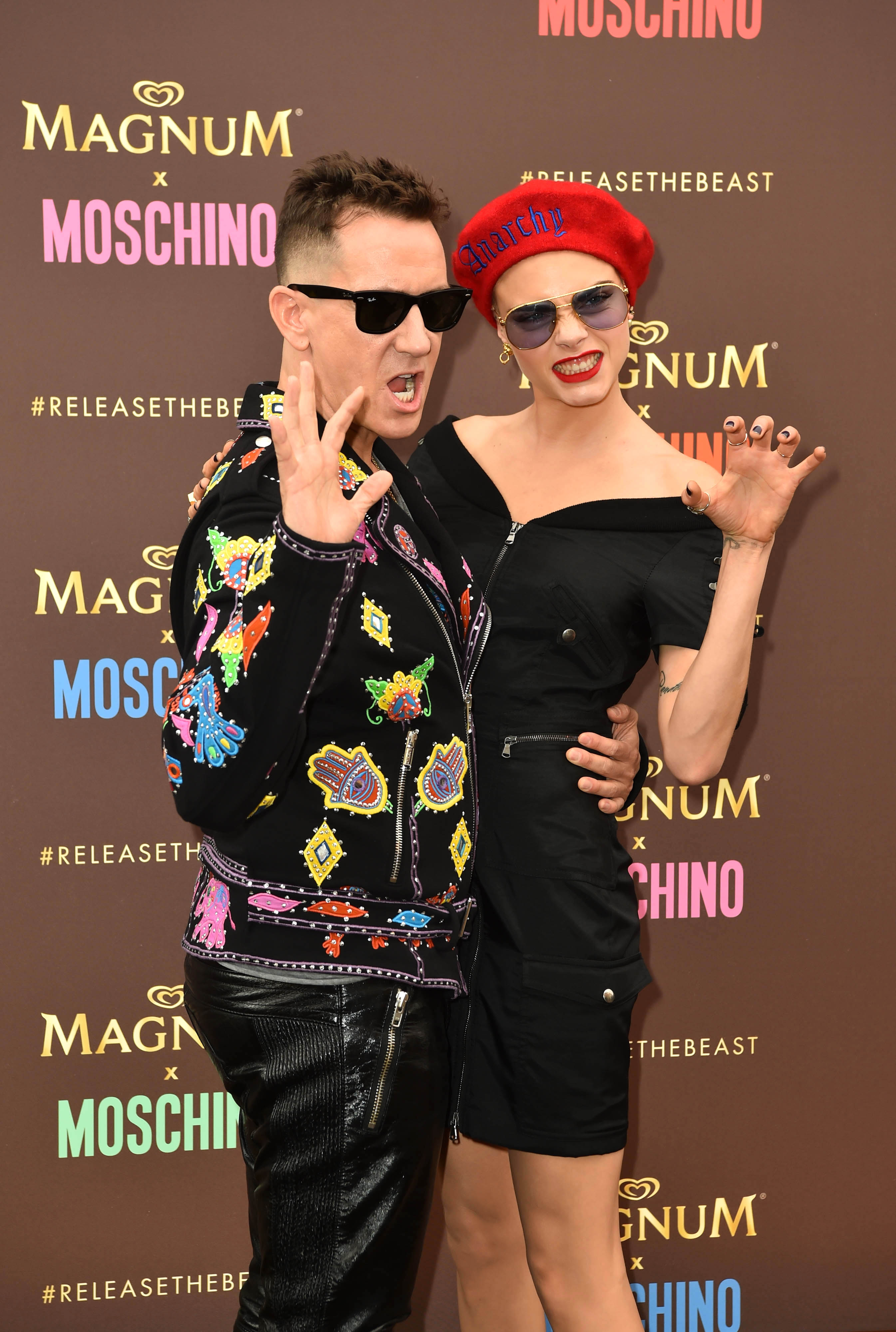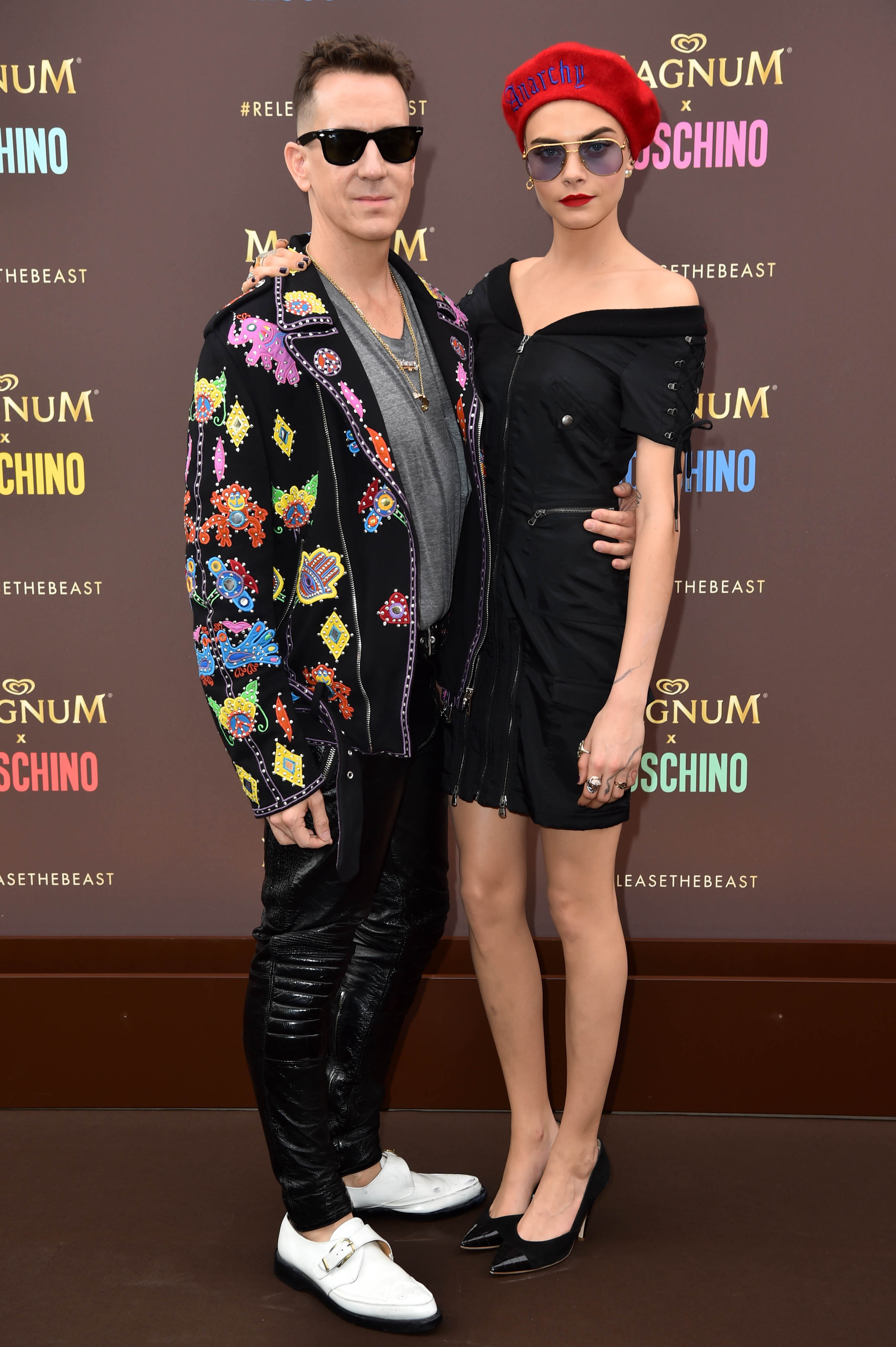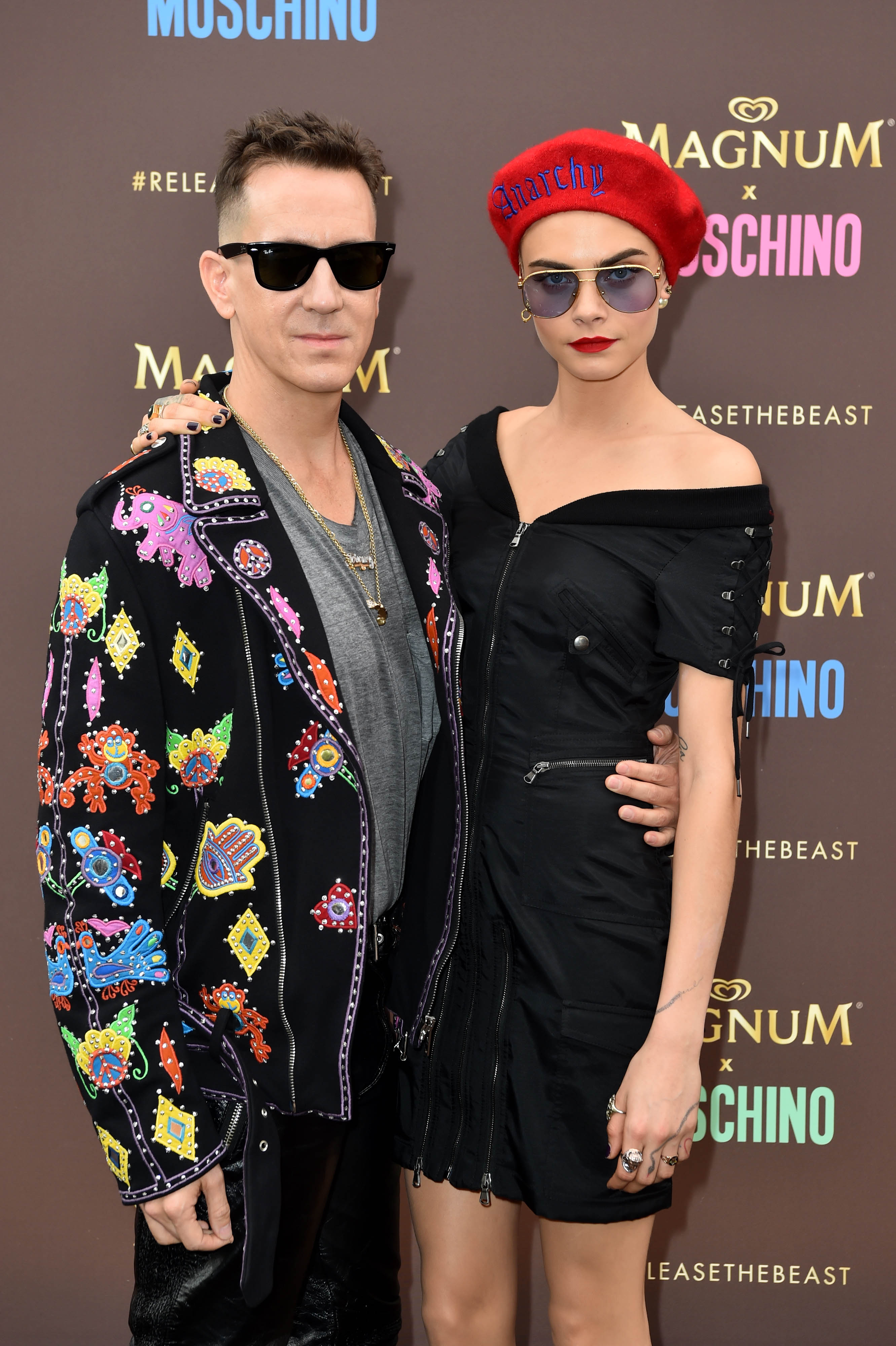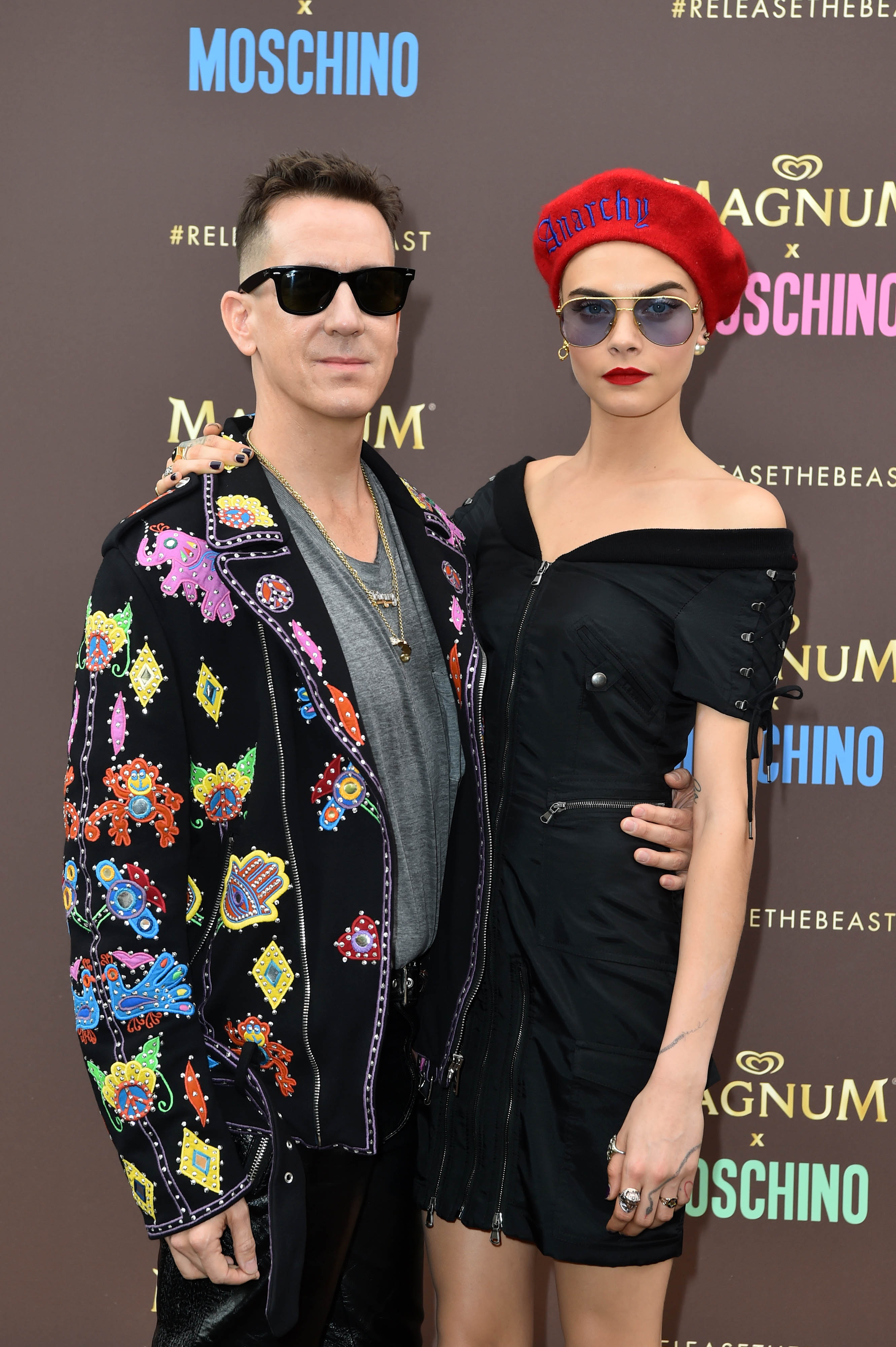 - EDITORIAL USE ONLY Cara Delevingne and Jeremy Scott, Moschino Creative Director, arrive at a launch party to unveil the Magnum x Moschino bag capsule collection in celebration of Magnum Double ice cream in Cannes, France. PRESS ASSOCIATION Photo. Picture date: Thursday May 18, 2017. Photo credit should read: Matt Crossick/PA Wire