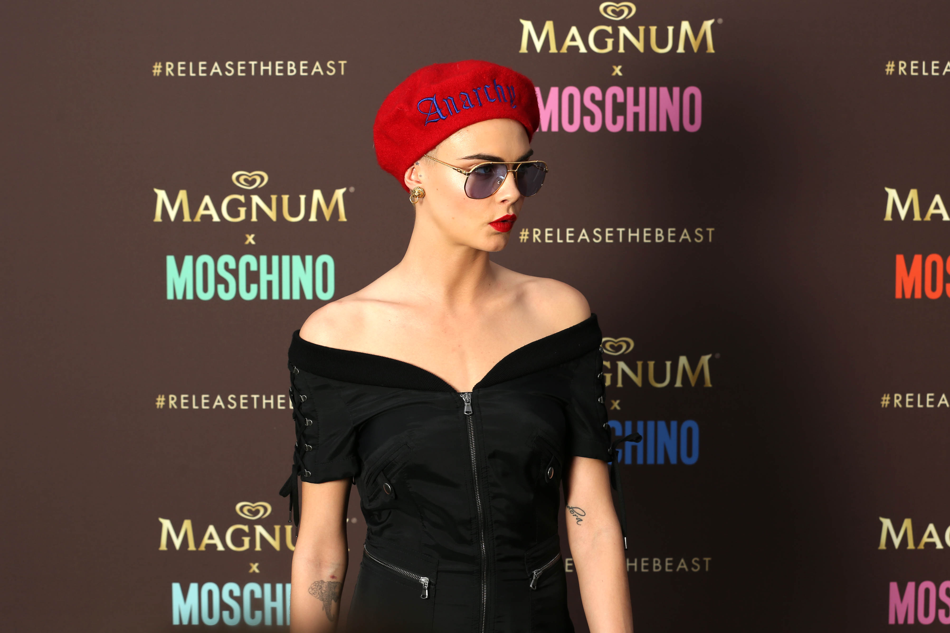 - EDITORIAL USE ONLY Cara Delevingne arrives at a launch party to unveil the Magnum x Moschino bag capsule collection in celebration of Magnum Double ice cream in Cannes, France. PRESS ASSOCIATION Photo. Picture date: Thursday May 18, 2017. Photo credit should read: David Parry/PA Wire