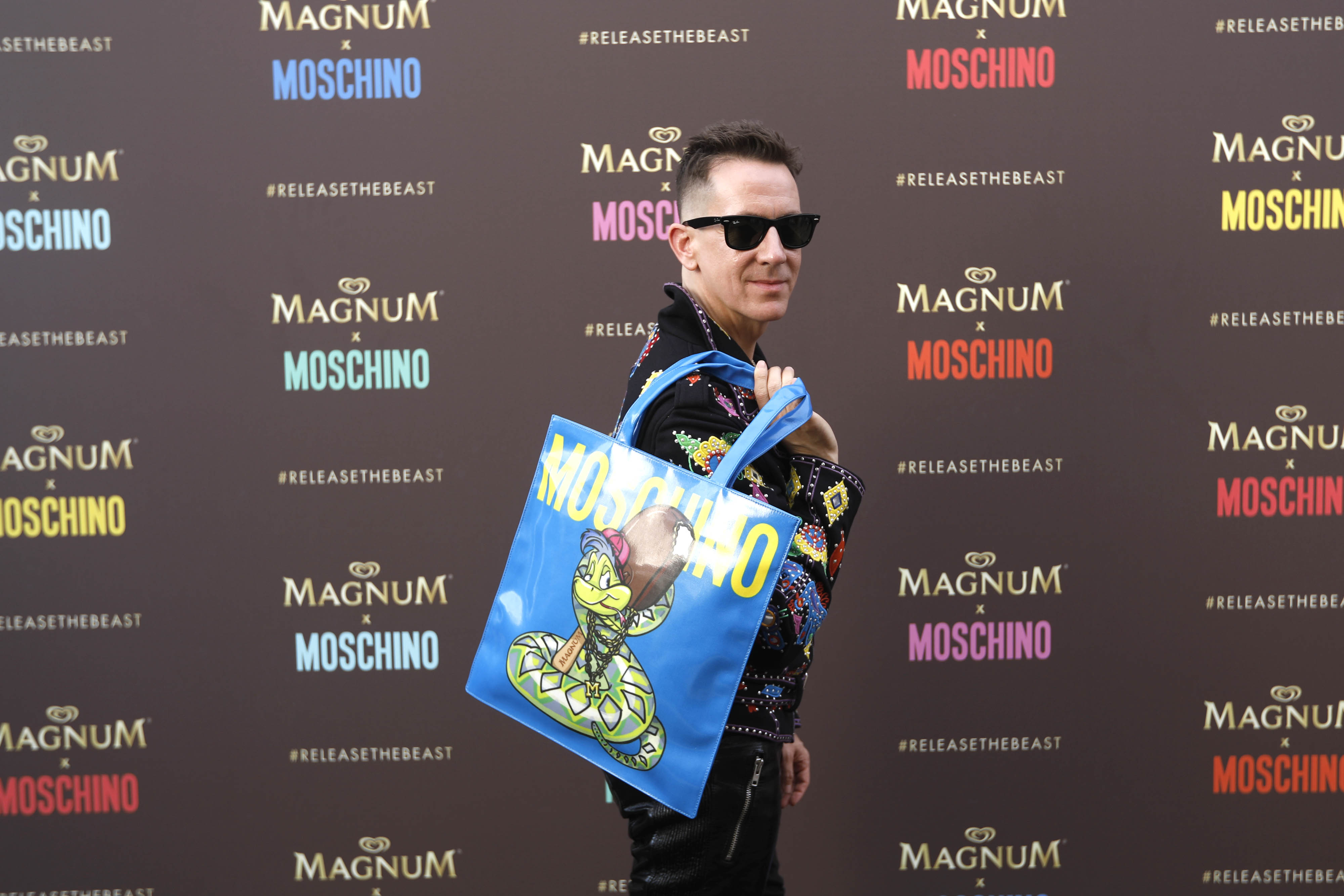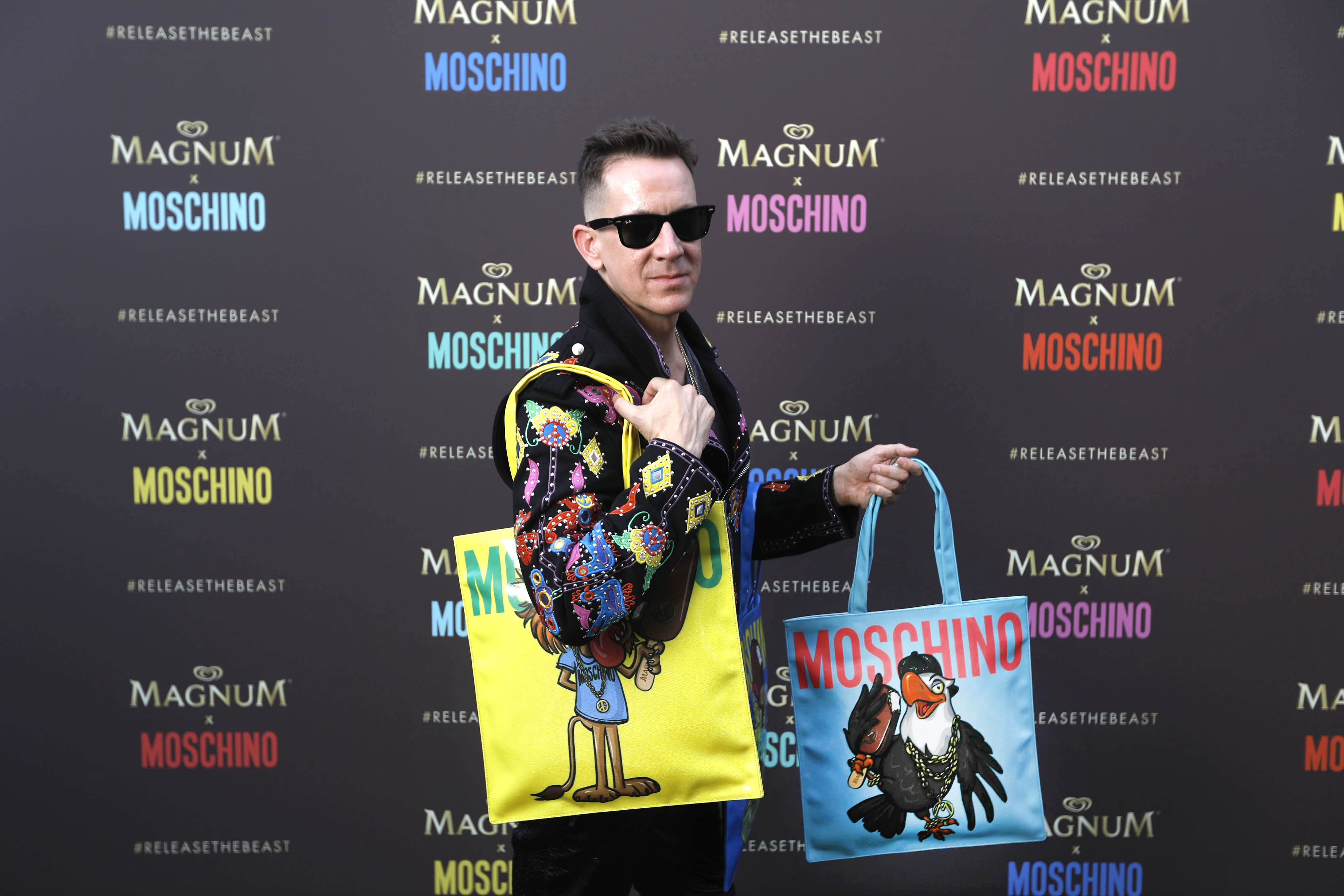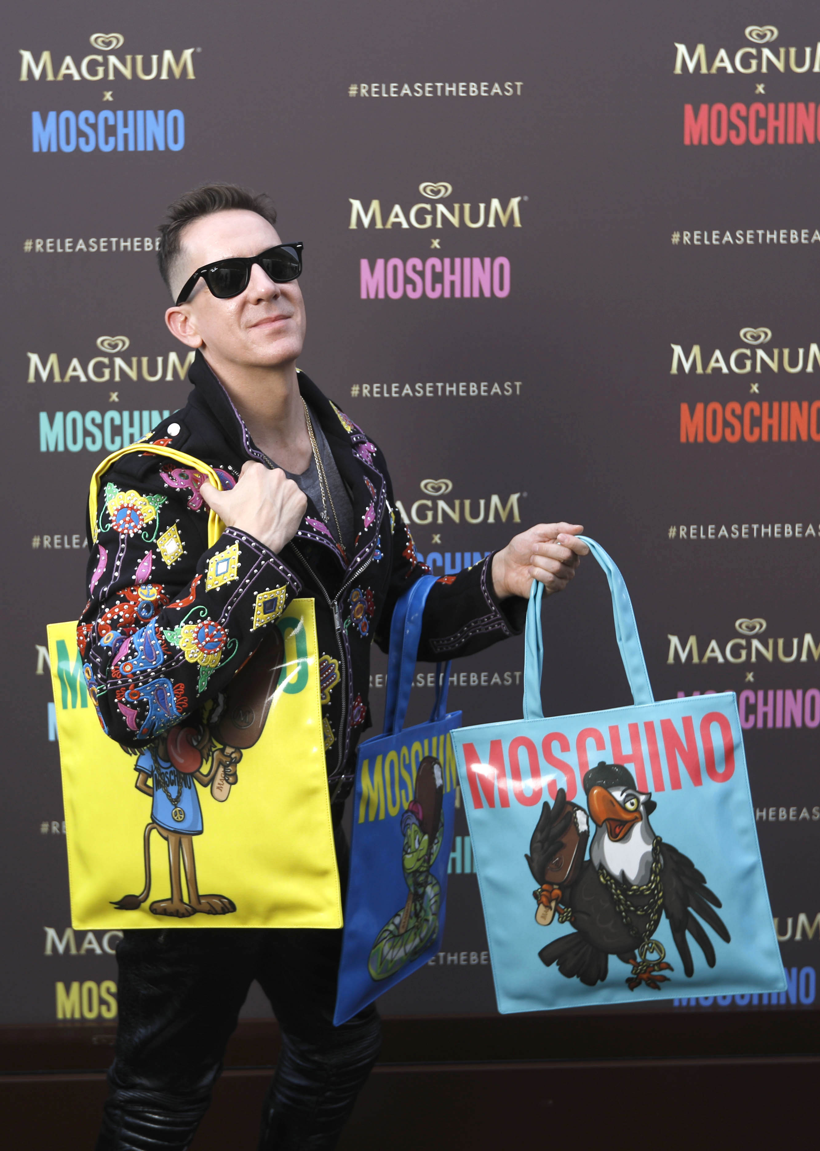 - EDITORIAL USE ONLY Jeremy Scott, Moschino Creative Director, unveils the Magnum x Moschino bag capsule collection in celebration of Magnum Double ice cream in Cannes, France. PRESS ASSOCIATION Photo. Picture date: Thursday May 18, 2017. Photo credit should read: David Parry/PA Wire