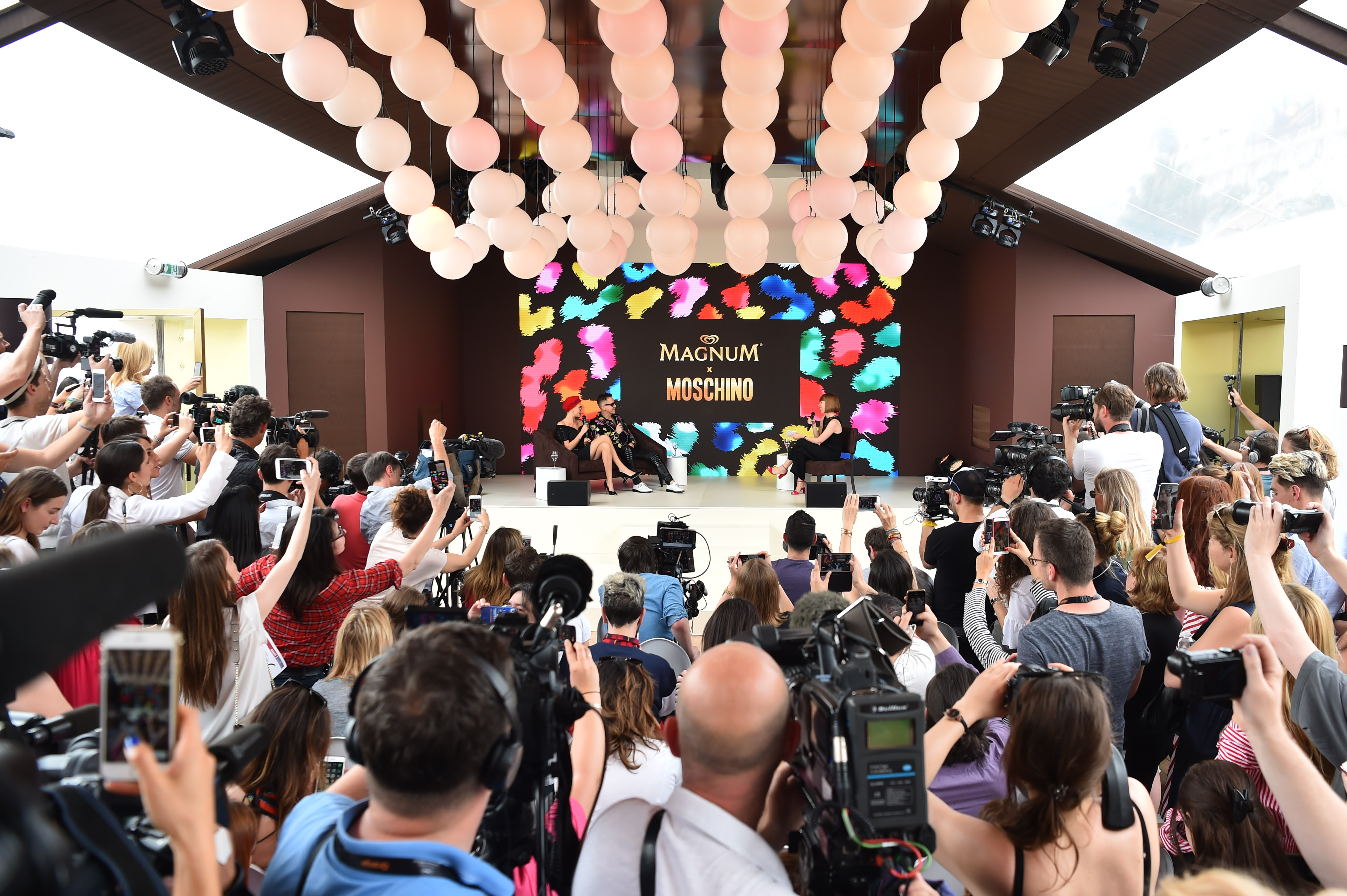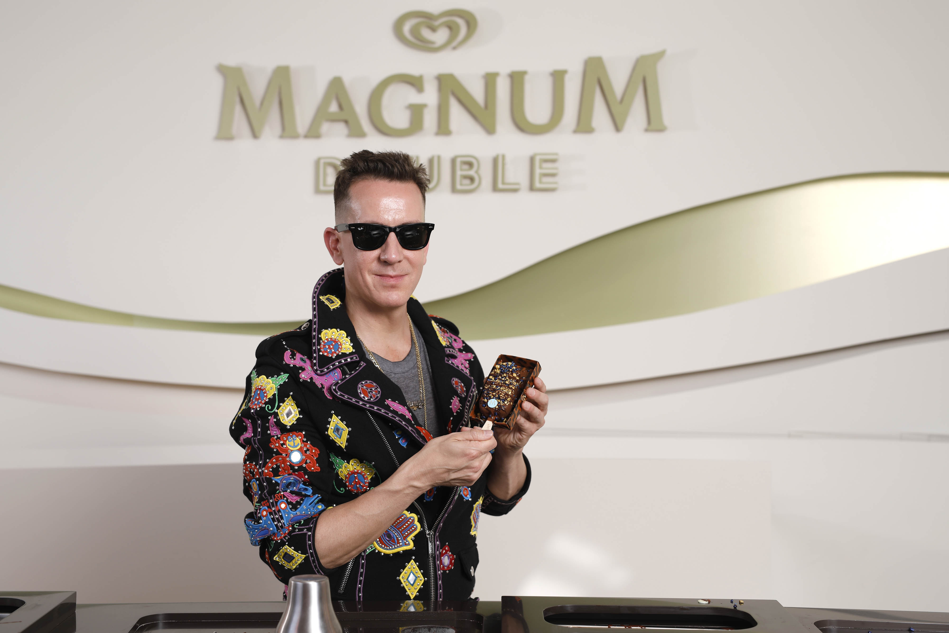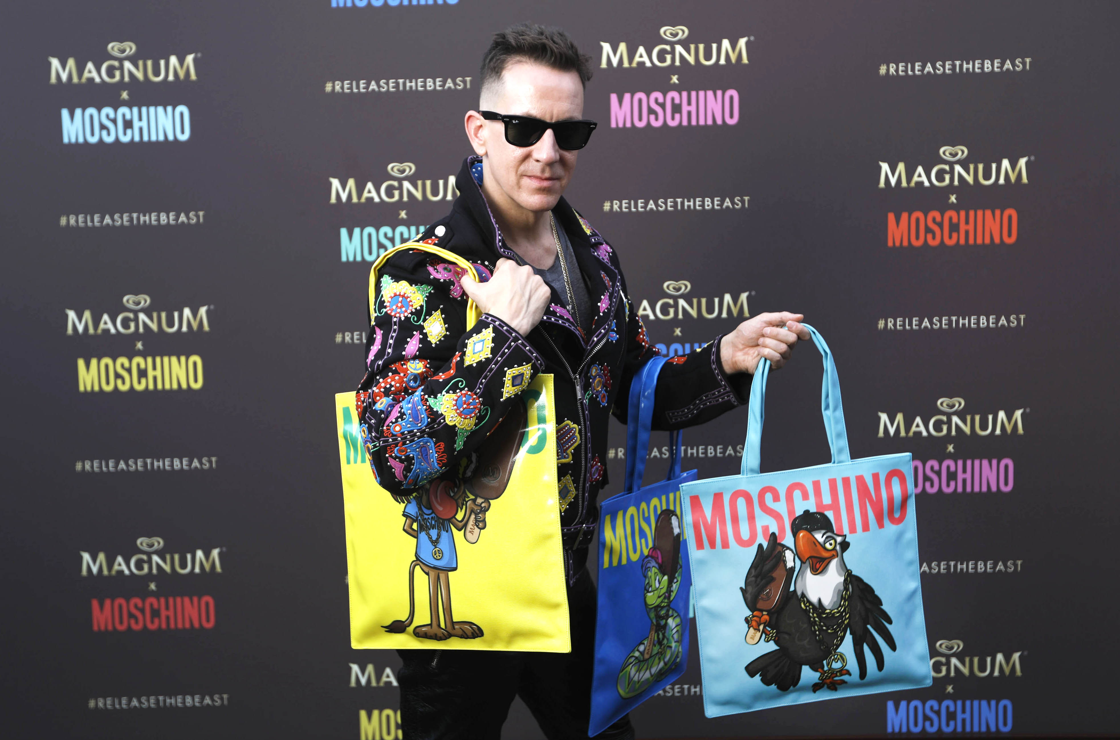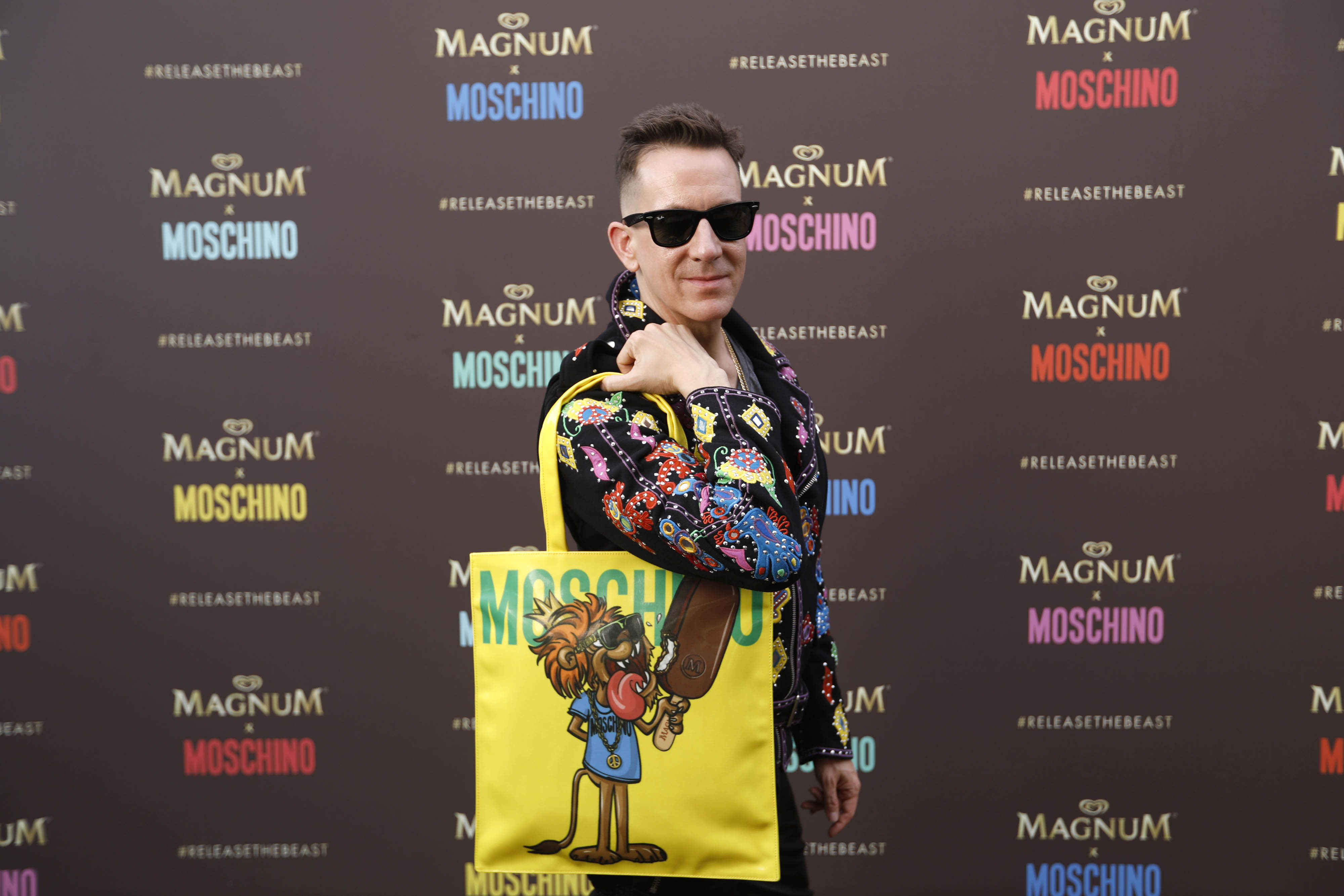 - EDITORIAL USE ONLY Jeremy Scott, Moschino Creative Director, unveils the Magnum x Moschino bag capsule collection in celebration of Magnum Double ice cream in Cannes, France. PRESS ASSOCIATION Photo. Picture date: Thursday May 18, 2017. Photo credit should read: David Parry/PA Wire