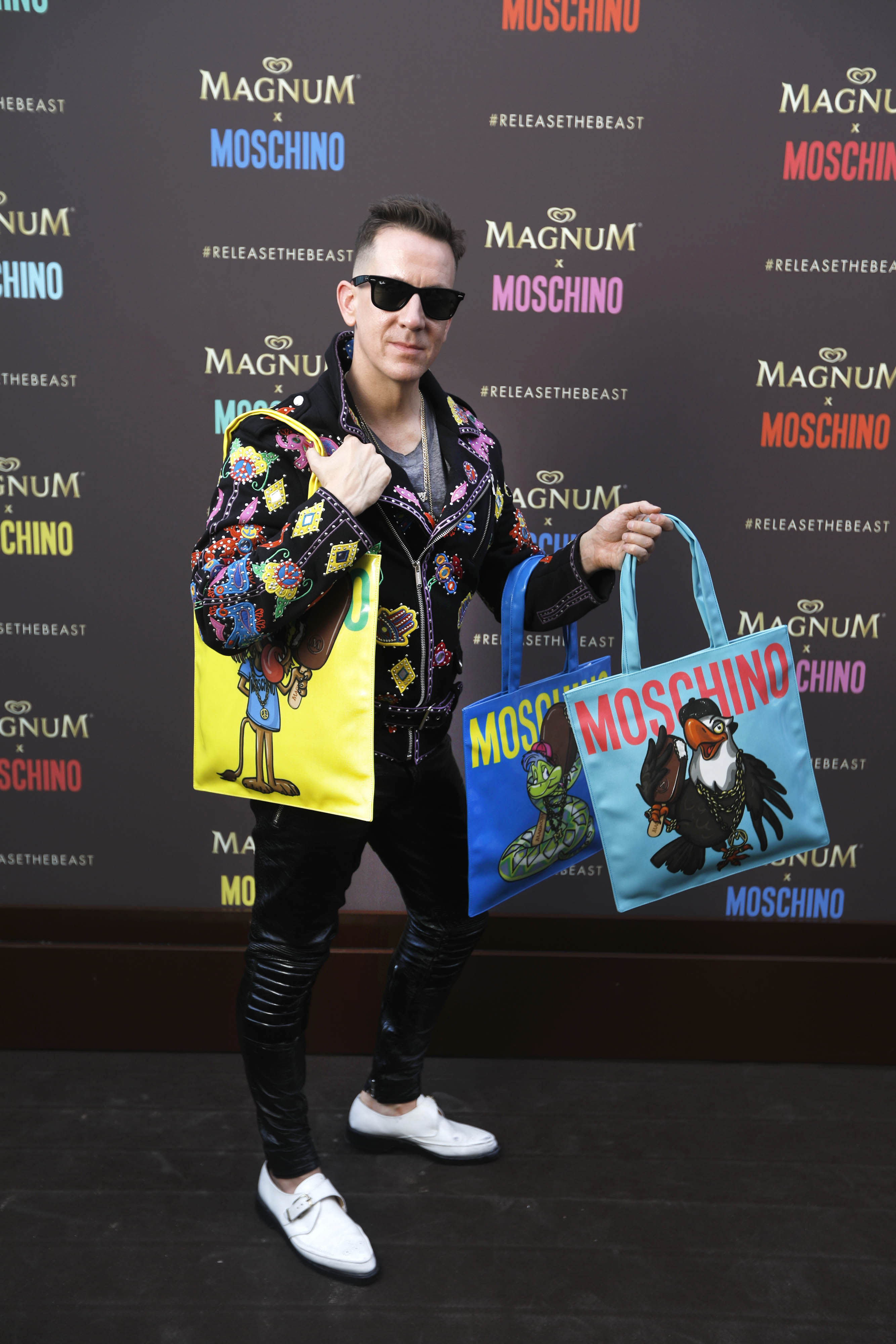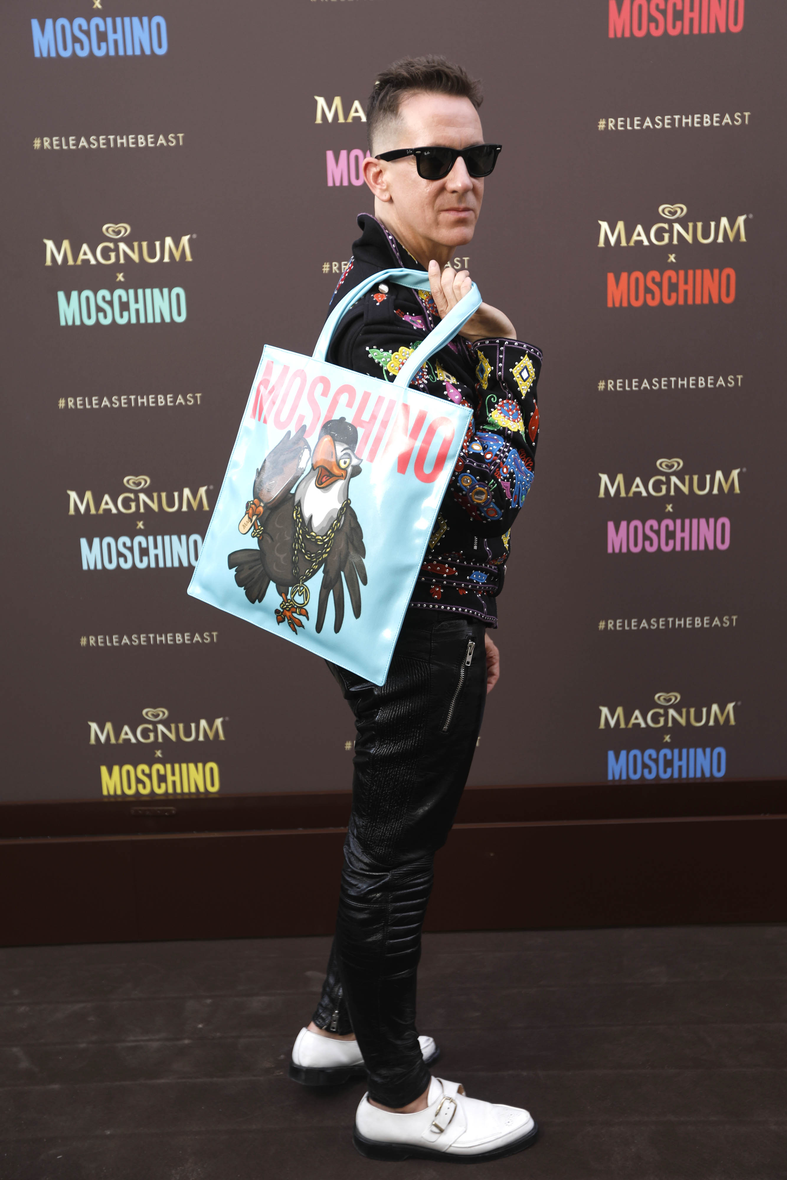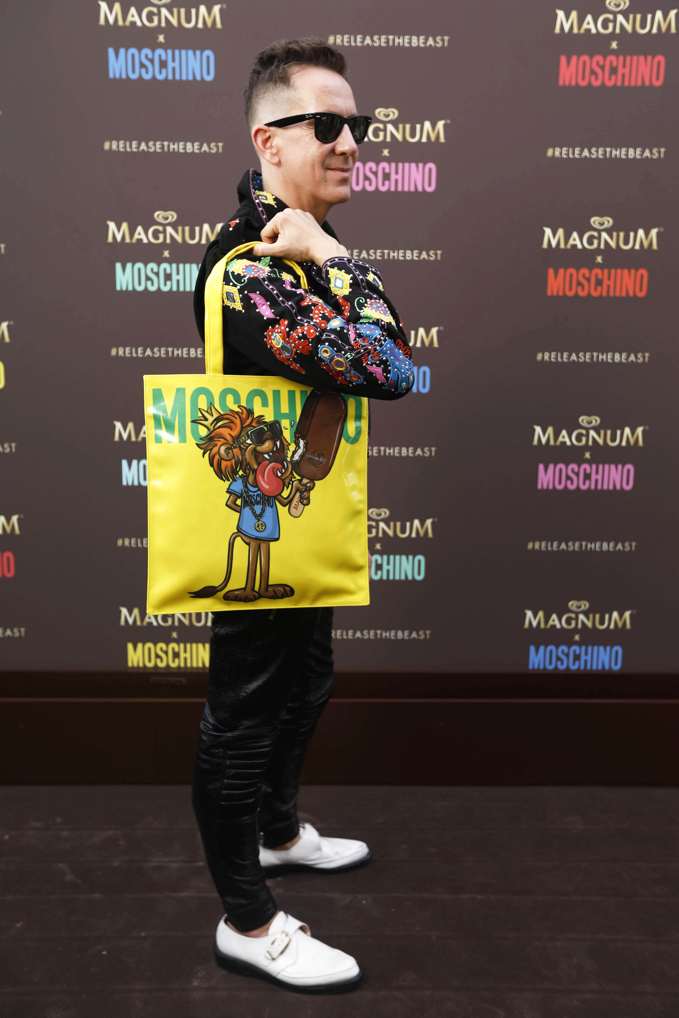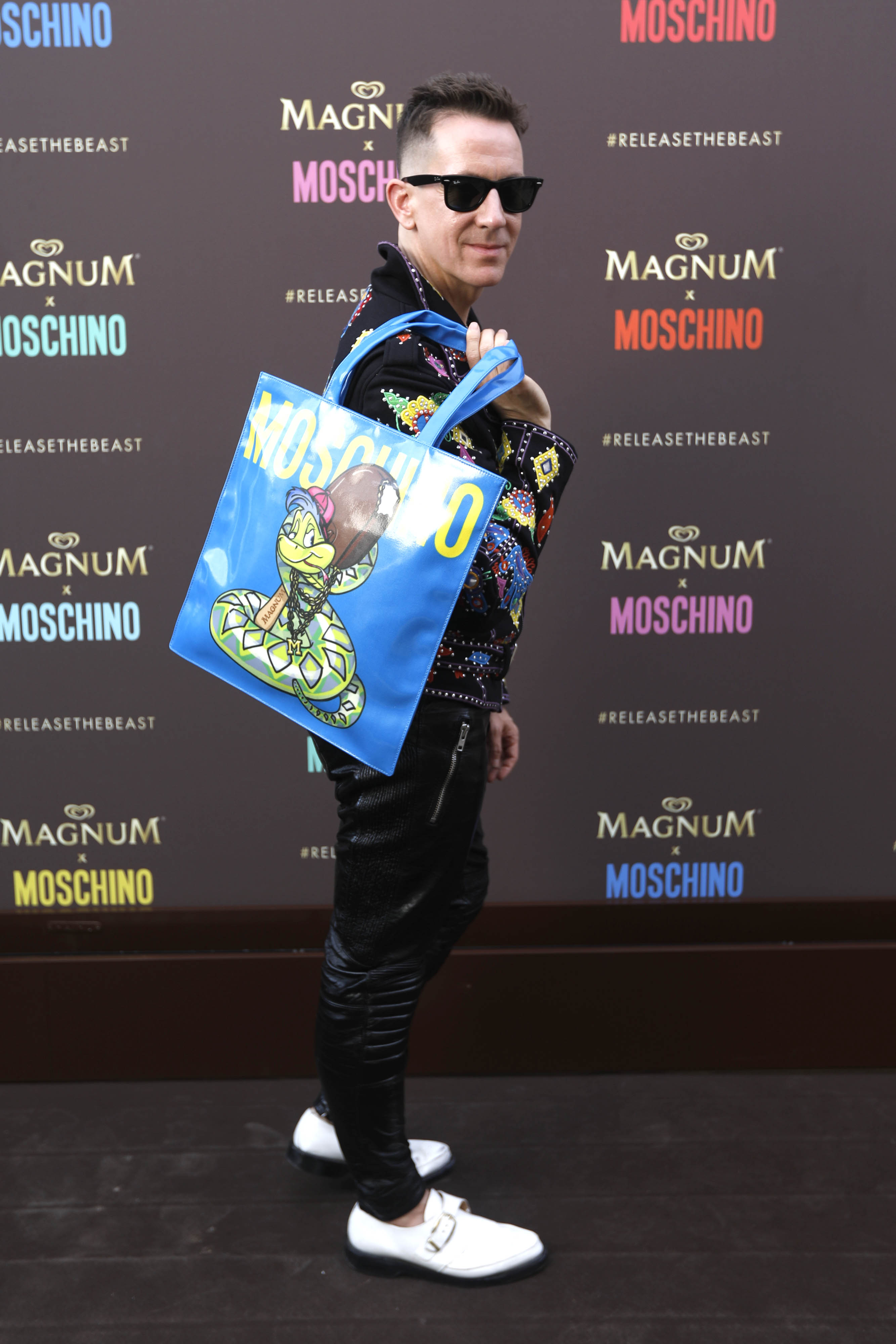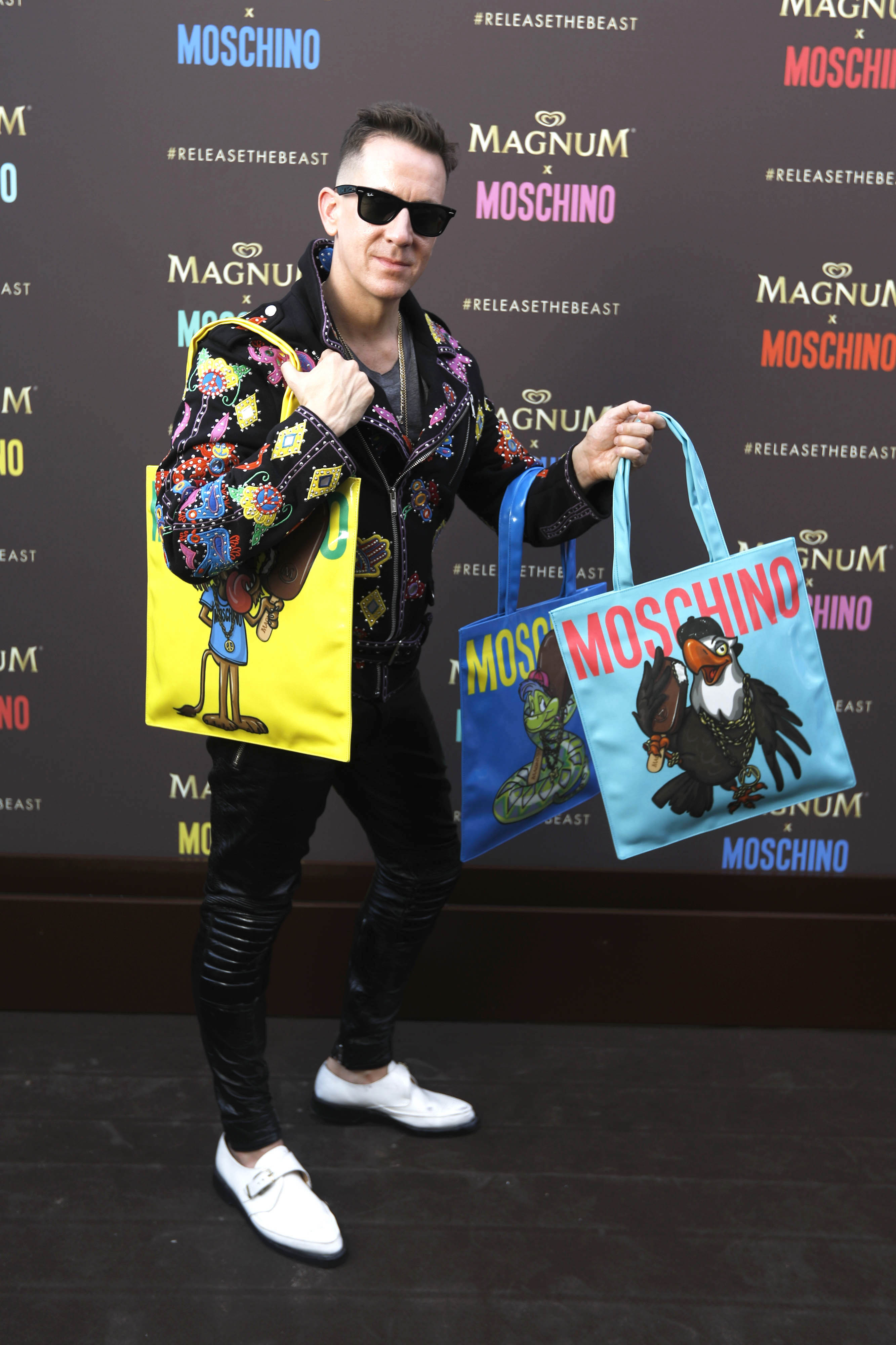 - EDITORIAL USE ONLY Jeremy Scott, Moschino Creative Director, arrives at a launch party to unveil the Magnum x Moschino bag capsule collection in celebration of Magnum Double ice cream in Cannes, France. PRESS ASSOCIATION Photo. Picture date: Thursday May 18, 2017. Photo credit should read: Matt Crossick/PA Wire