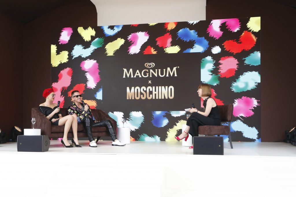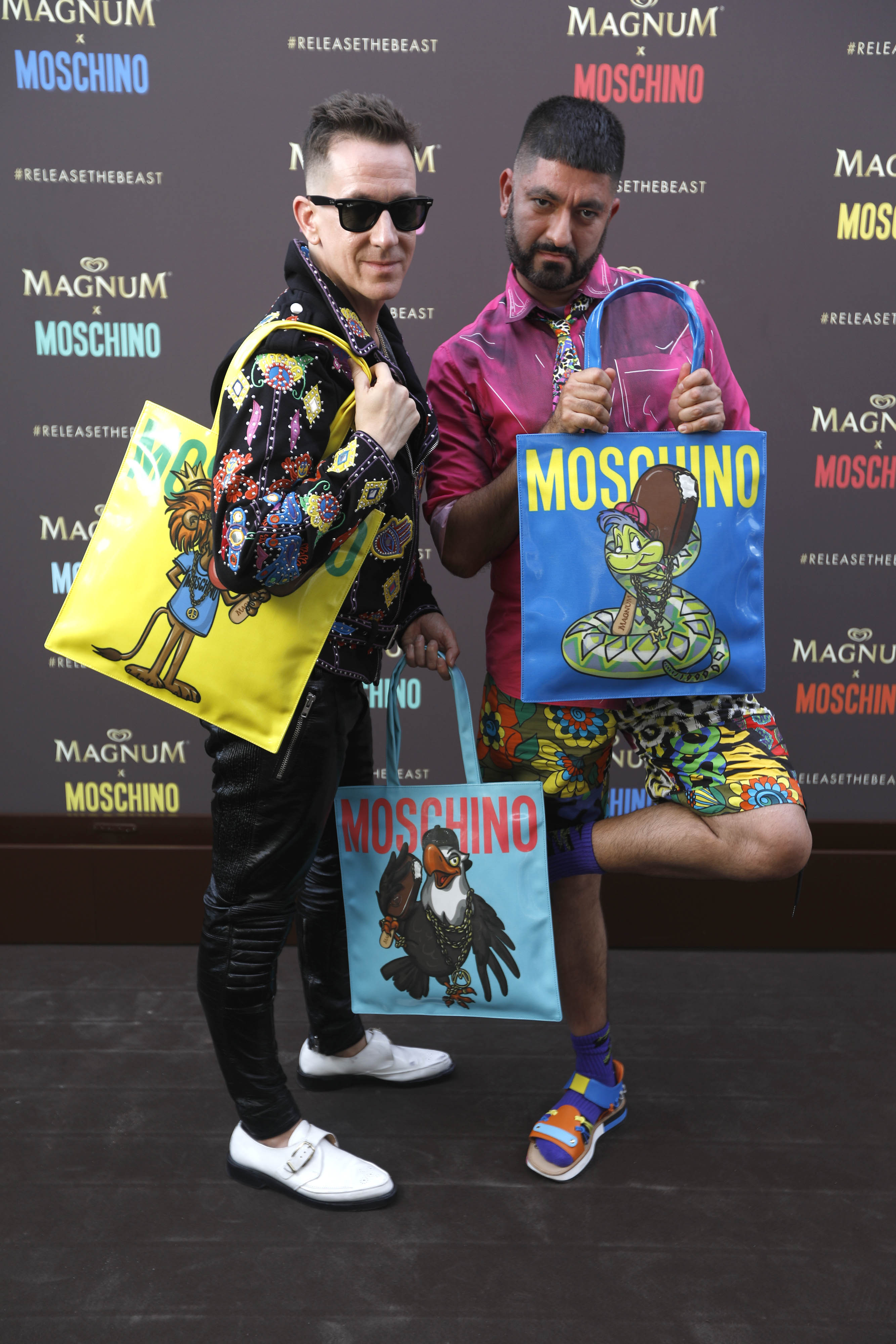 - EDITORIAL USE ONLY Jeremy Scott, Moschino Creative Director, and Pablo Olea, Head of Communications Moschino, unveil the Magnum x Moschino bag capsule collection in celebration of Magnum Double ice cream in Cannes, France. PRESS ASSOCIATION Photo. Picture date: Thursday May 18, 2017. Photo credit should read: David Parry/PA Wire