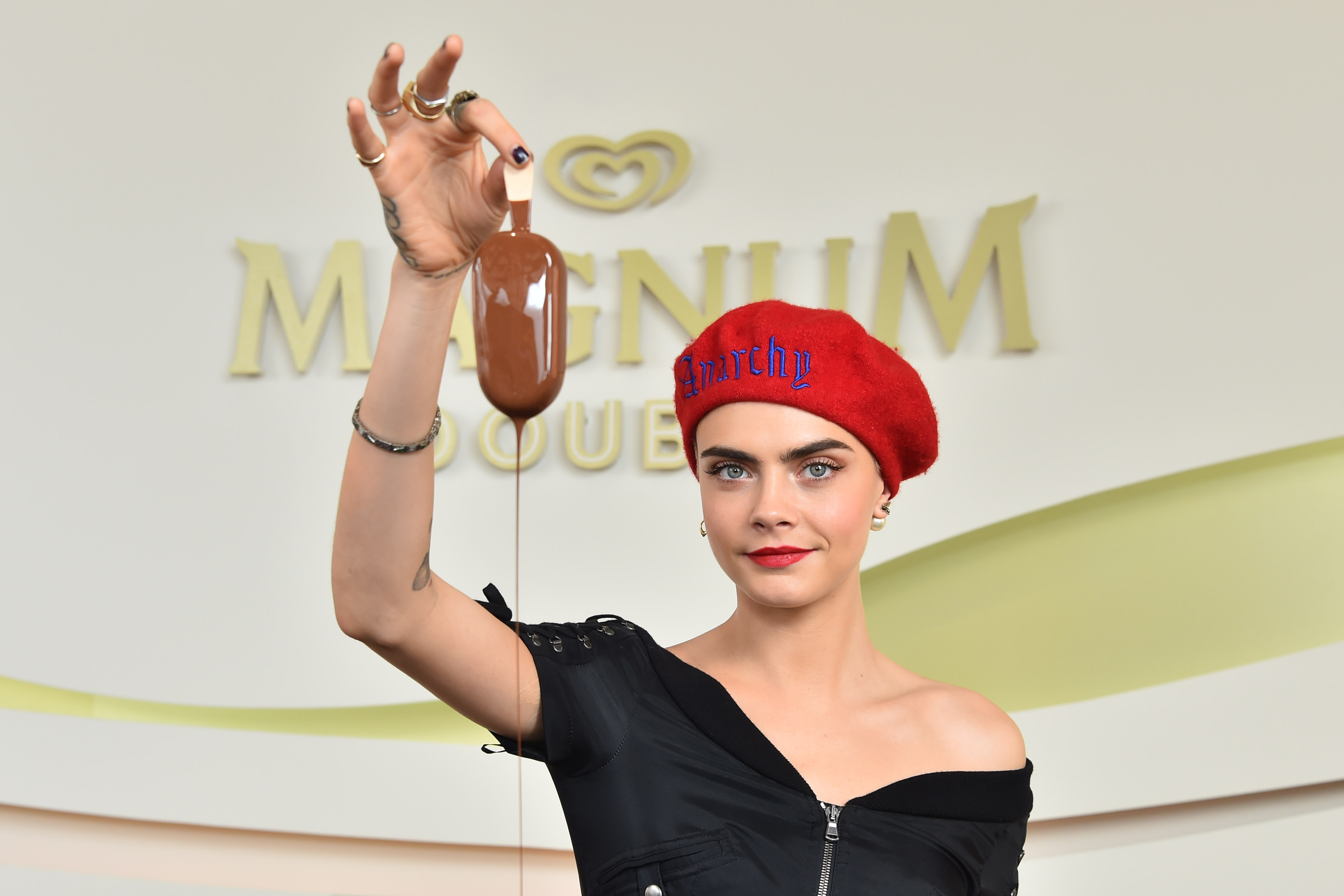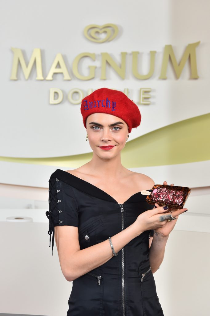 - EDITORIAL USE ONLY Cara Delevingne makes her own personalised Magnum at the Magnum x Moschino launch event in Cannes, France. PRESS ASSOCIATION Photo. Picture date: Thursday May 18, 2017. Photo credit should read: Matt Crossick/PA Wire