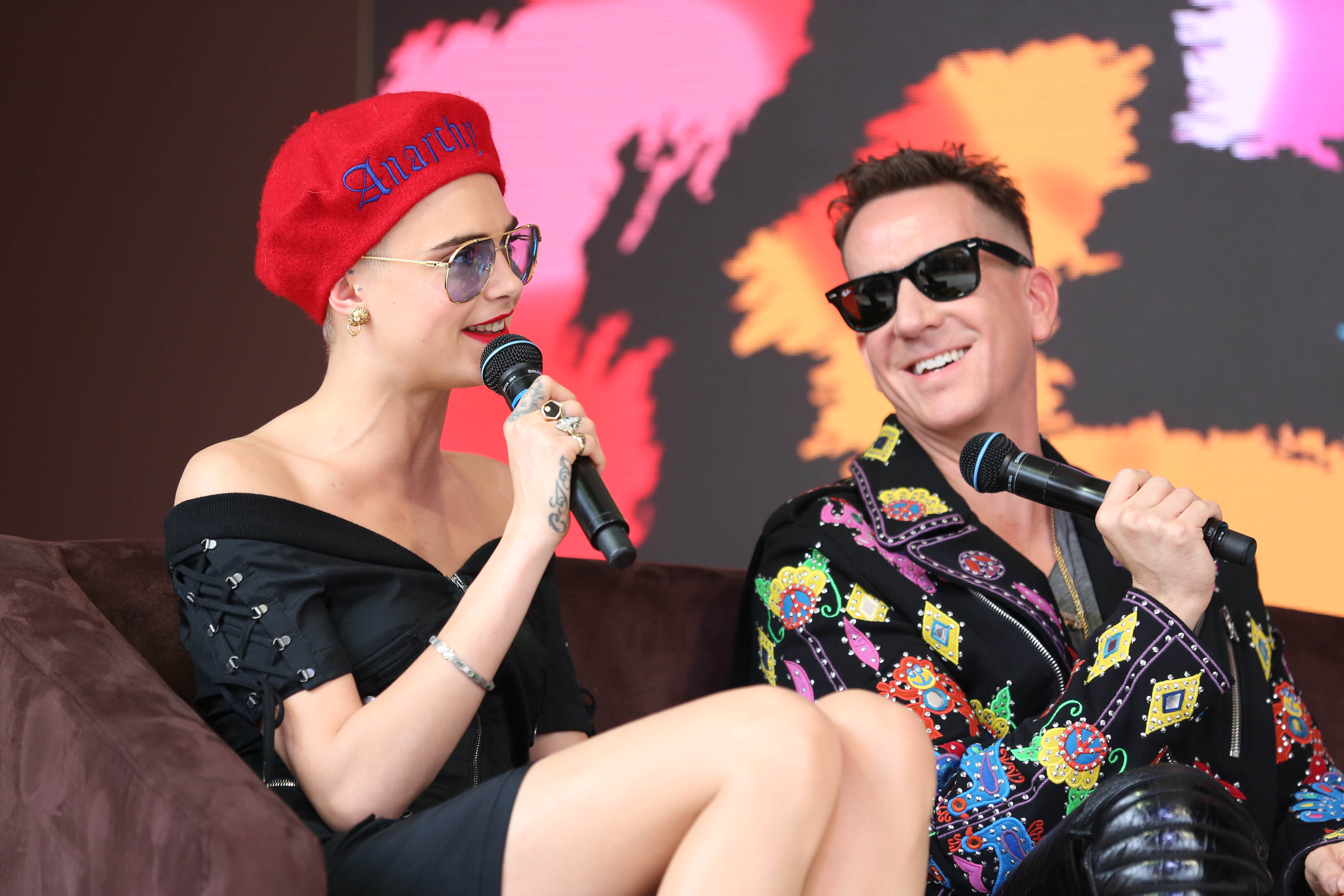 - EDITORIAL USE ONLY Cara Delevingne and Jeremy Scott, Moschino Creative Director, during a press conference unveiling the Magnum x Moschino bag capsule collection in celebration of Magnum Double ice cream in Cannes, France. PRESS ASSOCIATION Photo. Picture date: Thursday May 18, 2017. Photo credit should read: Matt Crossick/PA Wire