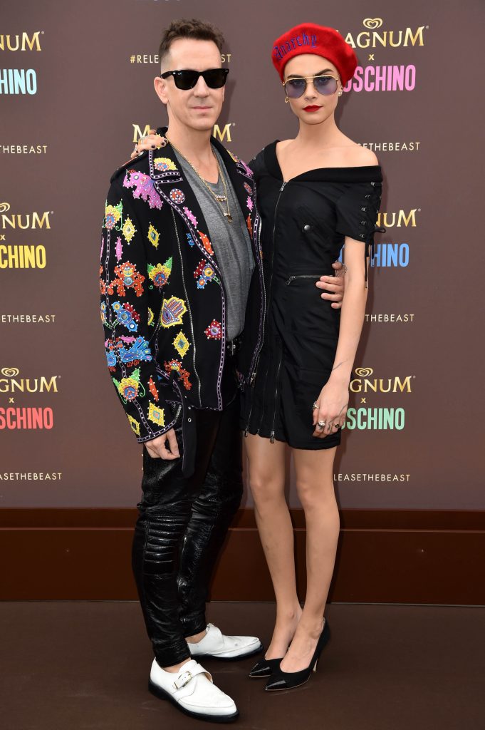 - EDITORIAL USE ONLY Cara Delevingne and Jeremy Scott, Moschino Creative Director, arrive at a launch party to unveil the Magnum x Moschino bag capsule collection in celebration of Magnum Double ice cream in Cannes, France. PRESS ASSOCIATION Photo. Picture date: Thursday May 18, 2017. Photo credit should read: David Parry/PA Wire