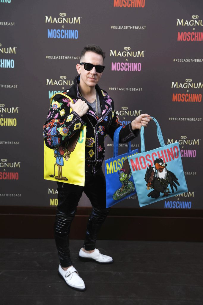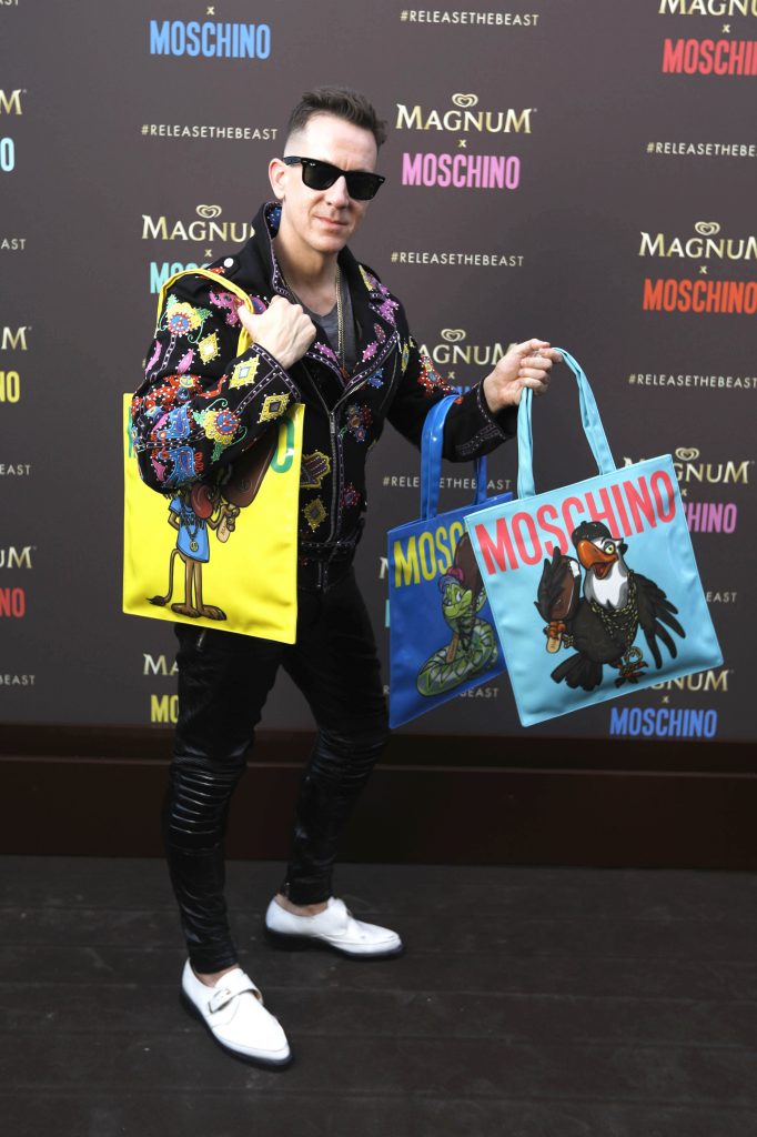 - EDITORIAL USE ONLY Jeremy Scott, Moschino Creative Director, arrives at a launch party to unveil the Magnum x Moschino bag capsule collection in celebration of Magnum Double ice cream in Cannes, France. PRESS ASSOCIATION Photo. Picture date: Thursday May 18, 2017. Photo credit should read: David Parry/PA Wire