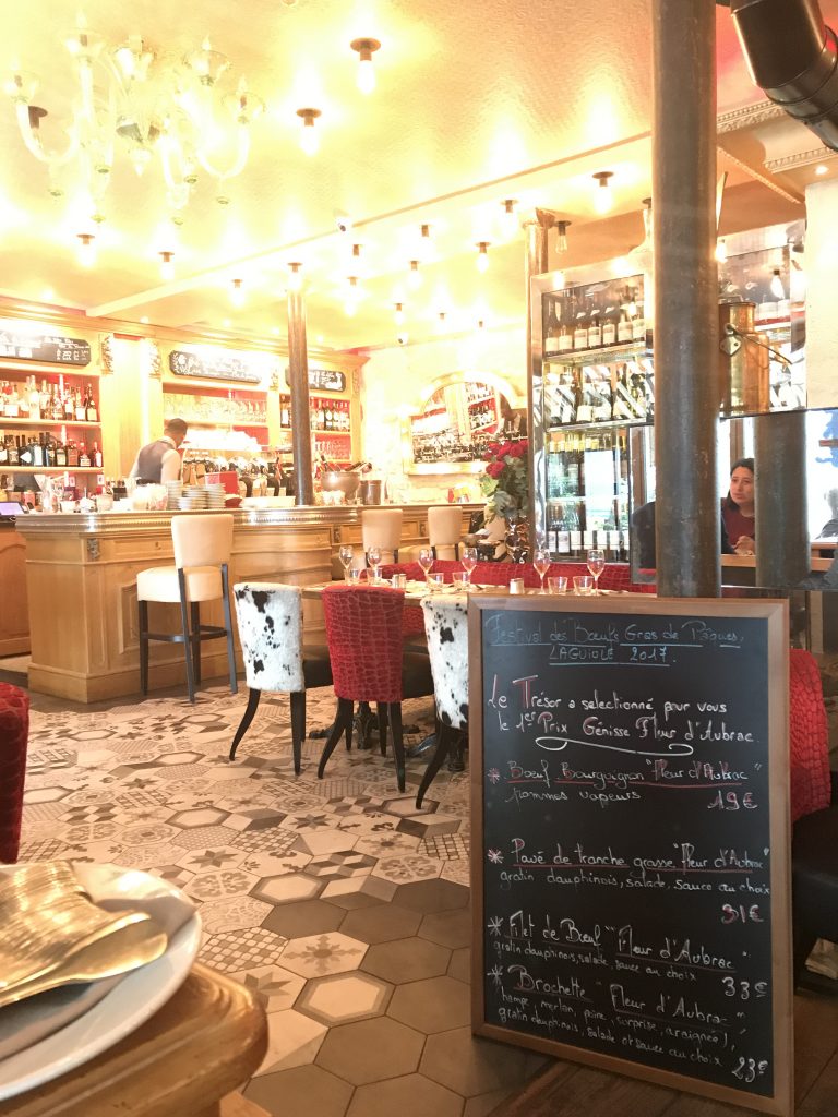 Les spécialités : œuf frit, saucisse, aligot sont accompagnées d’une fine sélection de vins et spiritueux. Le Trésor possède aussi un Bar à Huîtres.