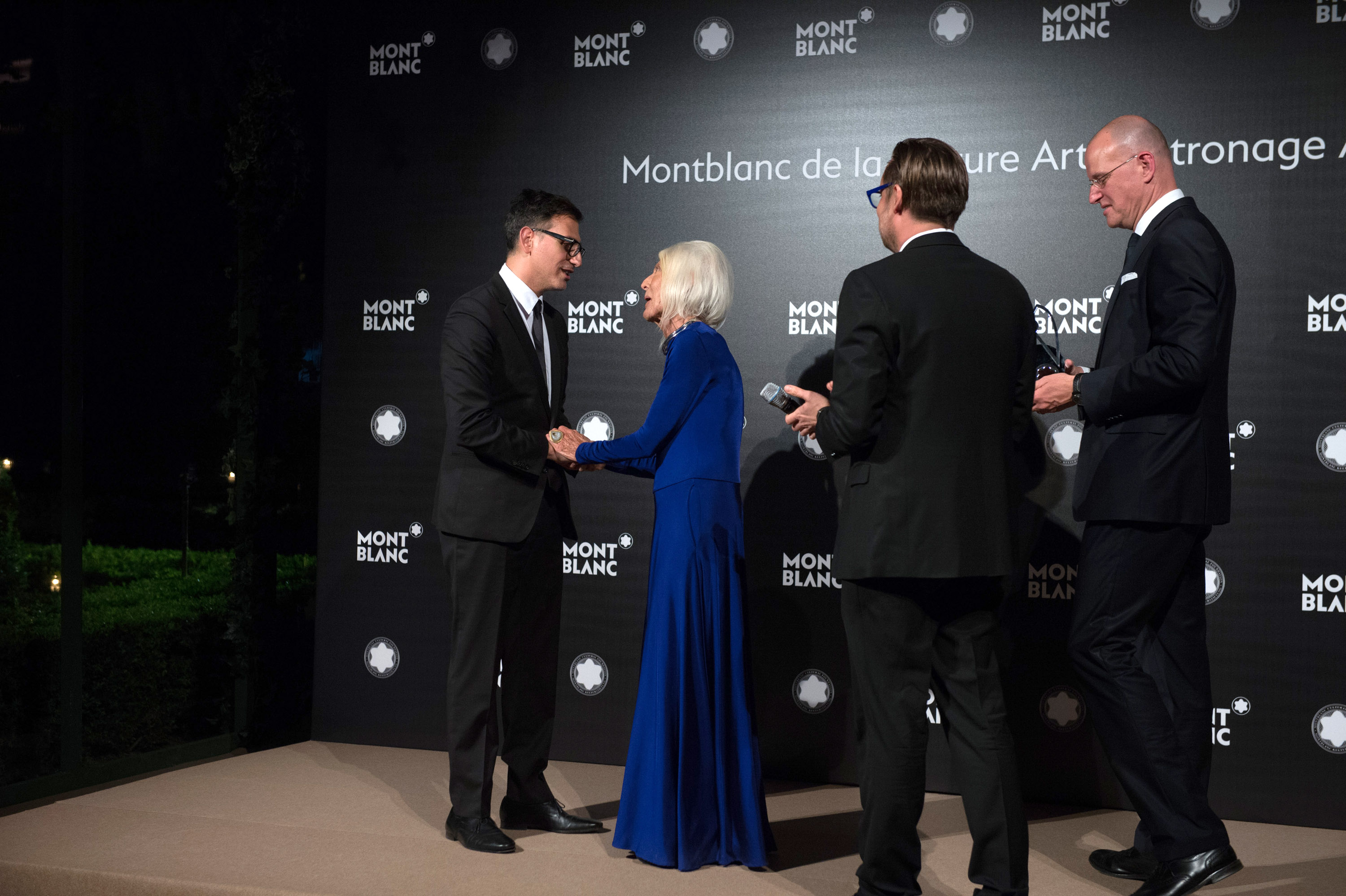 Les co-présidents de la Fondation culturelle Montblanc, Till Fellrath et Sam Bardaouil, et Jens Henning Koch, VP Marketing de Montblanc, ont personnellement remis le prix à l’heureuse lauréate :