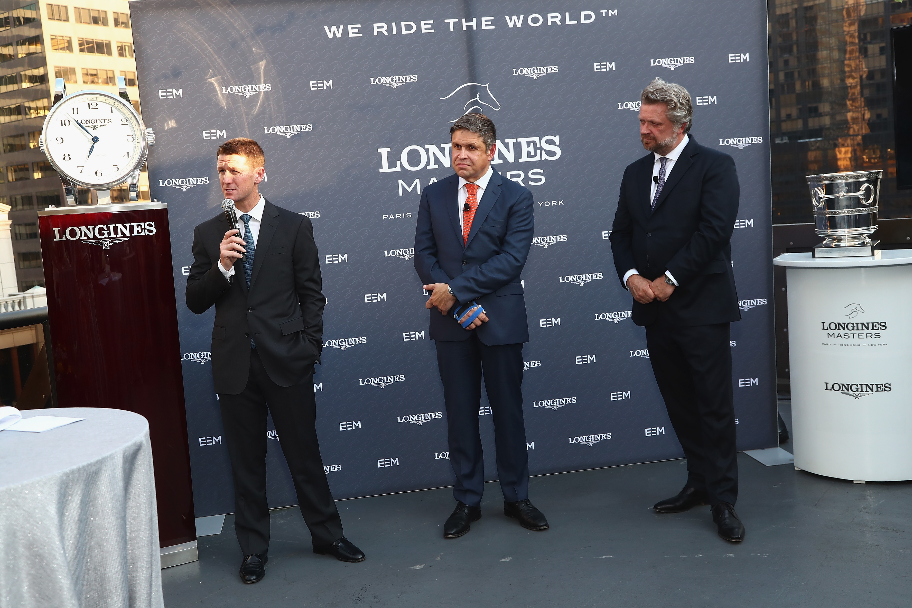 - NEW YORK, NY – MAY 17: (L-R) Mclain Ward, Juan-Carlos Capelli, Longines Vice President and Head of International Marketing and Christophe Ameeuw, Founder and CEO of EEM attend the Longines Masters launch party celebrating Series’ epic move to New York at Salon de Ning on May 17, 2017 in New York City. (Photo by Astrid Stawiarz/Getty Images for Longines)